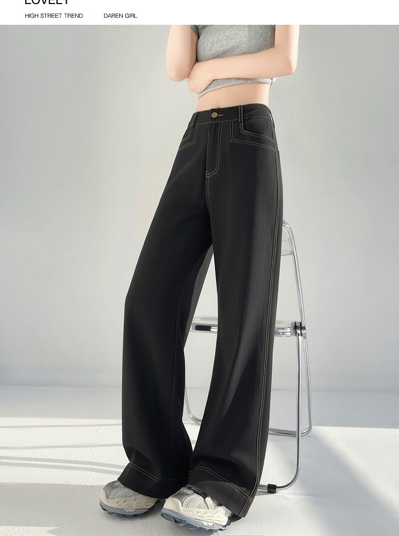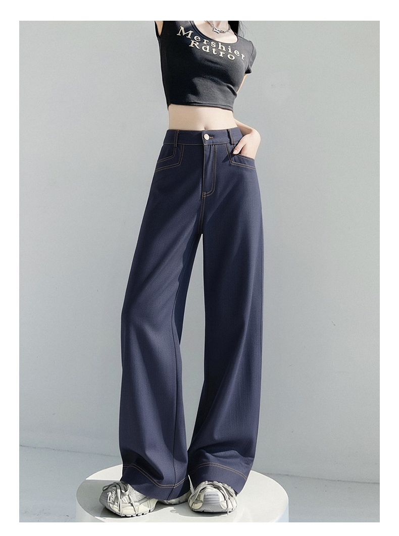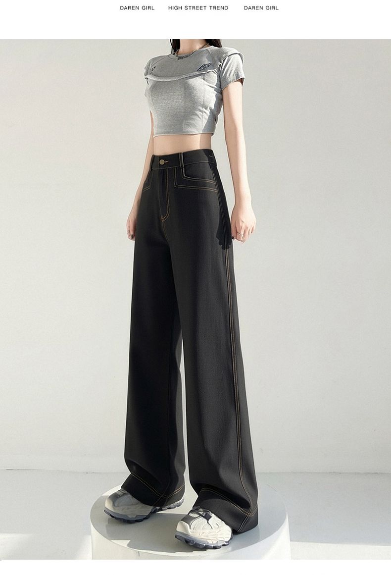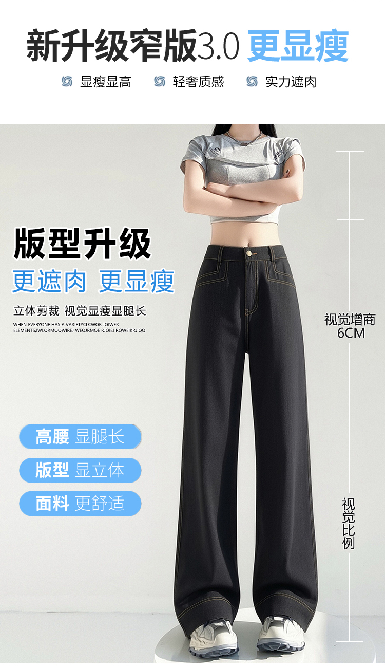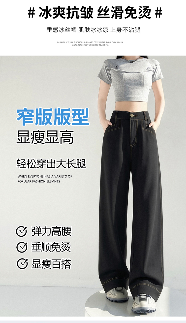 RY2869# 实拍 冰丝阔腿裤夏季薄款高腰显瘦休闲窄版直筒西装裤高级感垂...