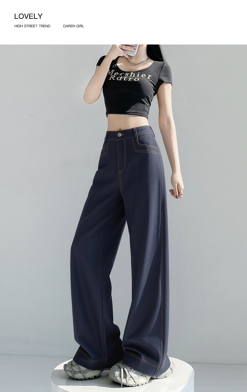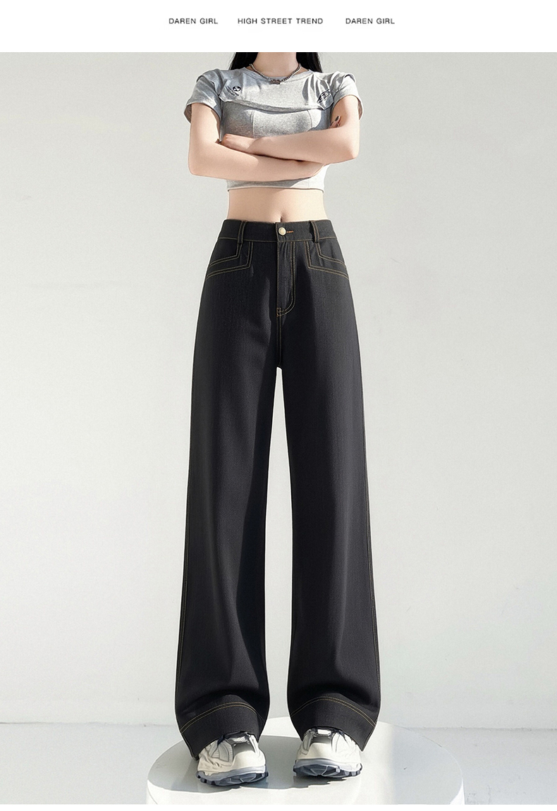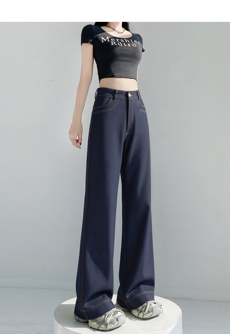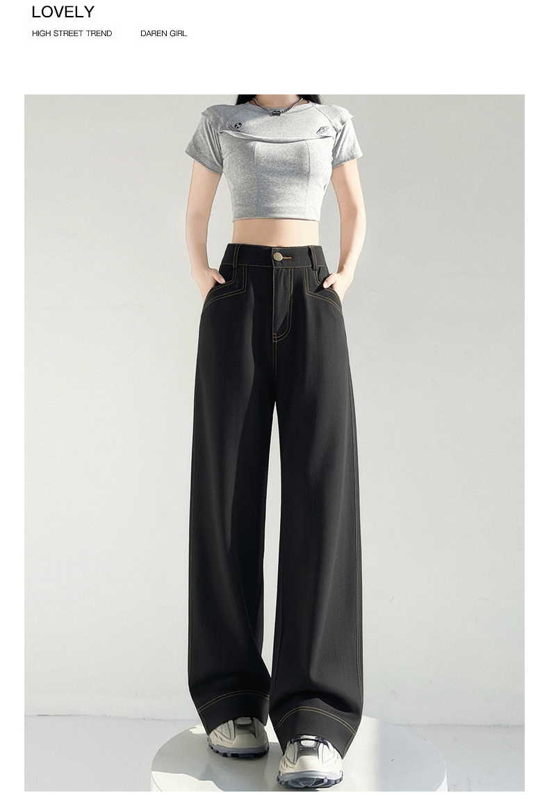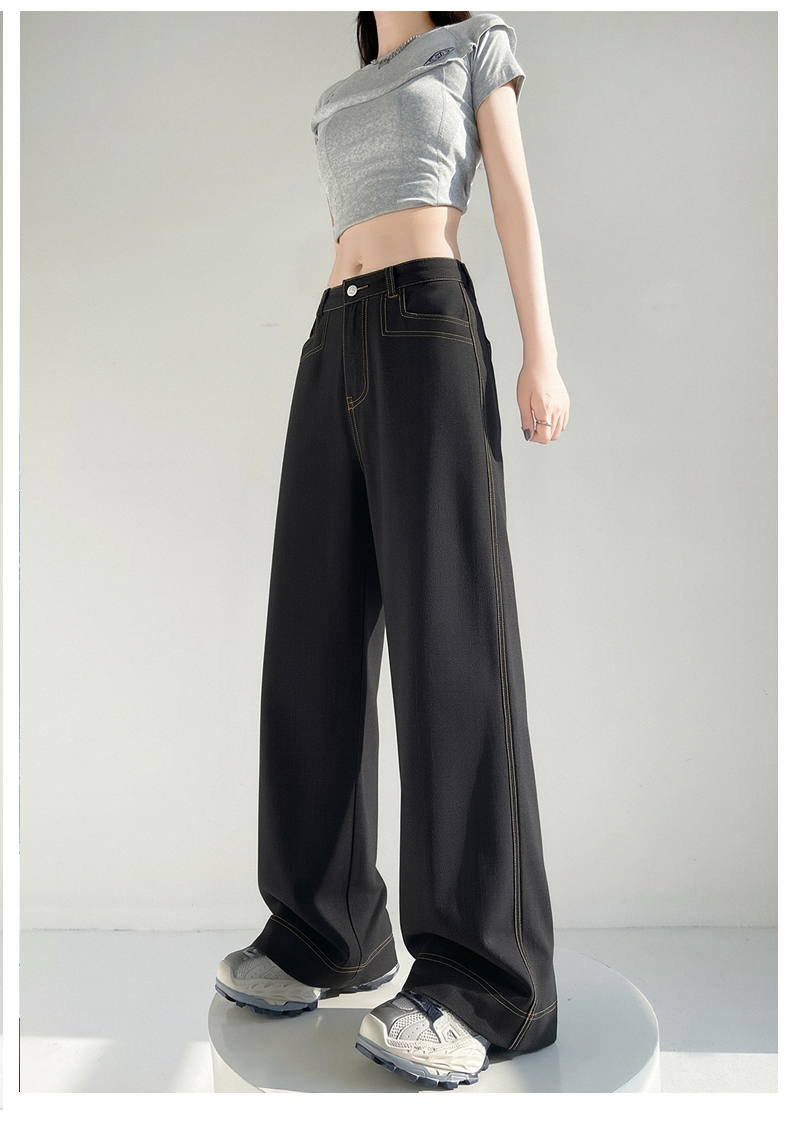 RY2869# 实拍 冰丝阔腿裤夏季薄款高腰显瘦休闲窄版直筒西装裤高级感垂...