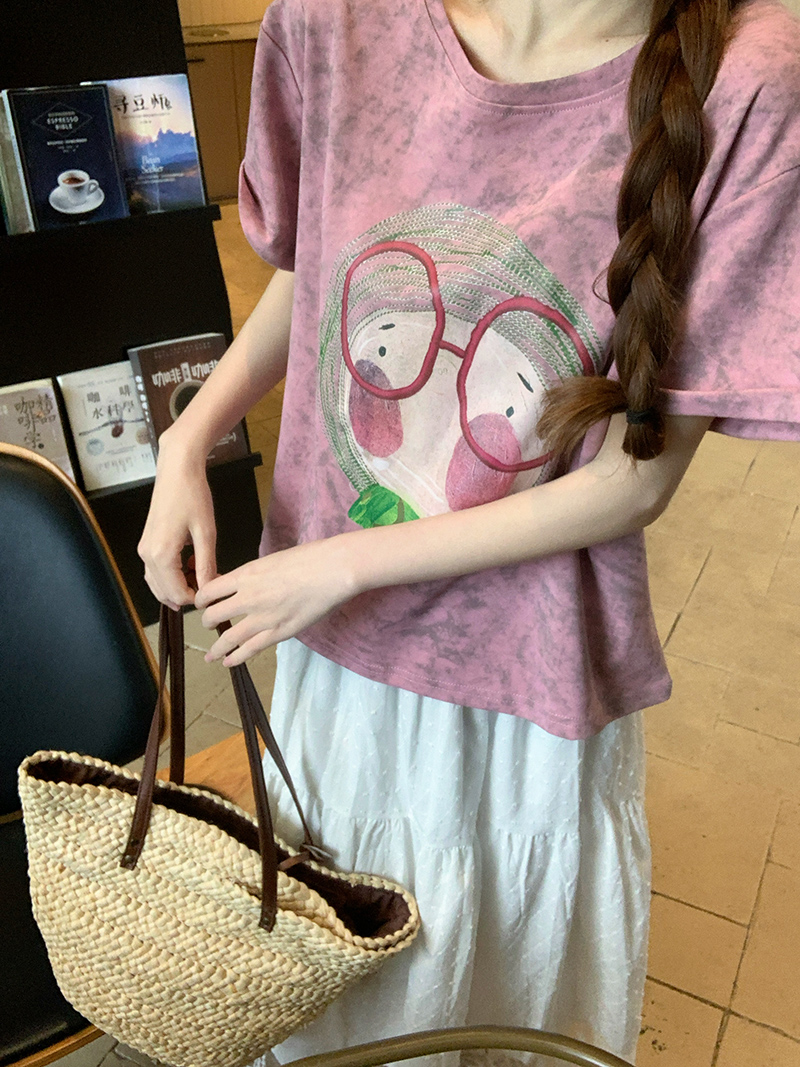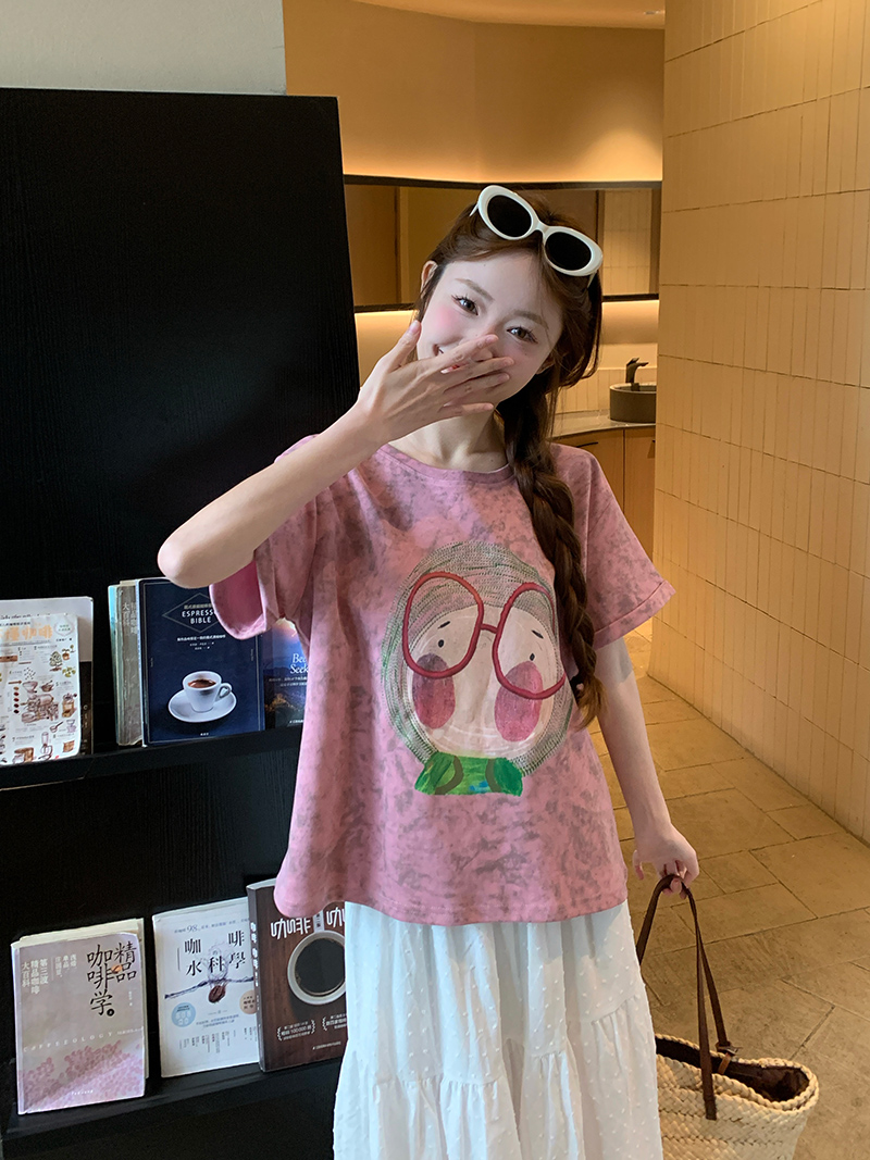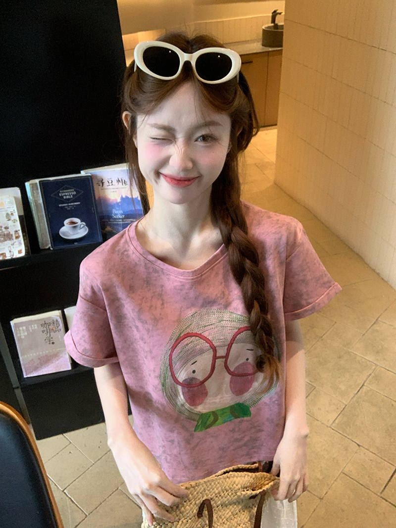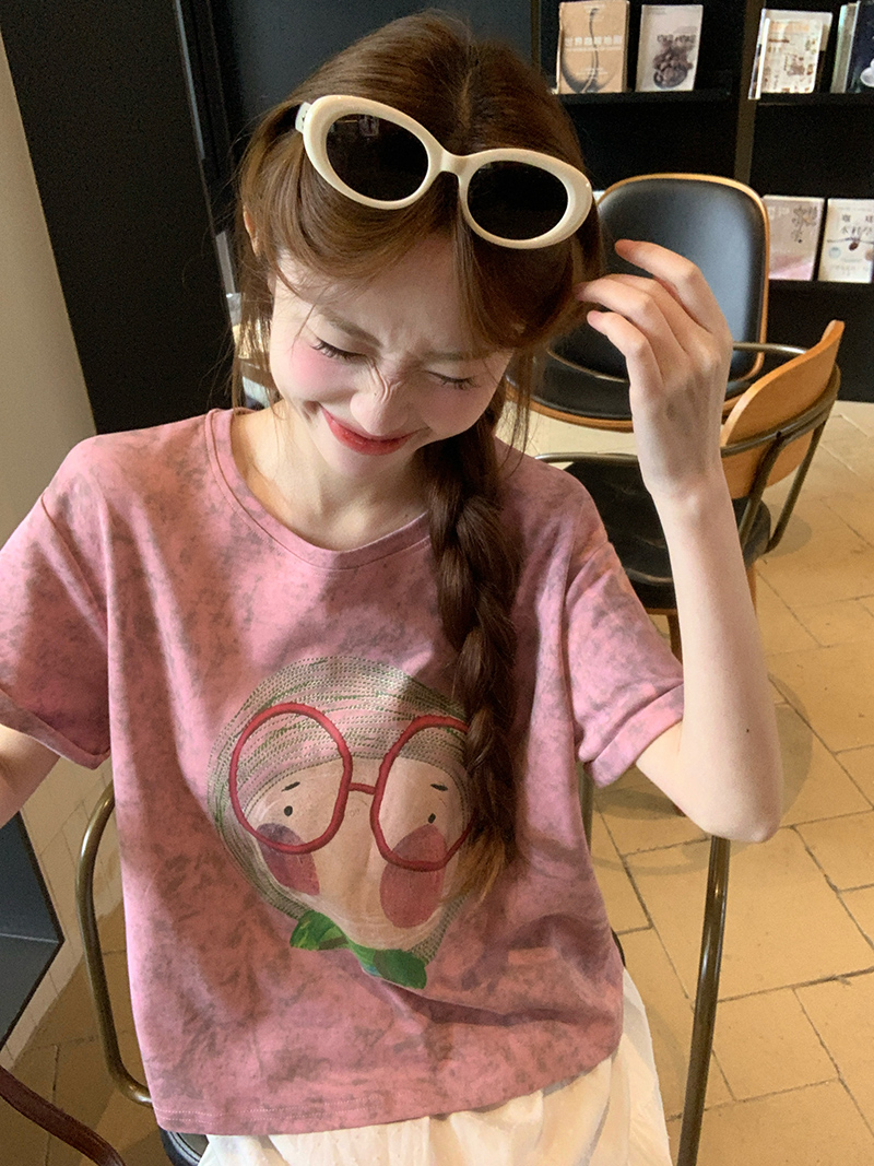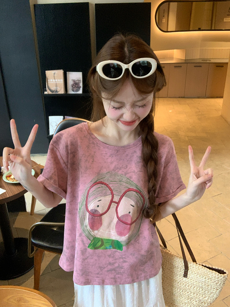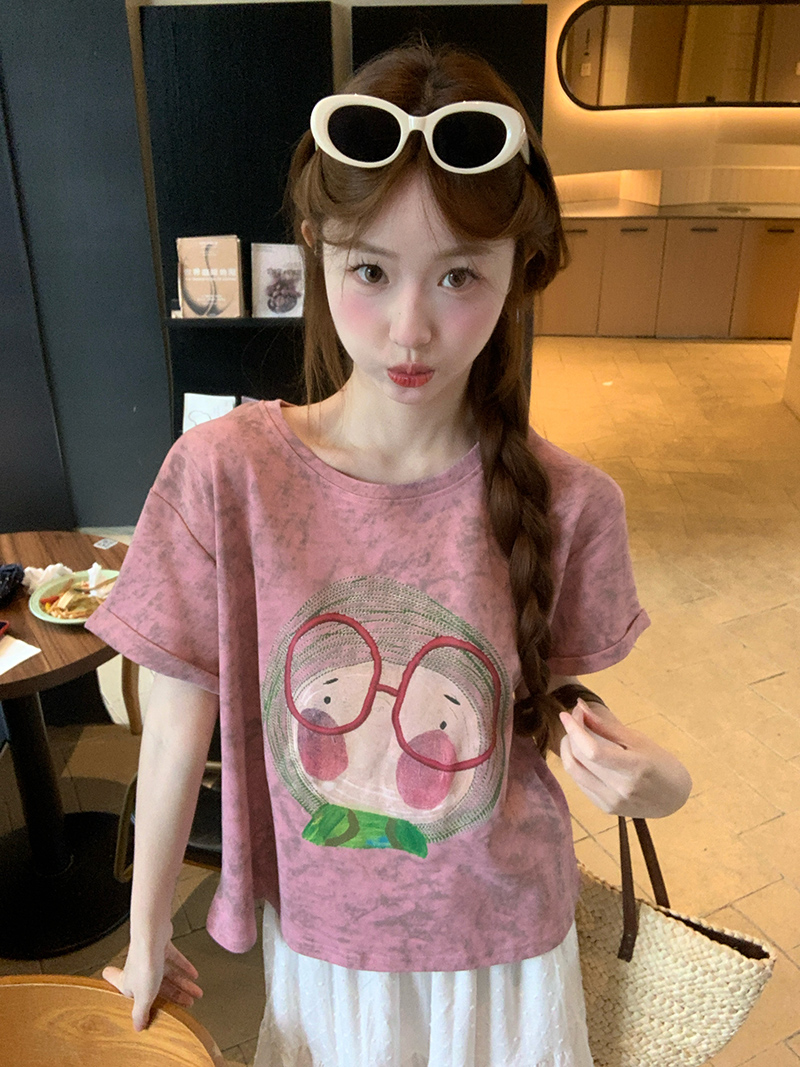 RY2873# 实拍!!短袖t恤女夏2026新款设计感潮卡通印花短款正肩圆领韩版