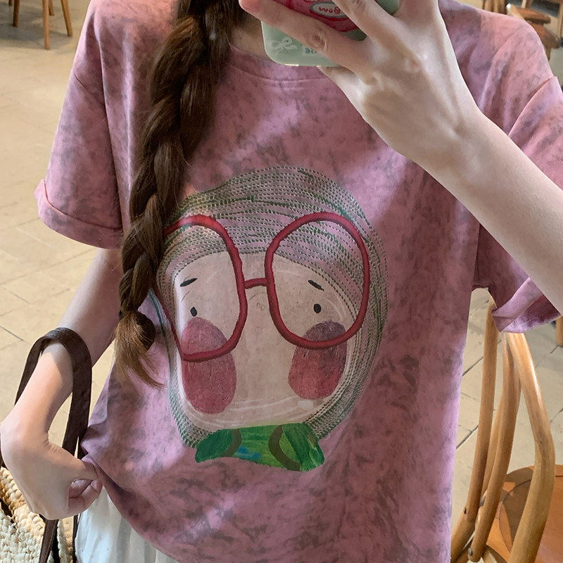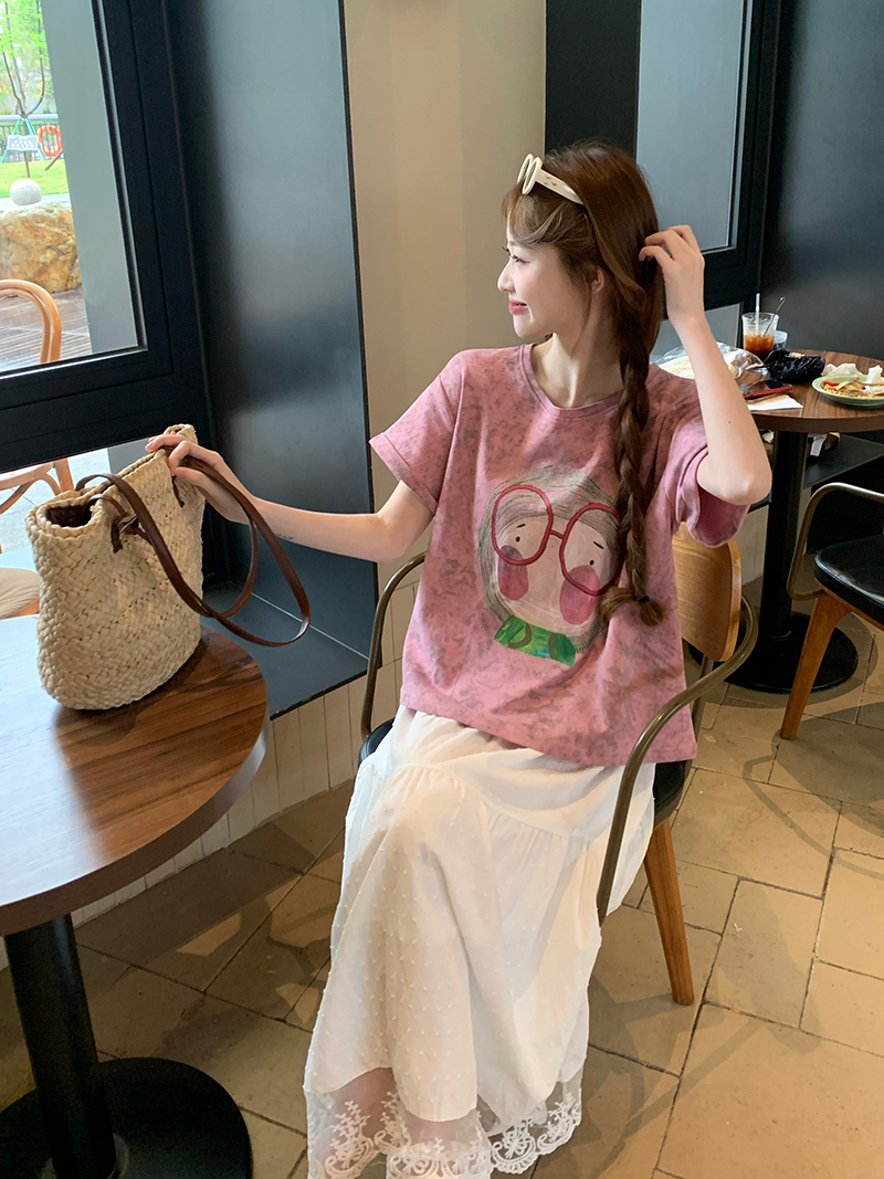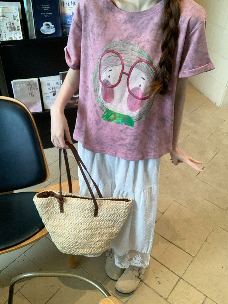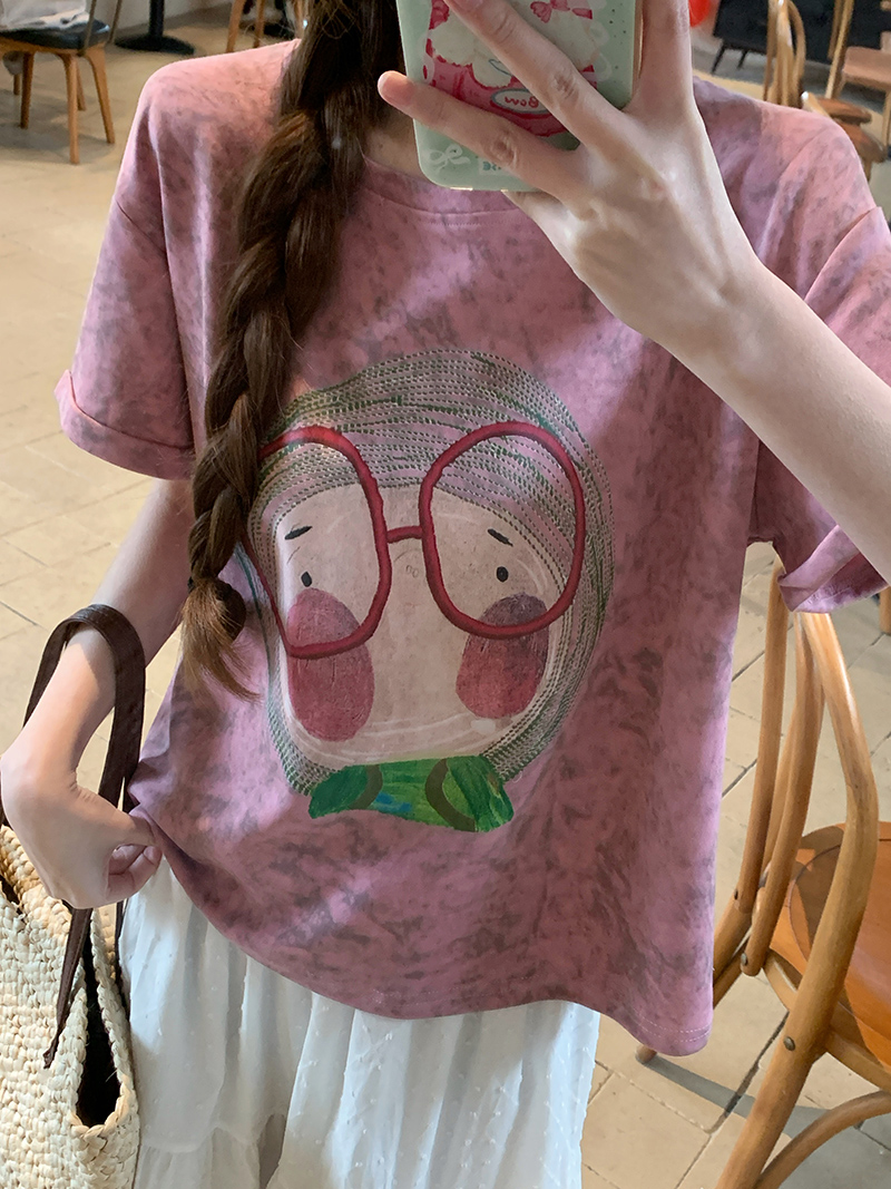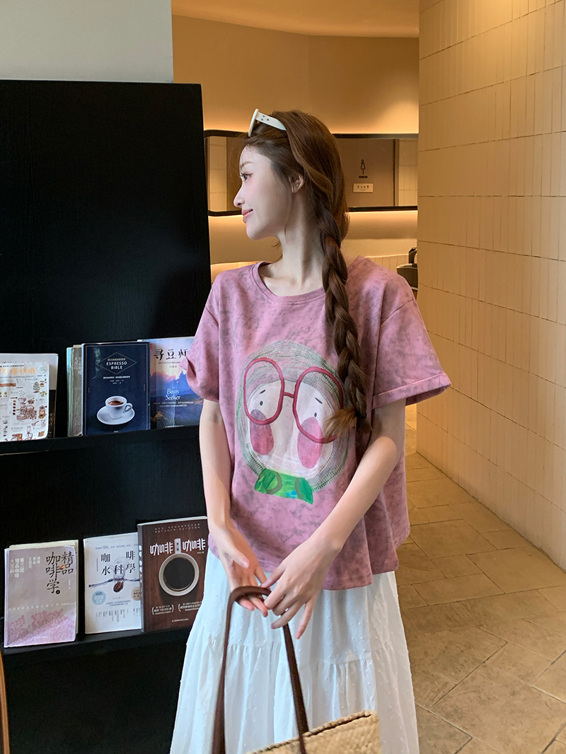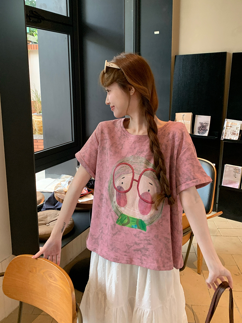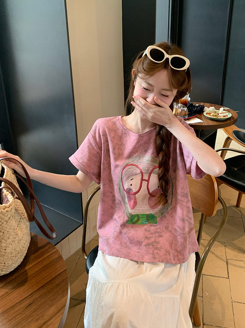 RY2873# 实拍!!短袖t恤女夏2026新款设计感潮卡通印花短款正肩圆领韩版