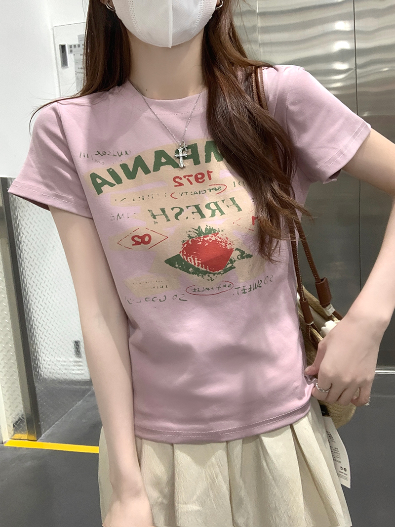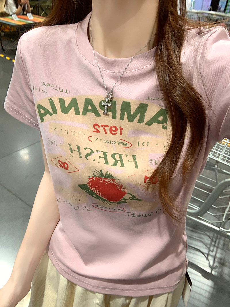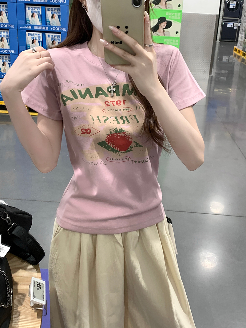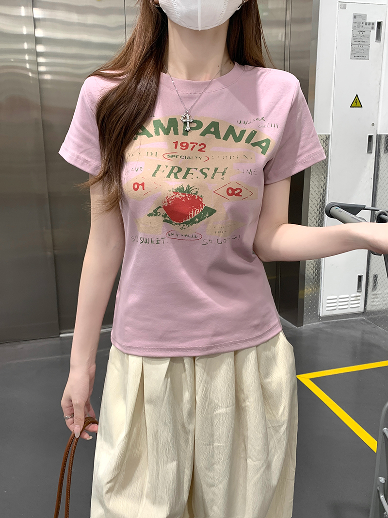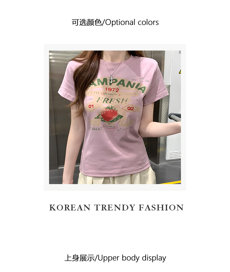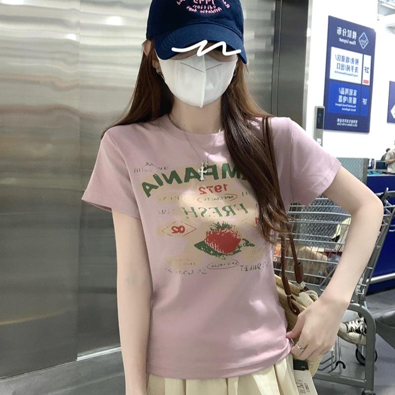 RY2881# 实拍 短袖t恤女夏正肩新款韩系显瘦圆领上衣