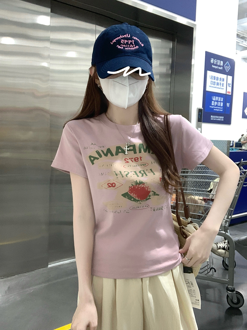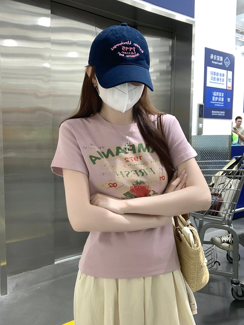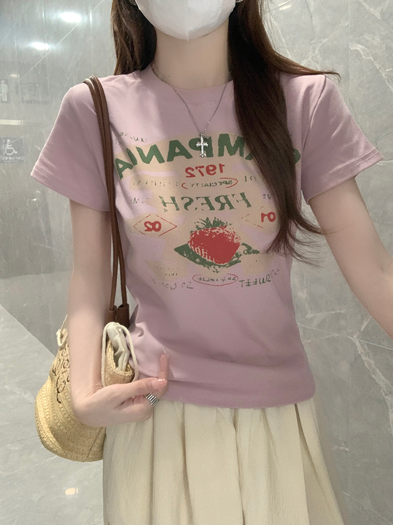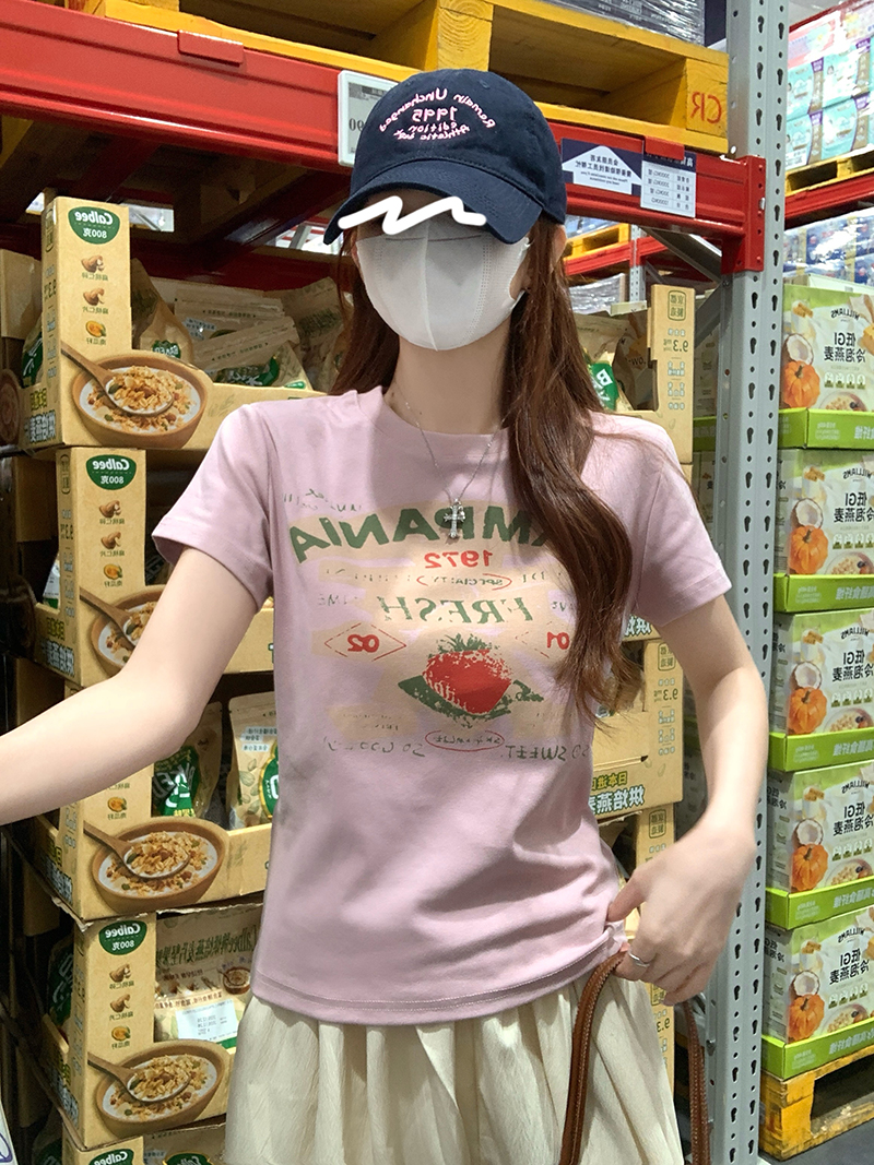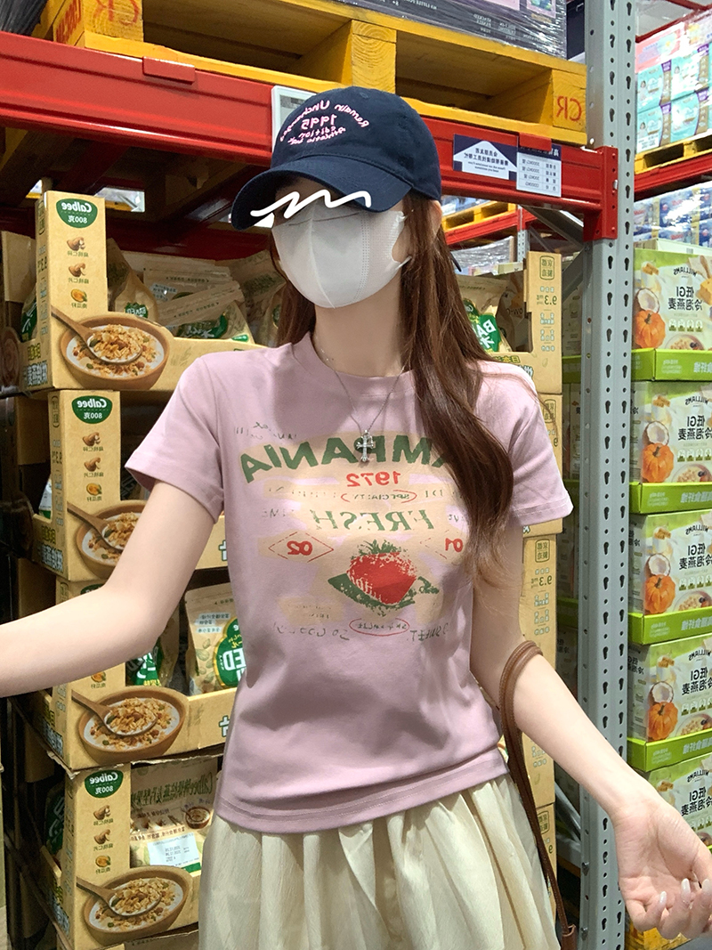 RY2881# 实拍 短袖t恤女夏正肩新款韩系显瘦圆领上衣