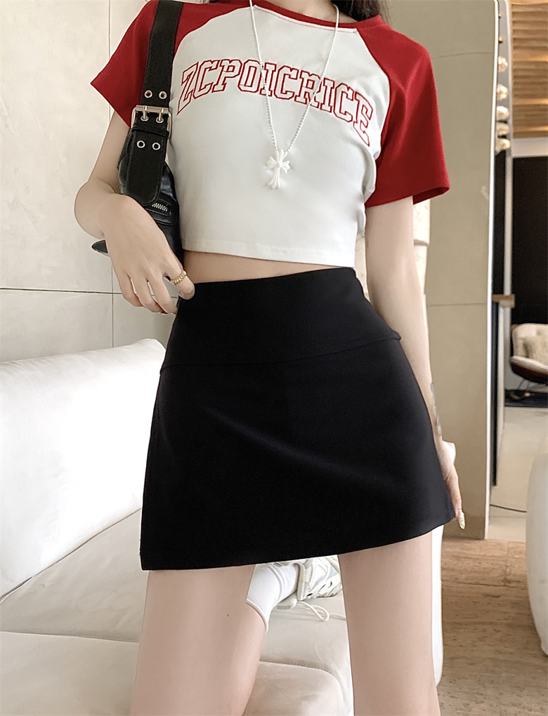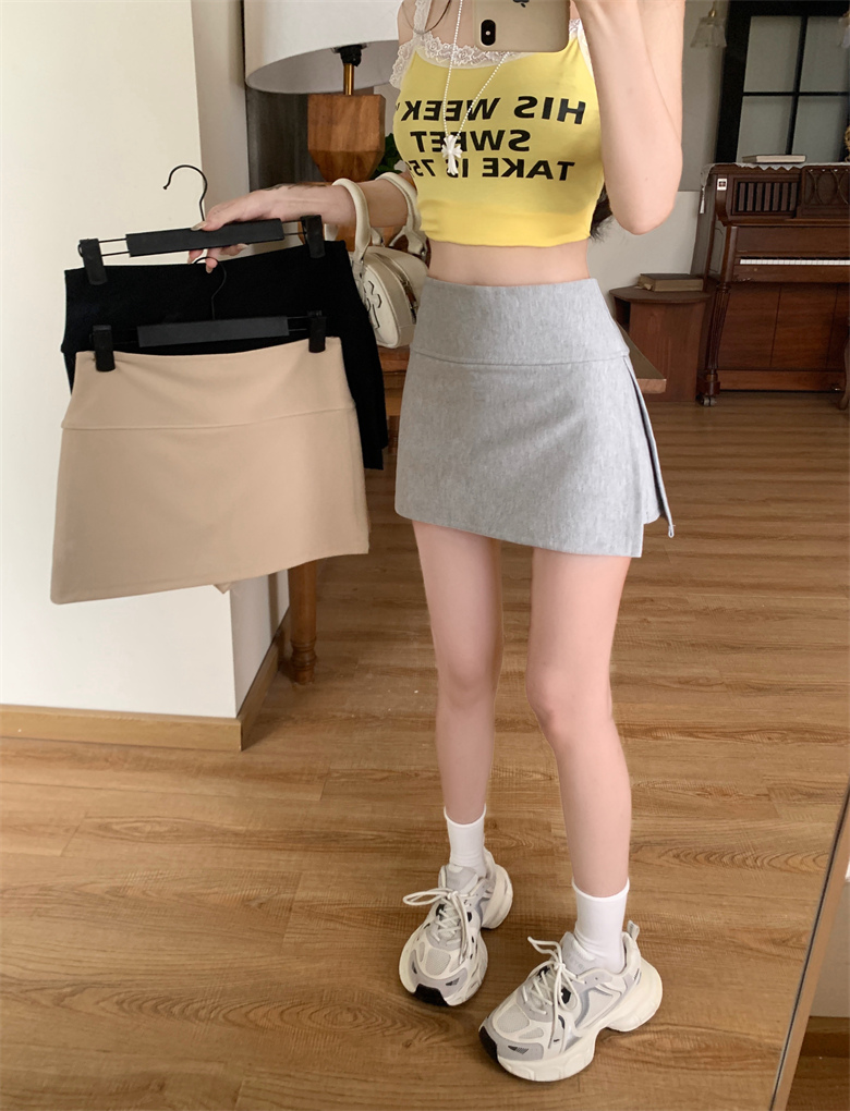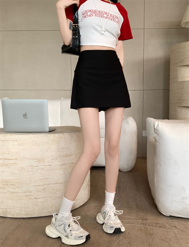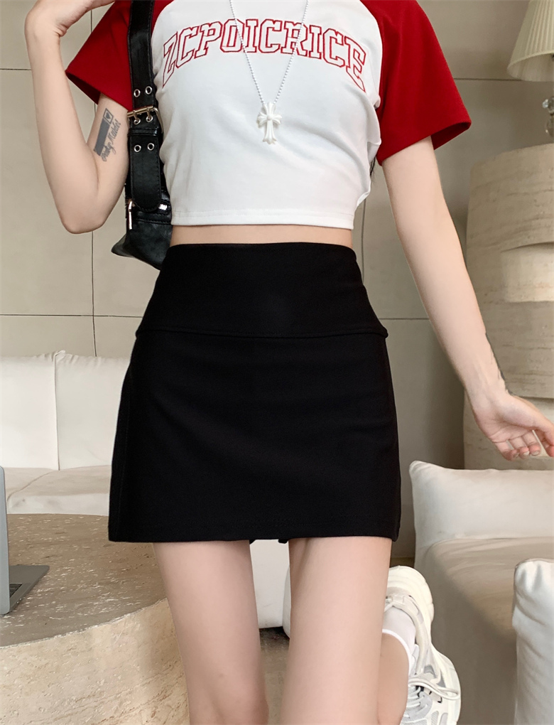 RY2883# 实拍 夏季新款辣妹性感开叉显瘦百搭休闲不规则短裙女