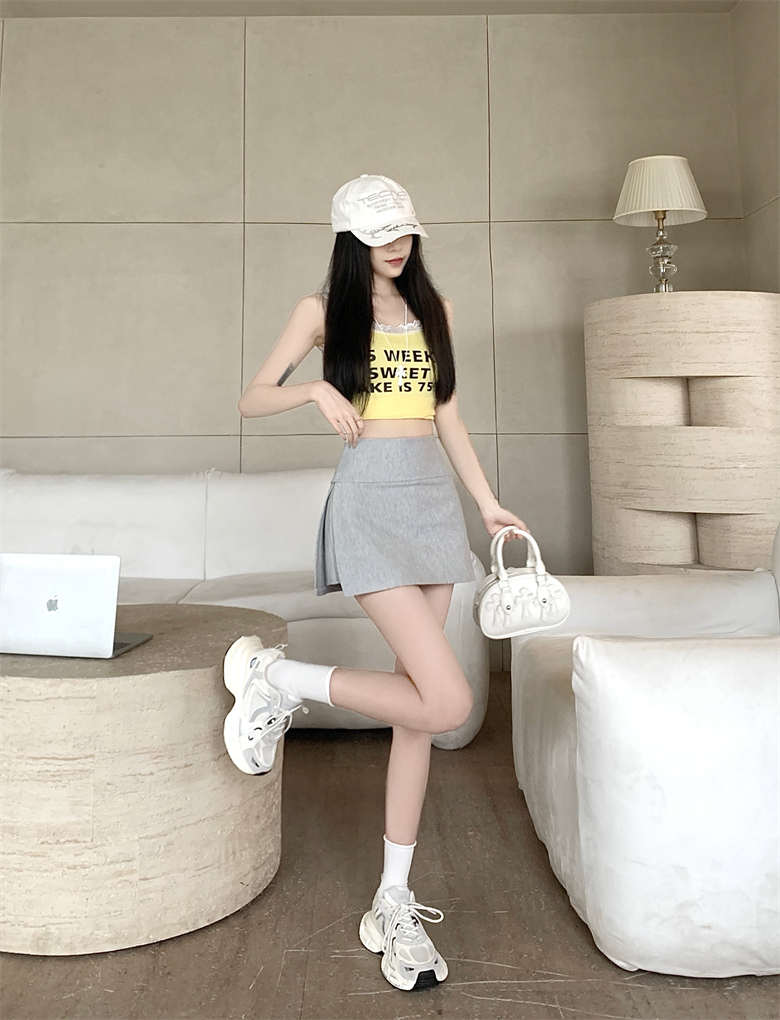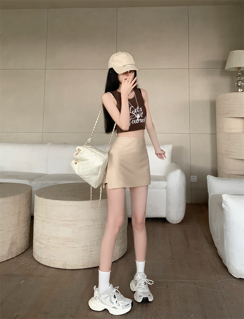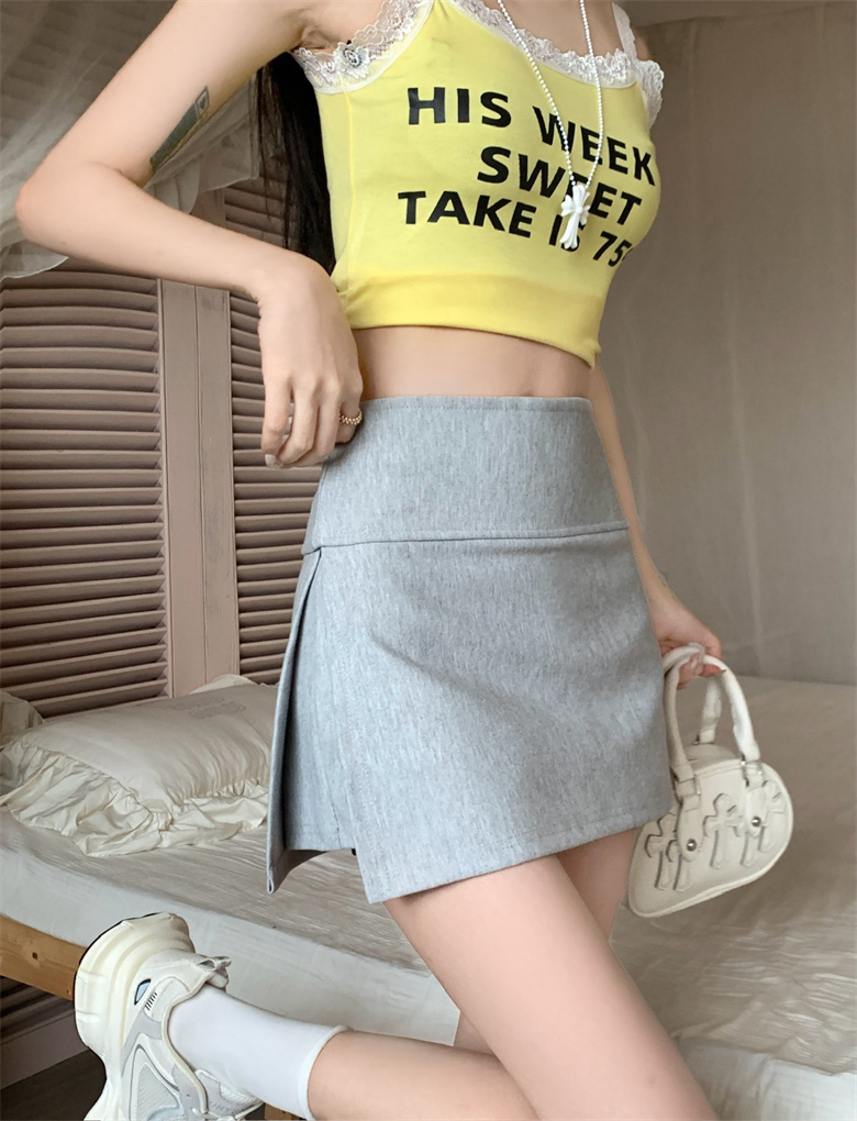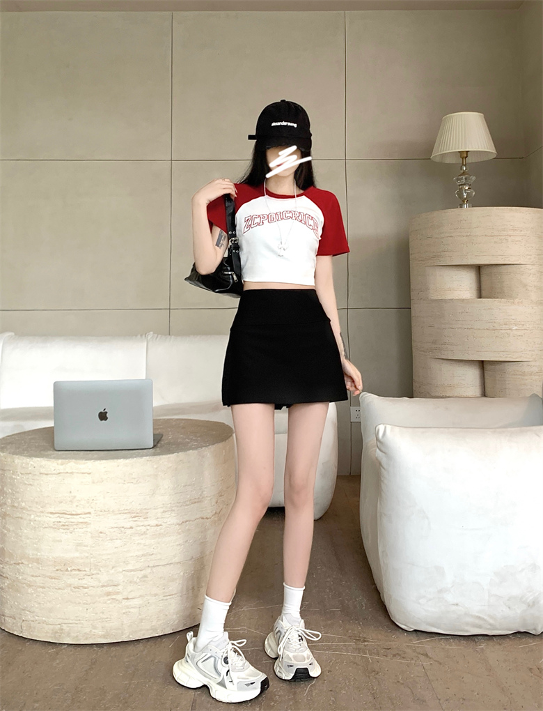 RY2883# 实拍 夏季新款辣妹性感开叉显瘦百搭休闲不规则短裙女