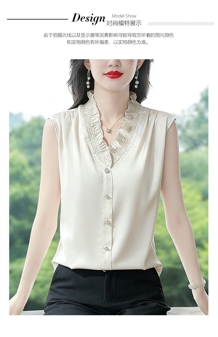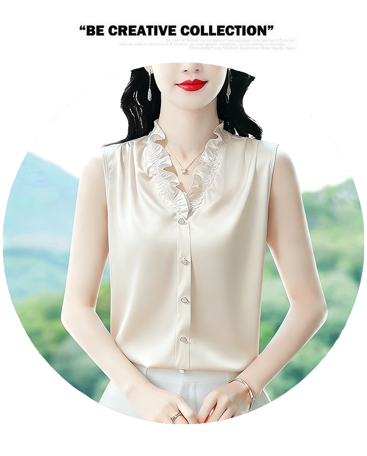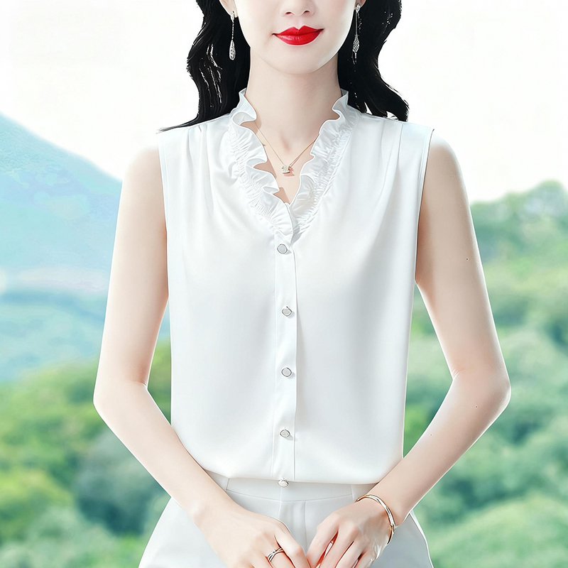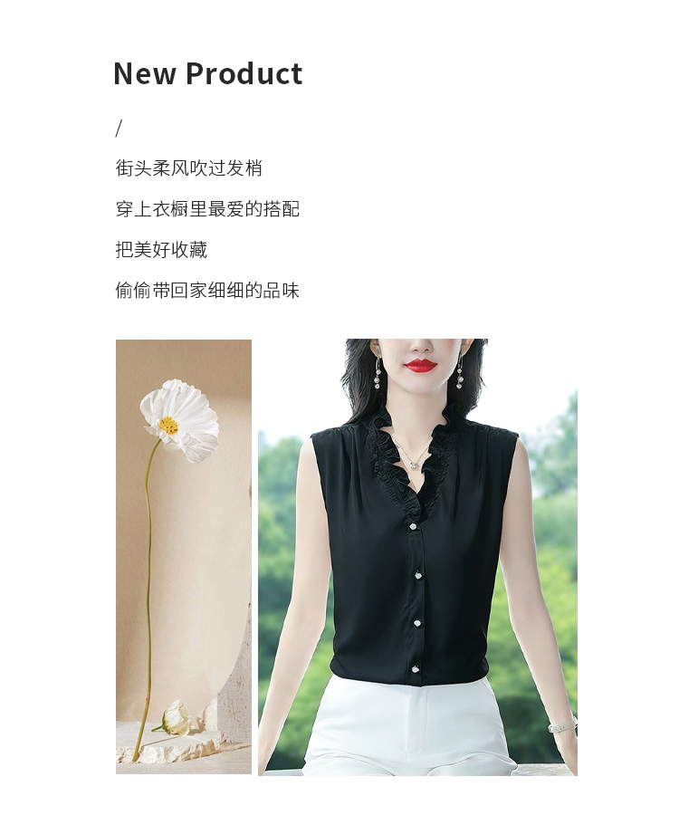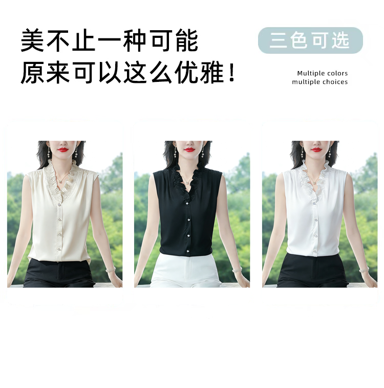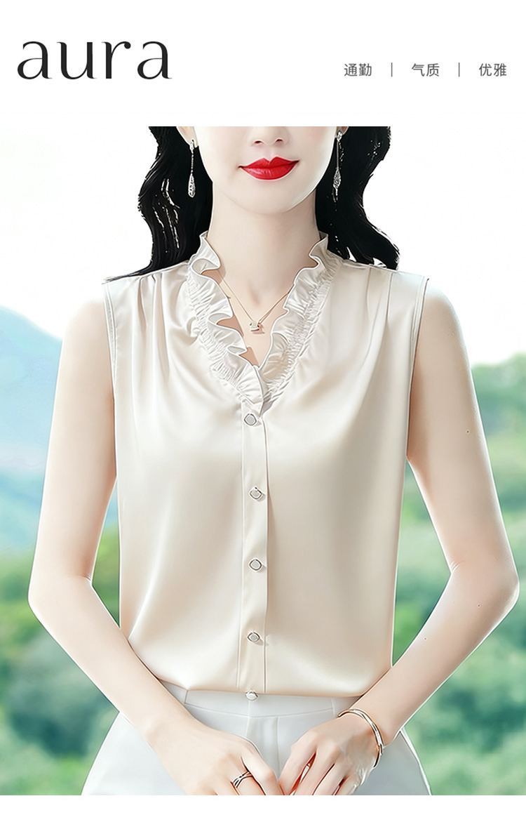 RY2905# 实拍2026夏季新款时尚设计感木耳边缎面背心气质无袖韩系百搭上衣