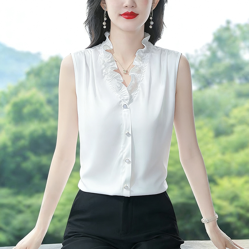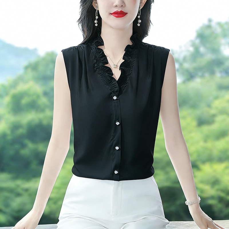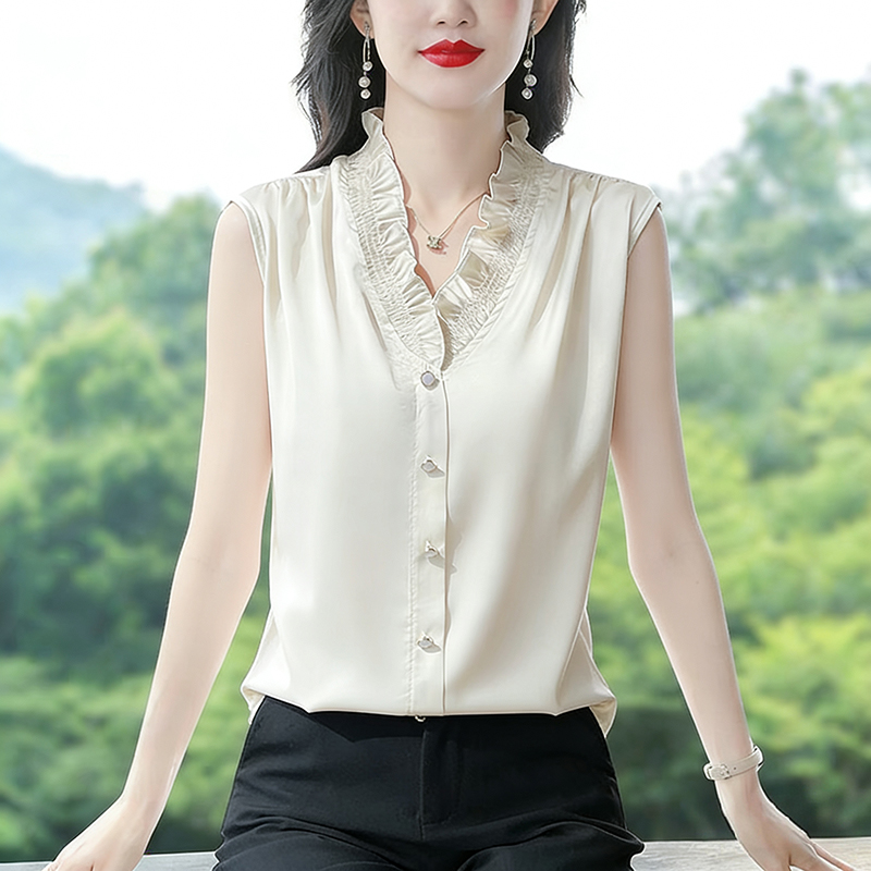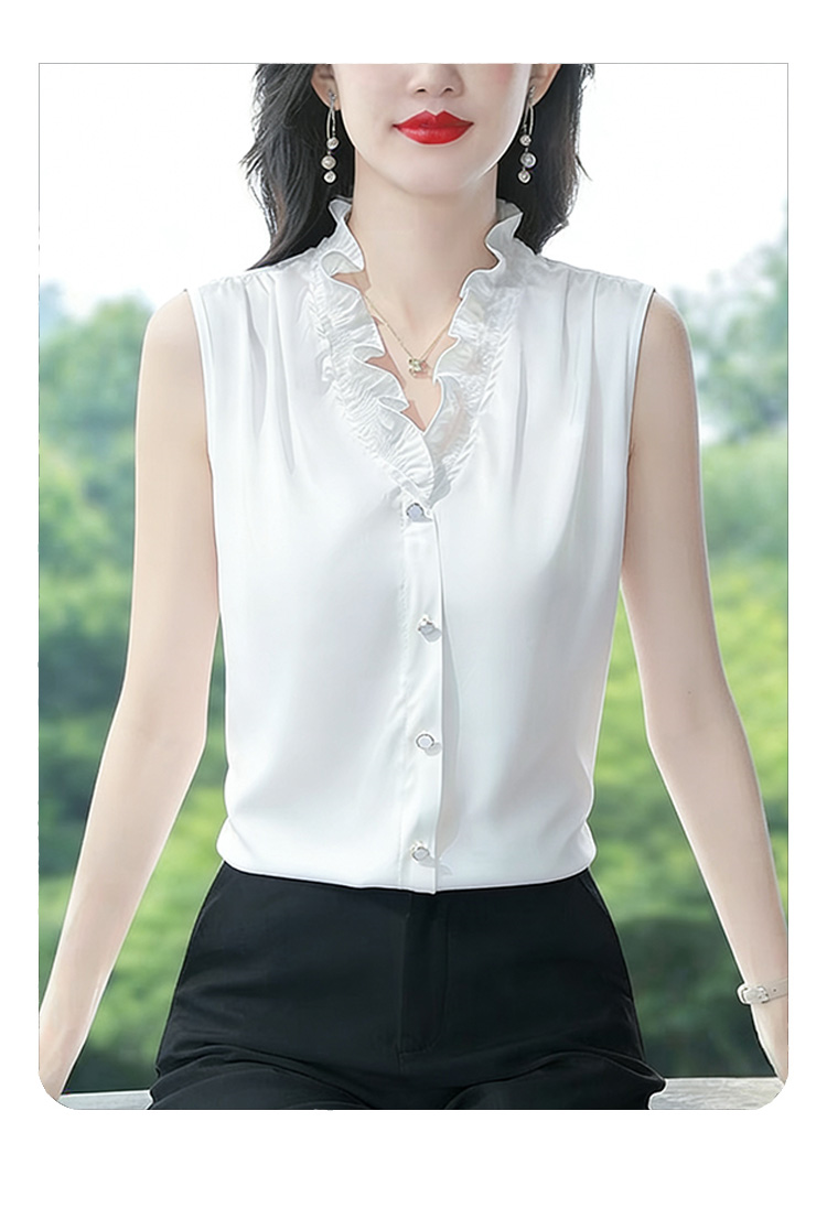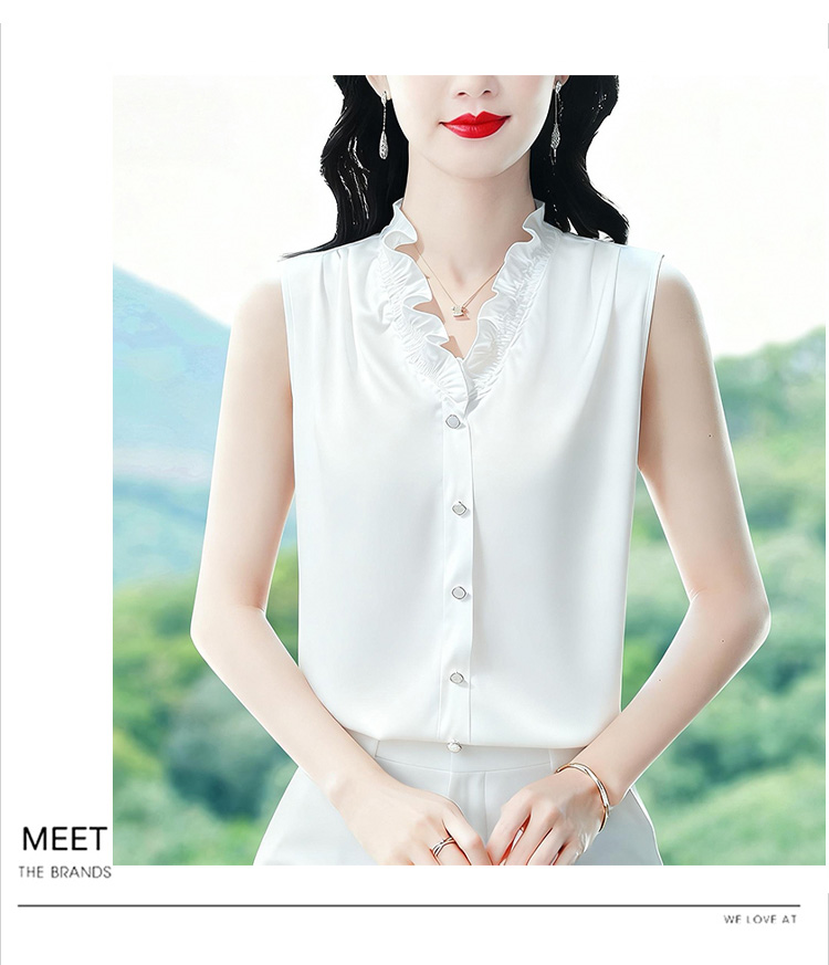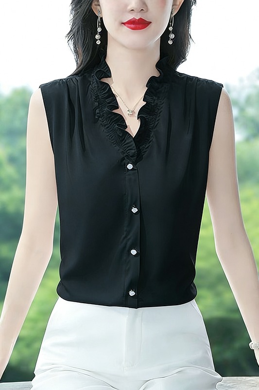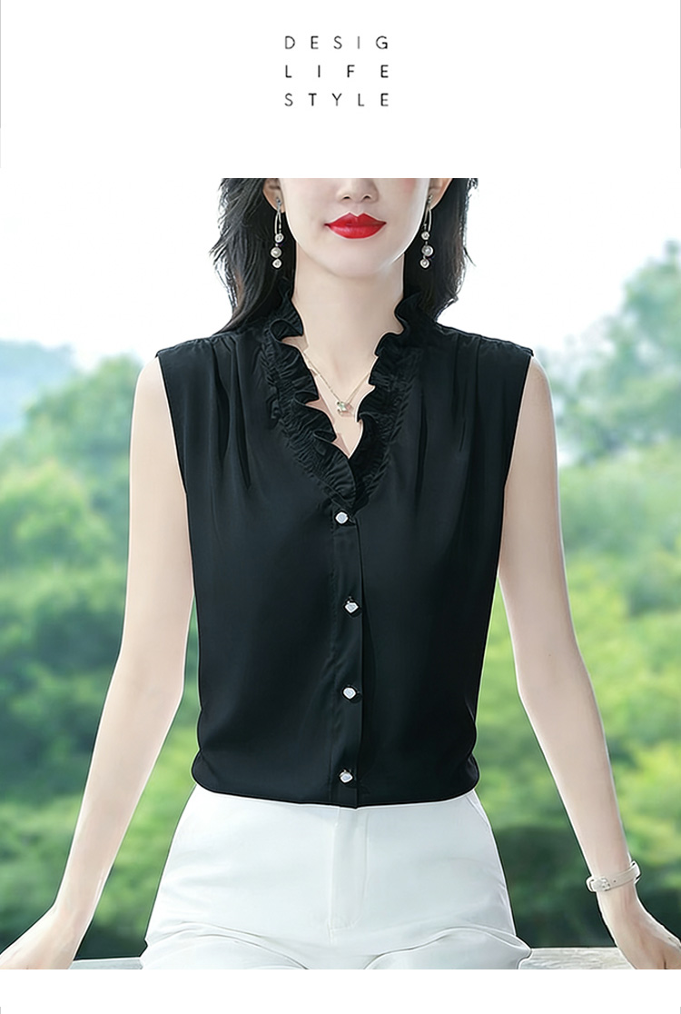 RY2905# 实拍2026夏季新款时尚设计感木耳边缎面背心气质无袖韩系百搭上衣