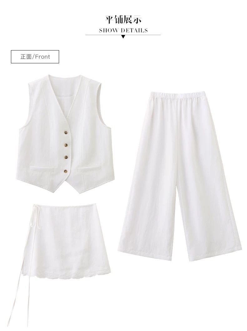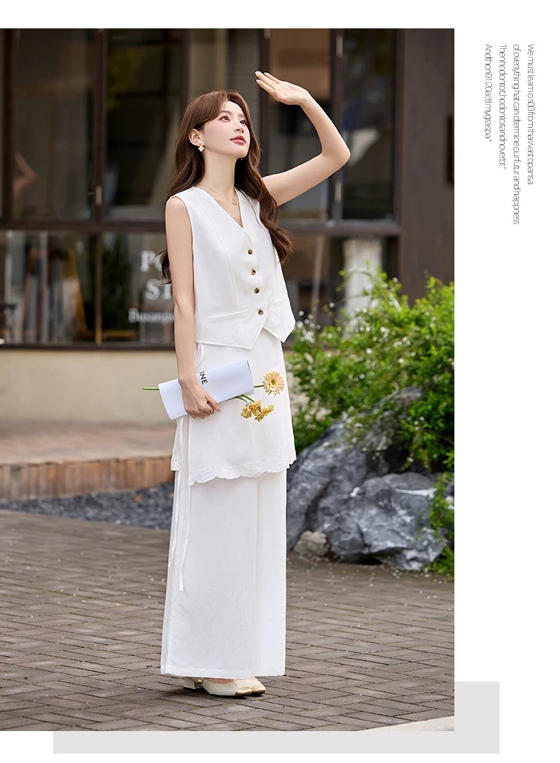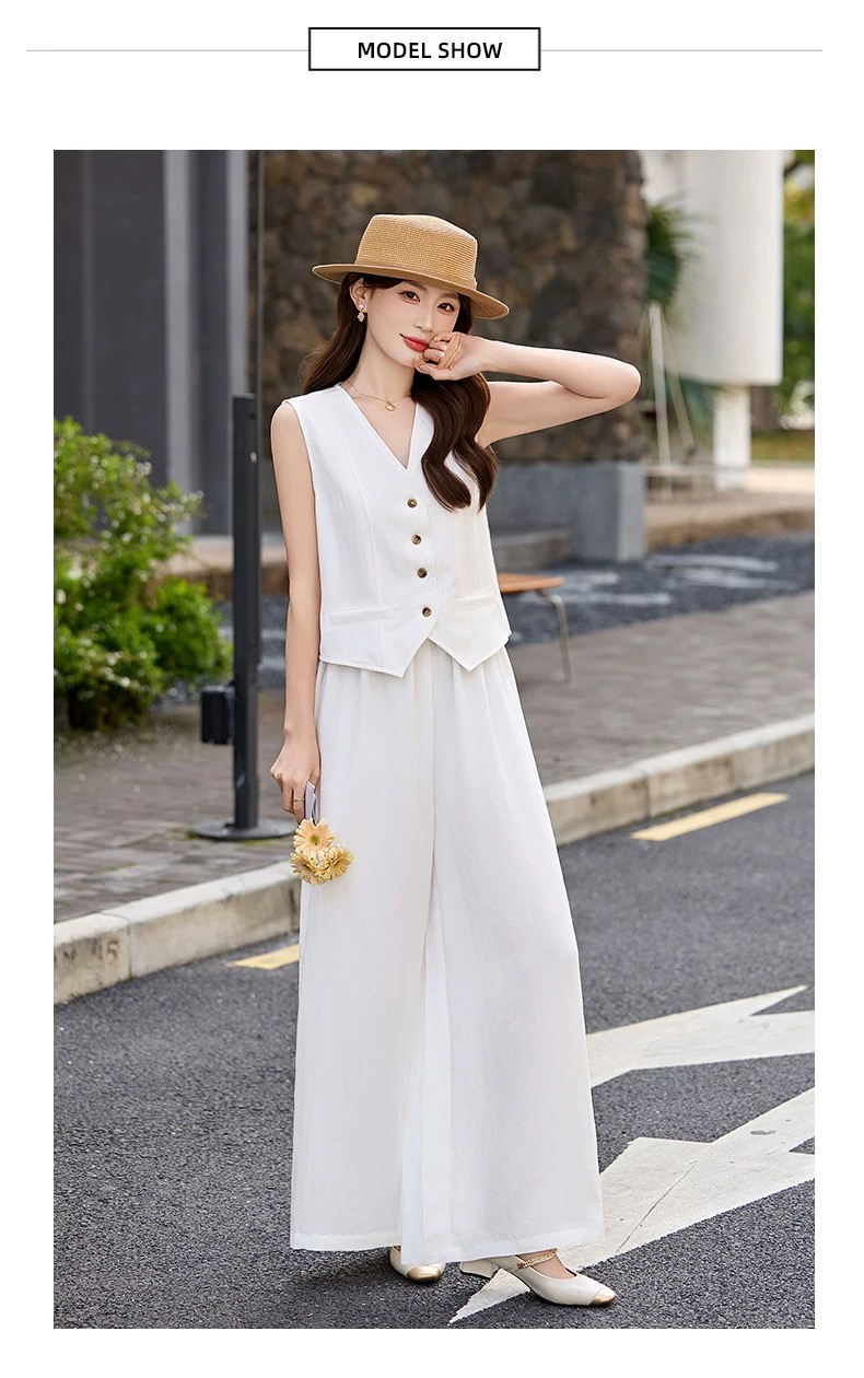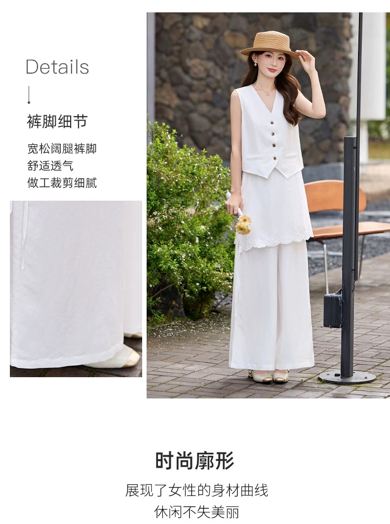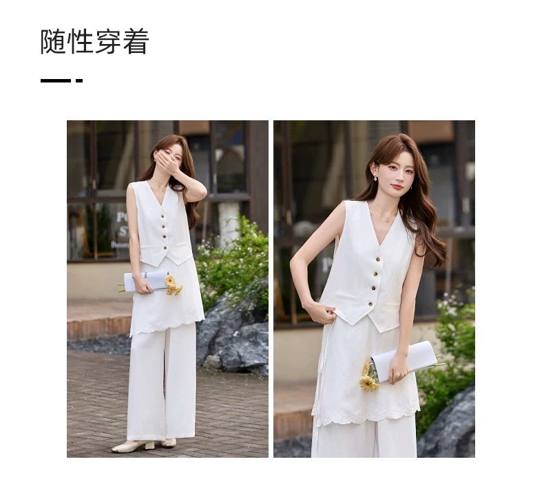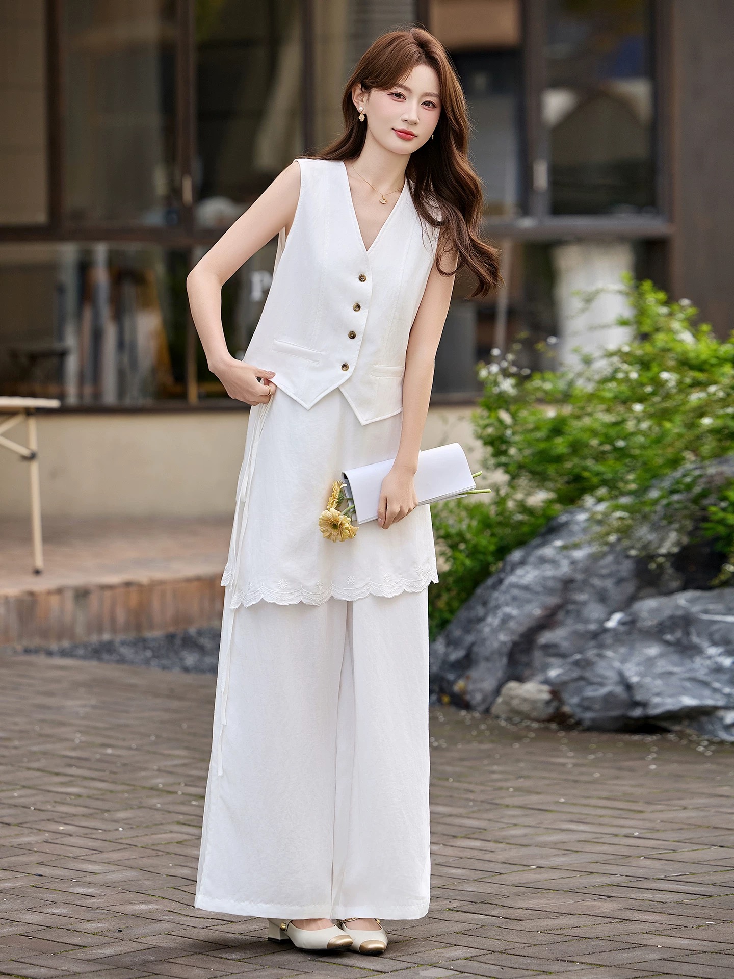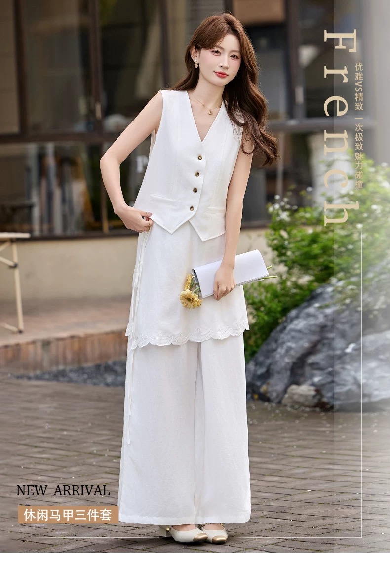 RY2921# 法式高级感白色马甲阔腿裤套装女2026夏季新款老钱风显瘦三件套