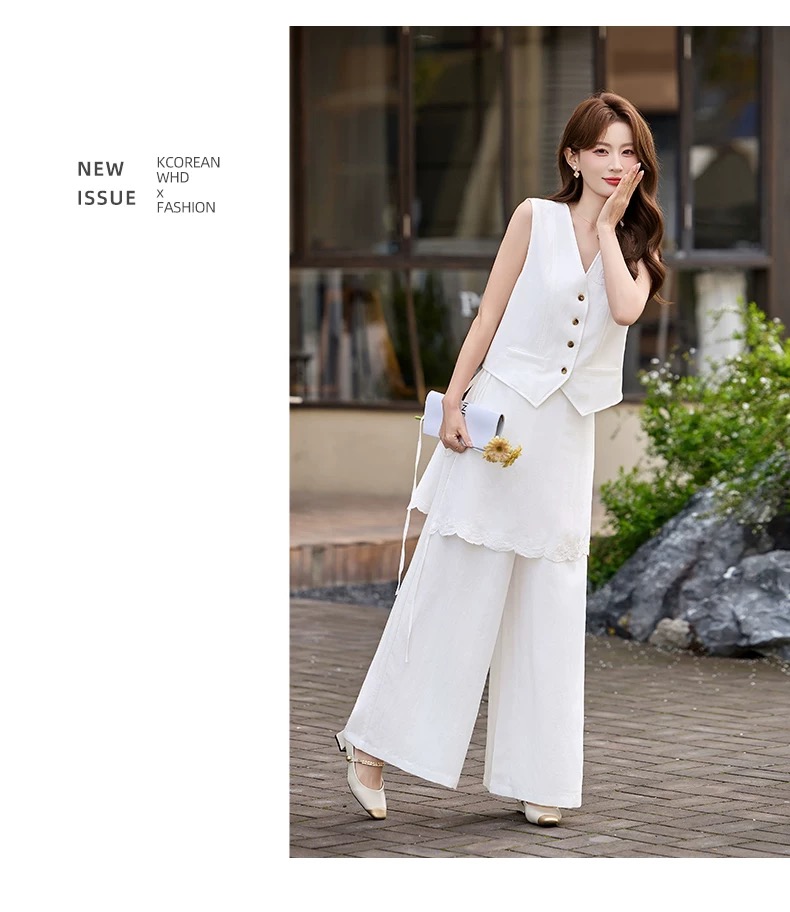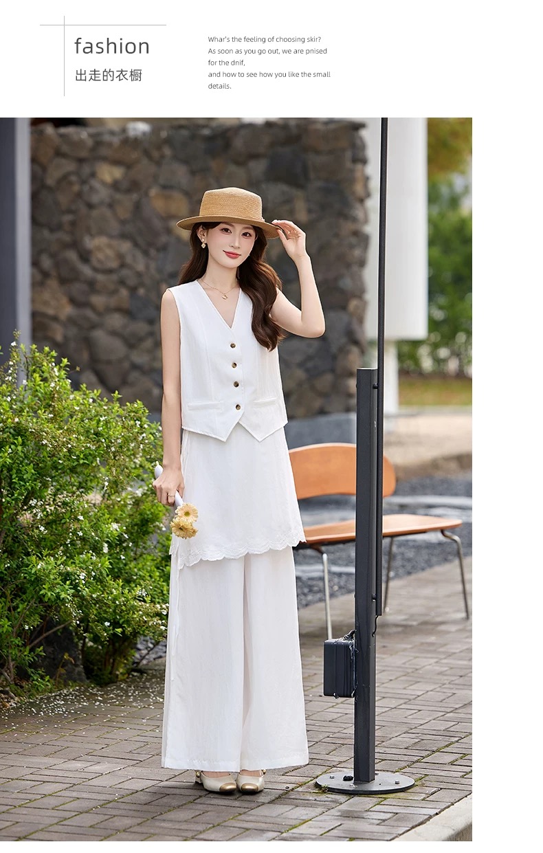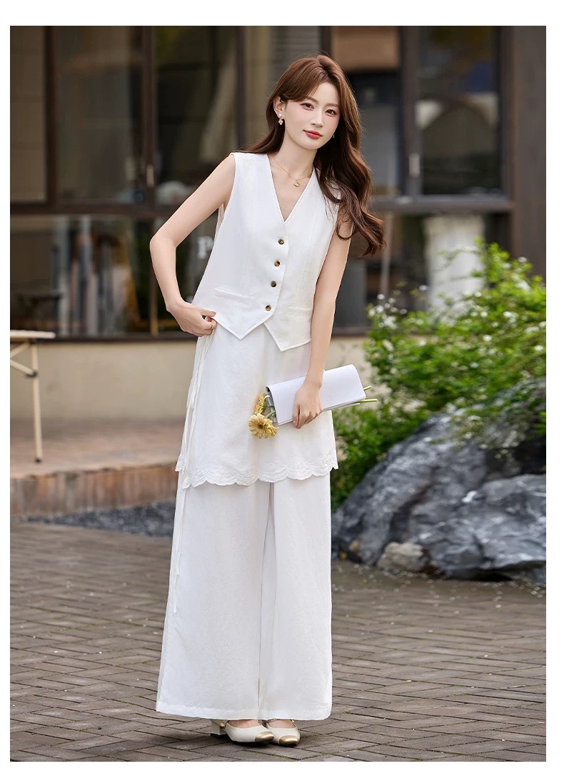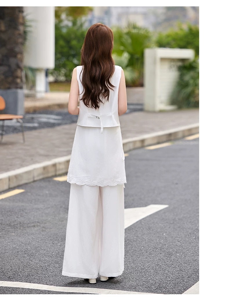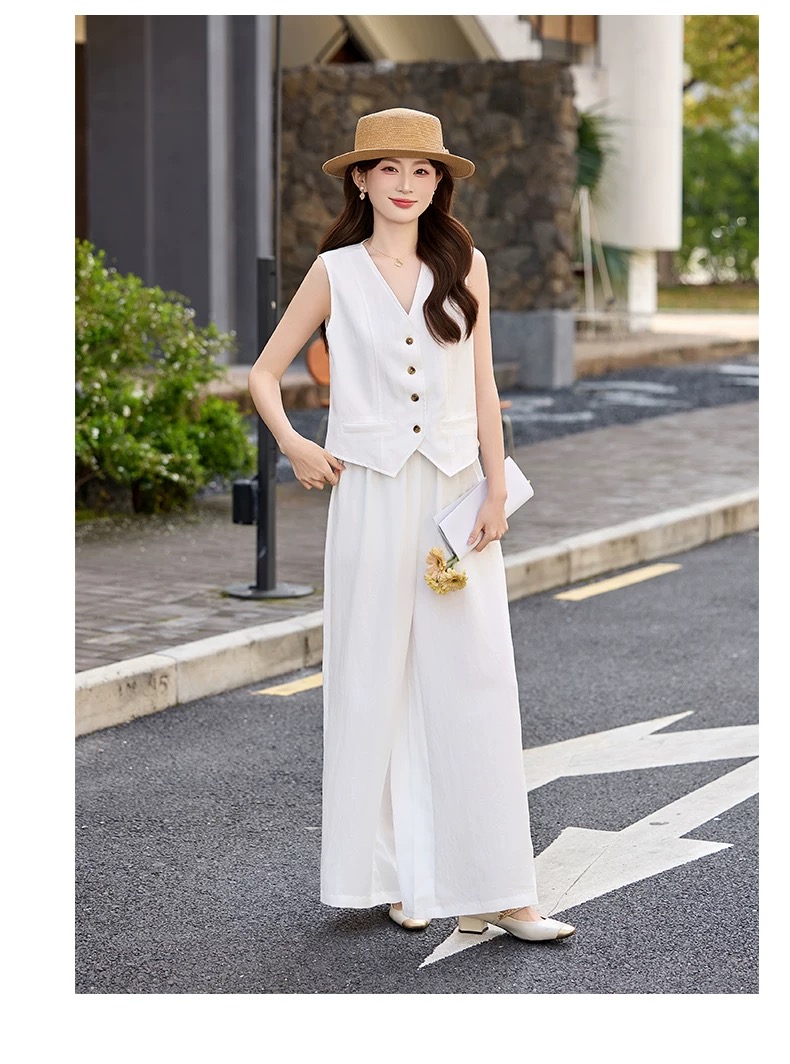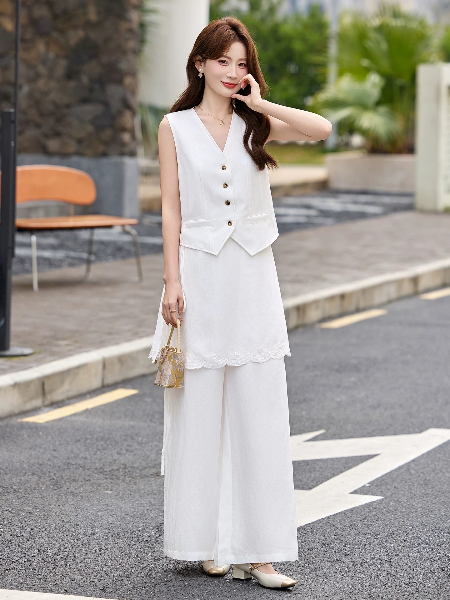 RY2921# 法式高级感白色马甲阔腿裤套装女2026夏季新款老钱风显瘦三件套