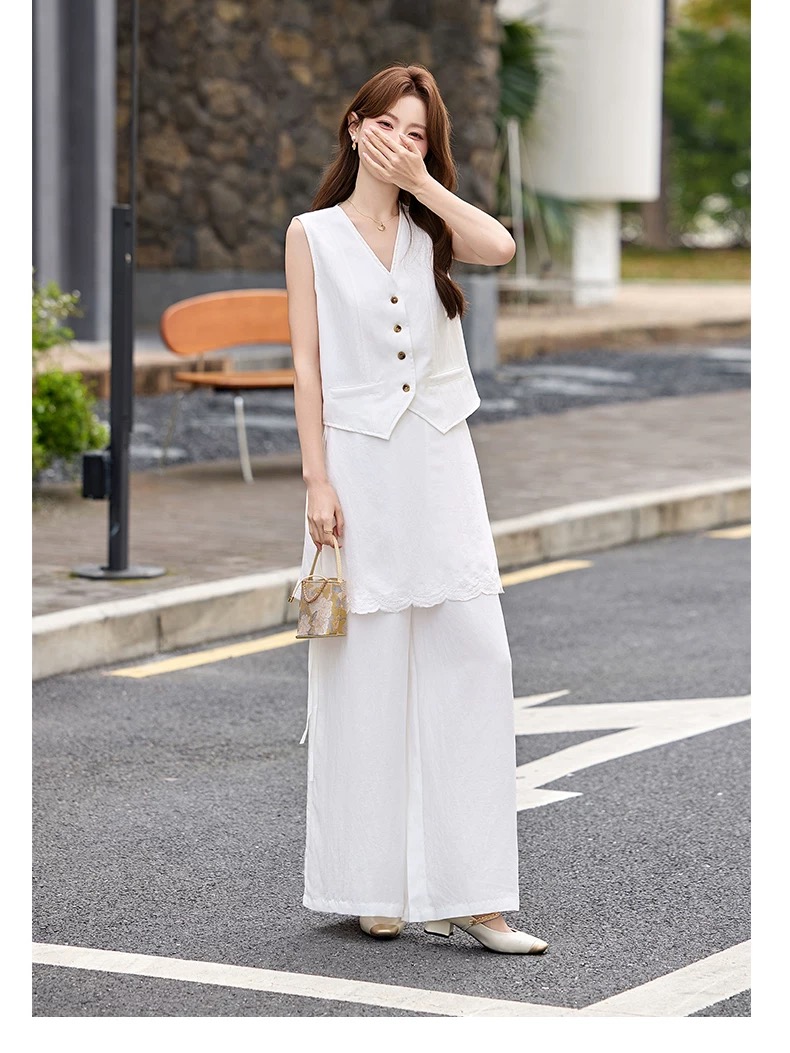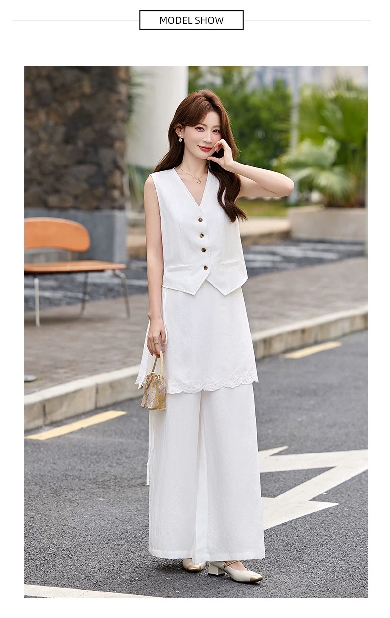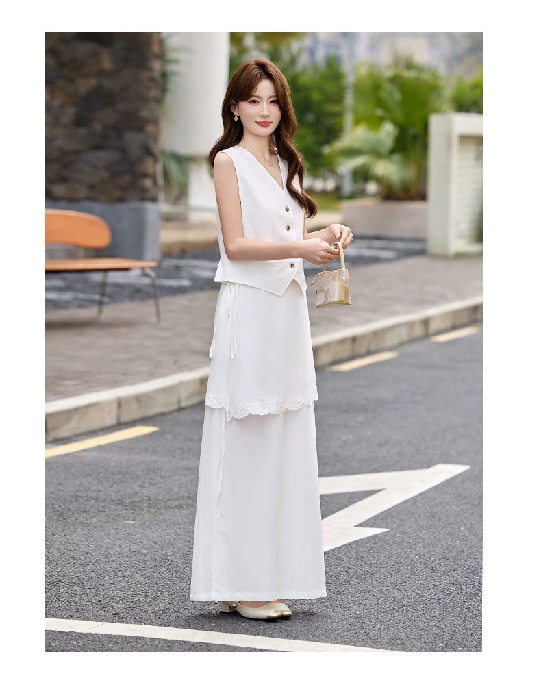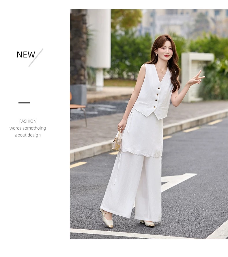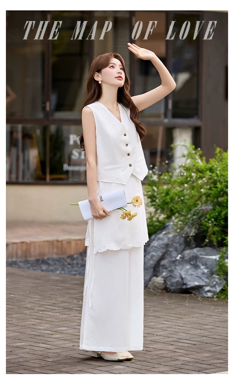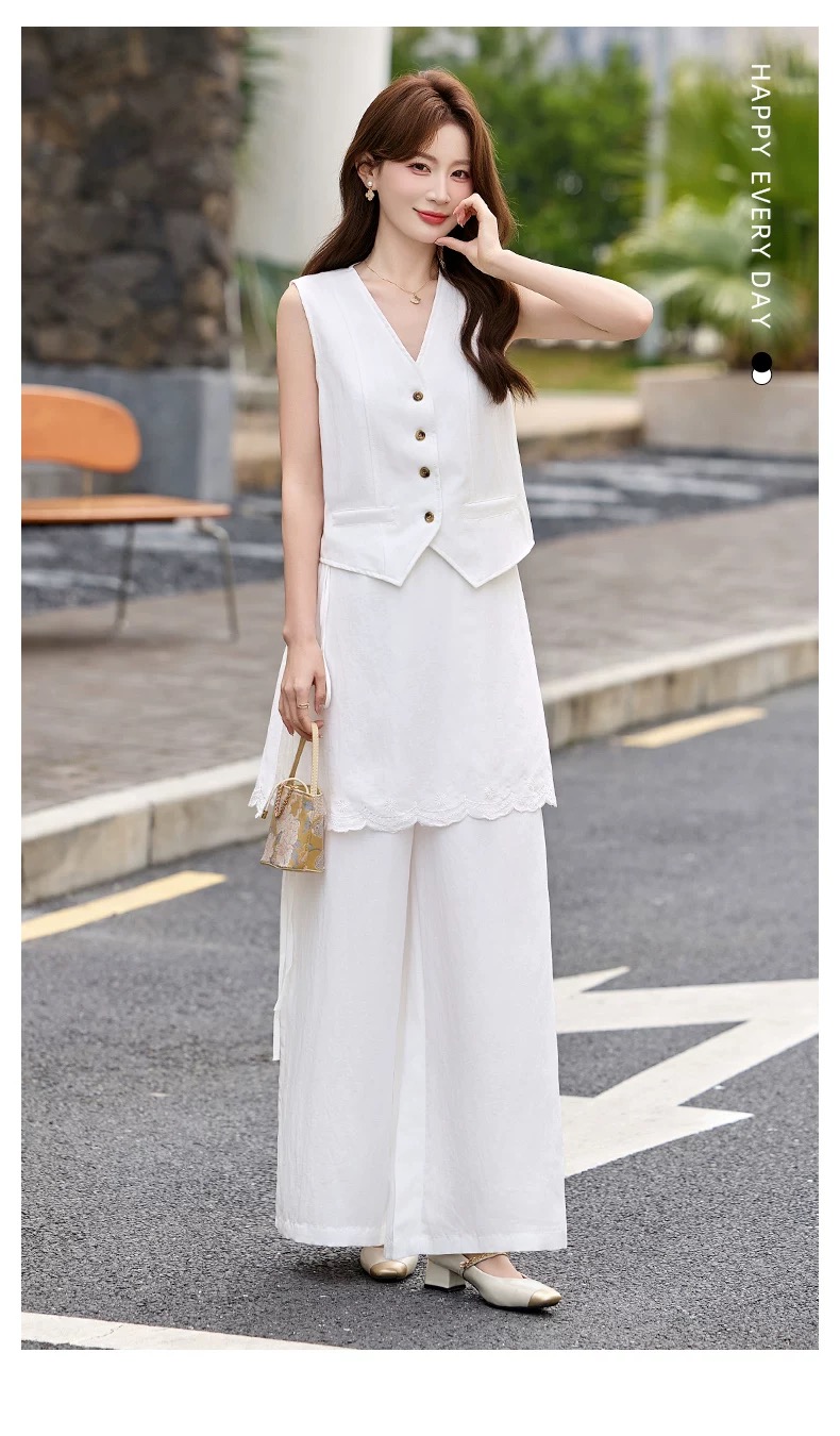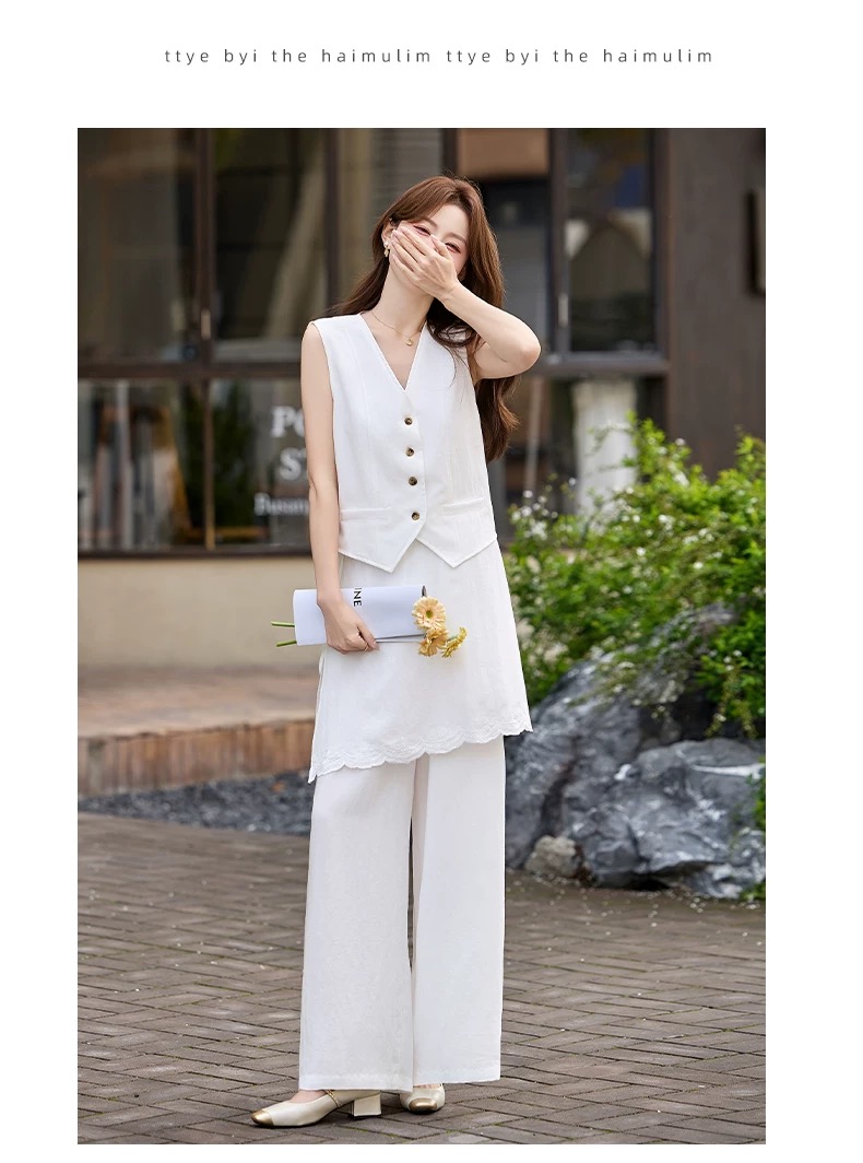 RY2921# 法式高级感白色马甲阔腿裤套装女2026夏季新款老钱风显瘦三件套