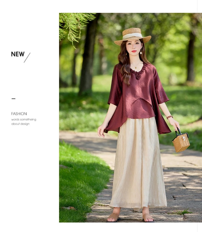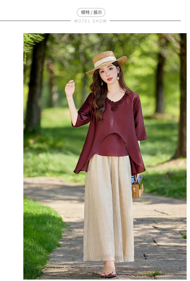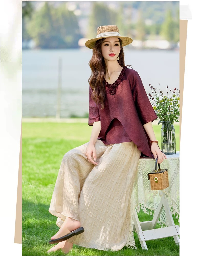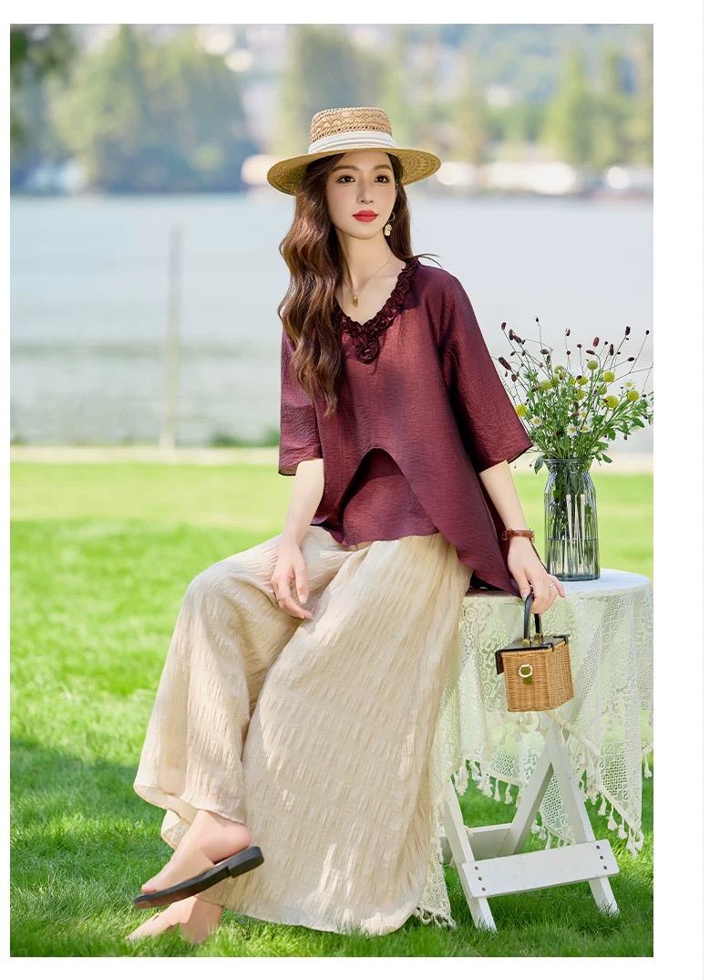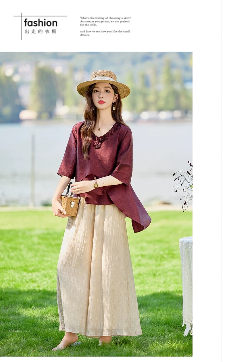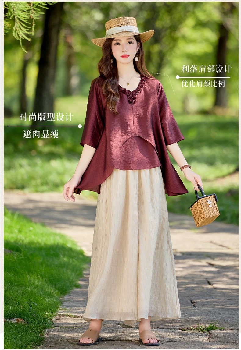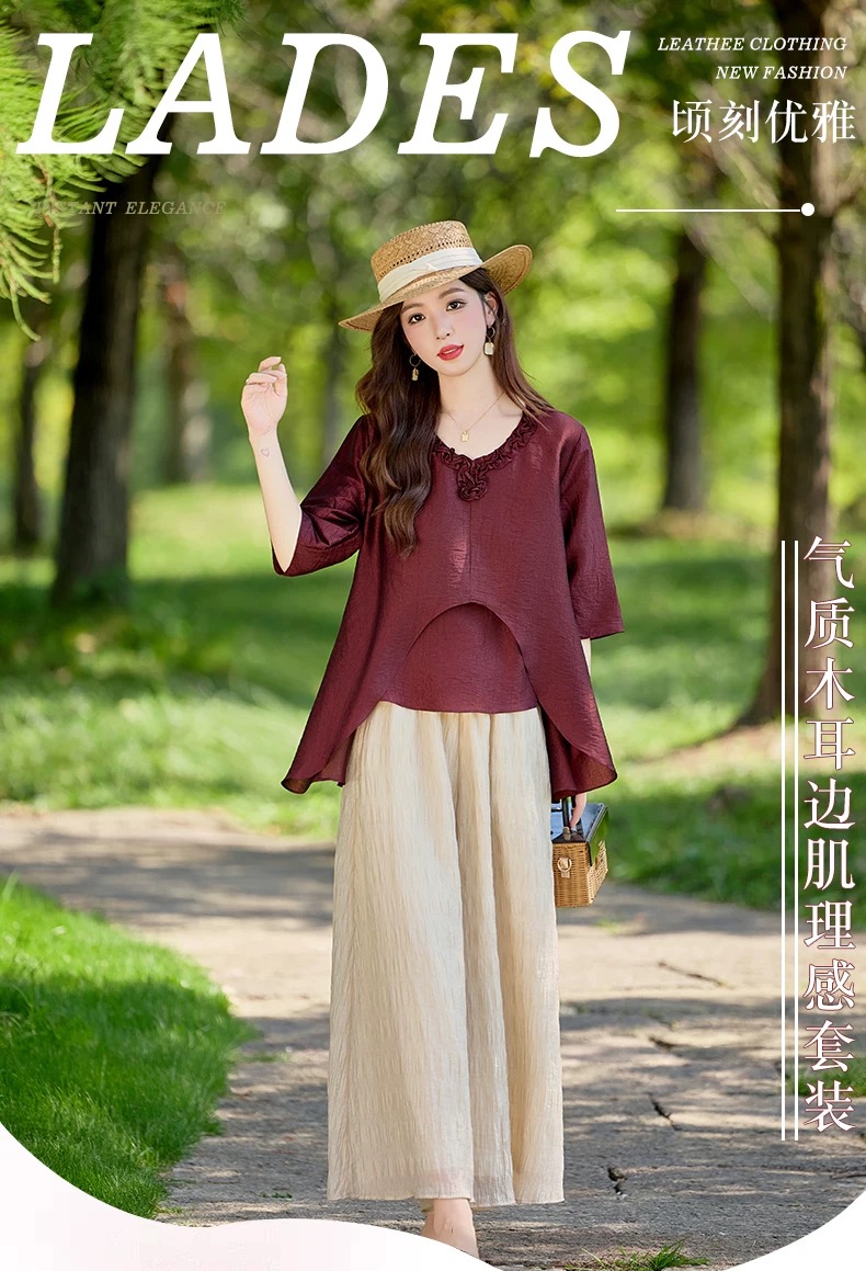 RY2924# 慵懒风穿搭套装女春夏2026新款宽松遮肉显瘦复古上衣阔腿裤两件套