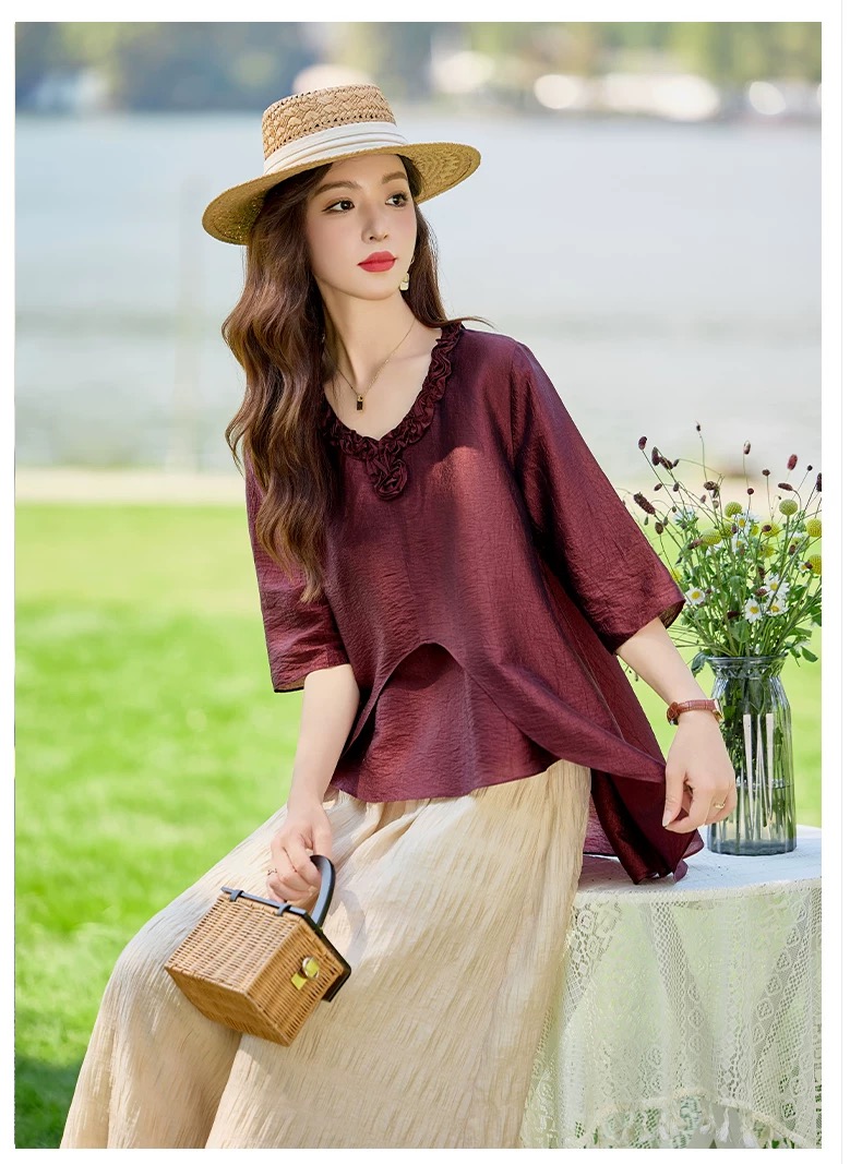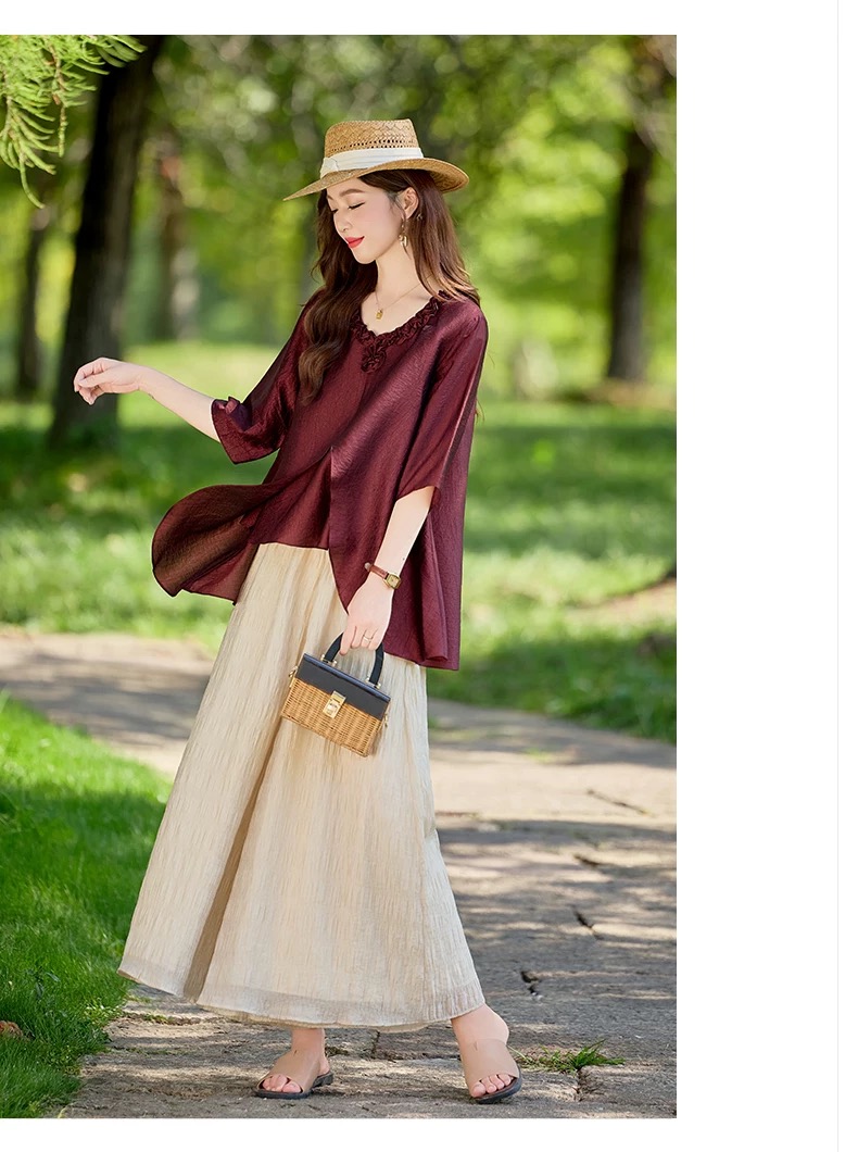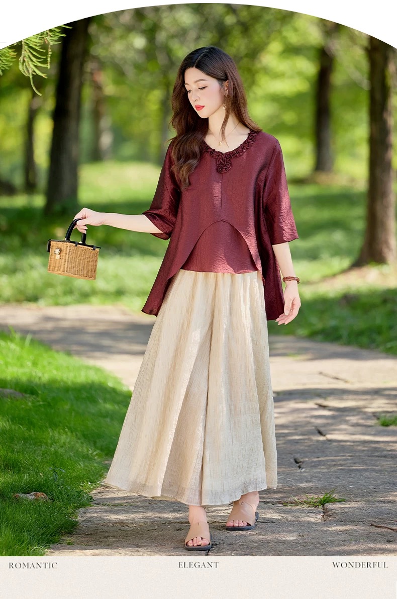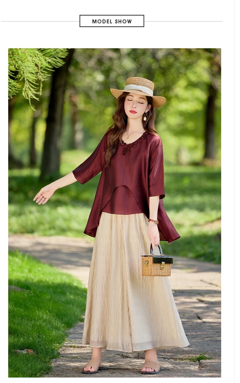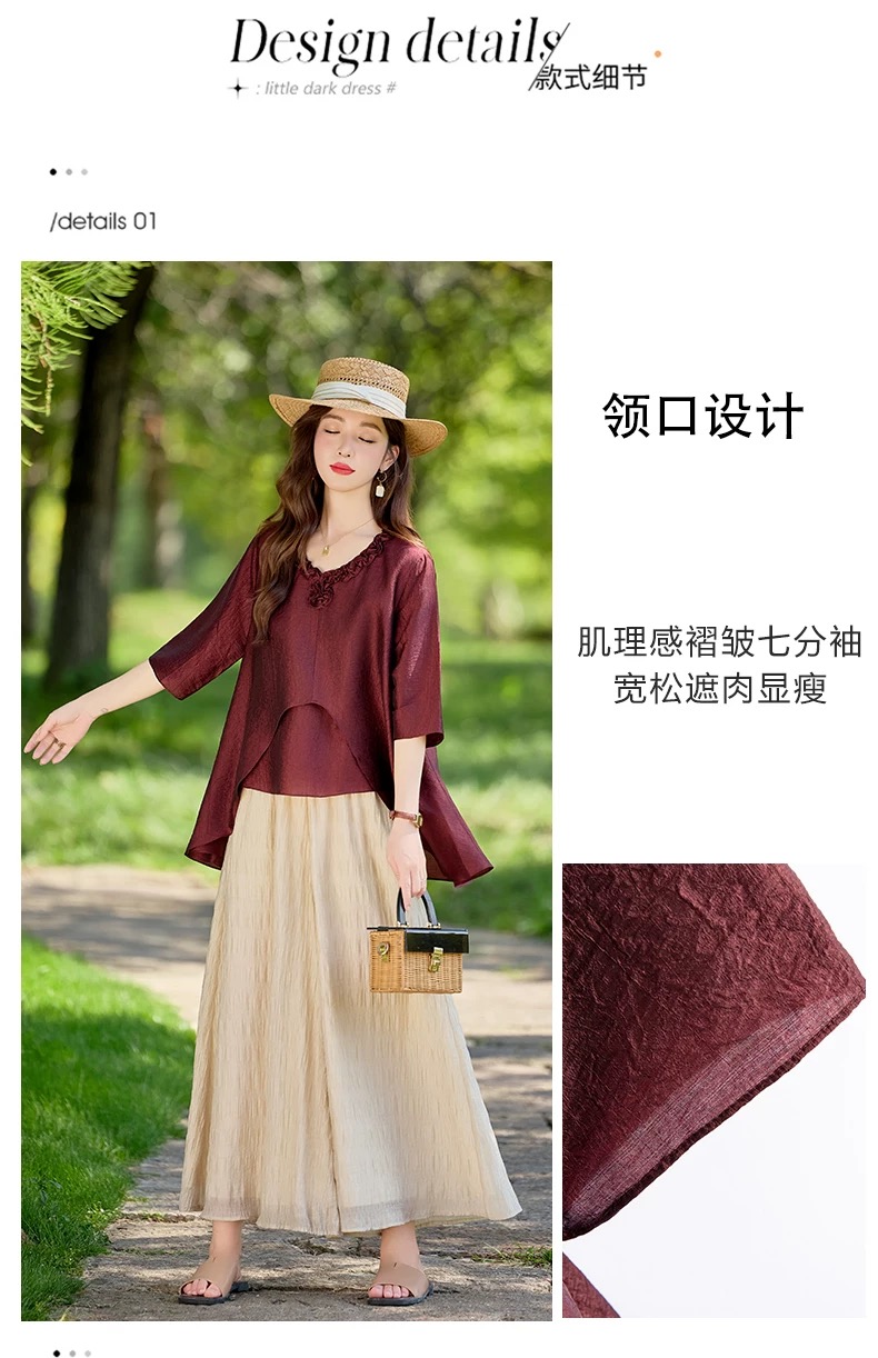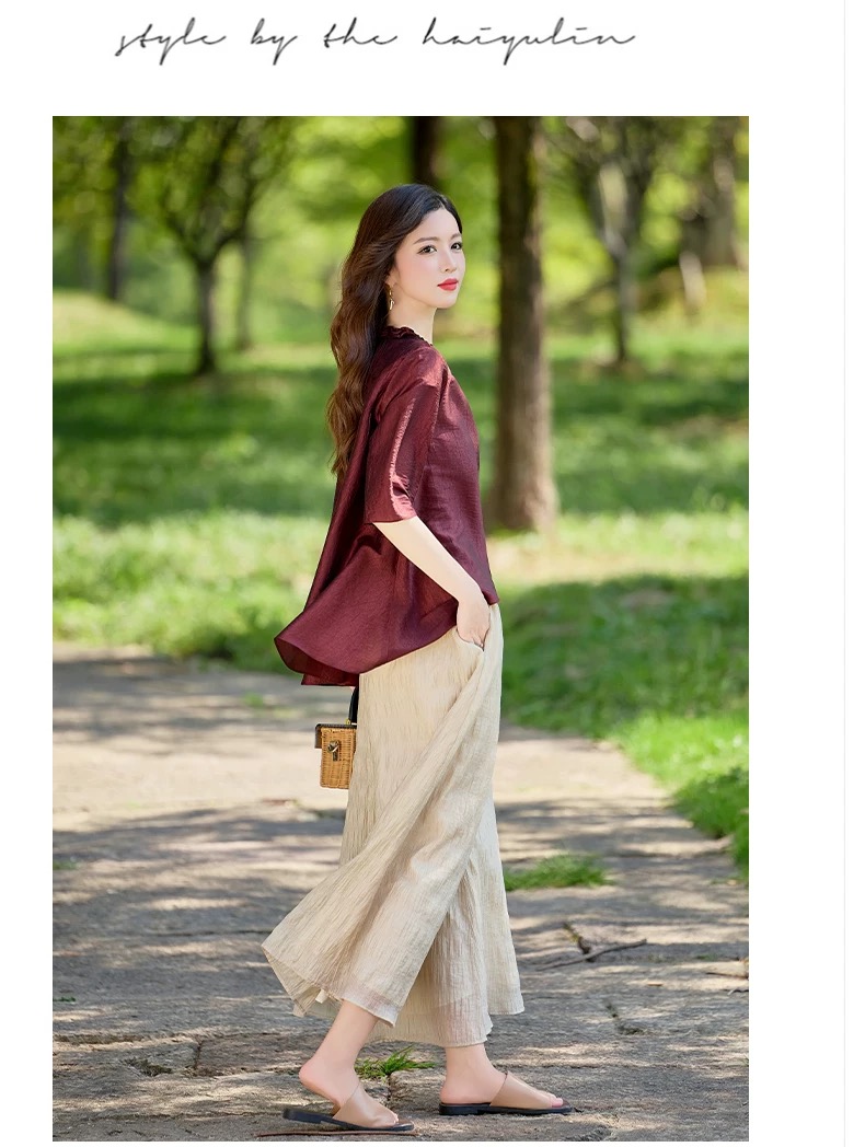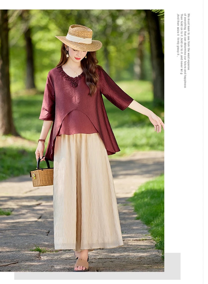 RY2924# 慵懒风穿搭套装女春夏2026新款宽松遮肉显瘦复古上衣阔腿裤两件套