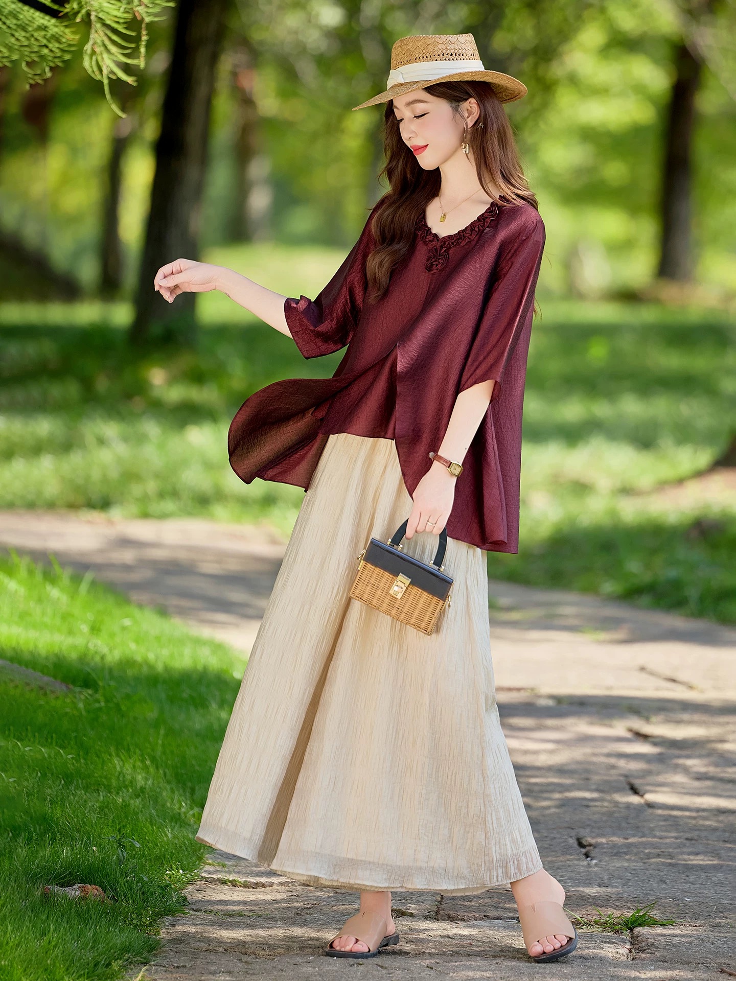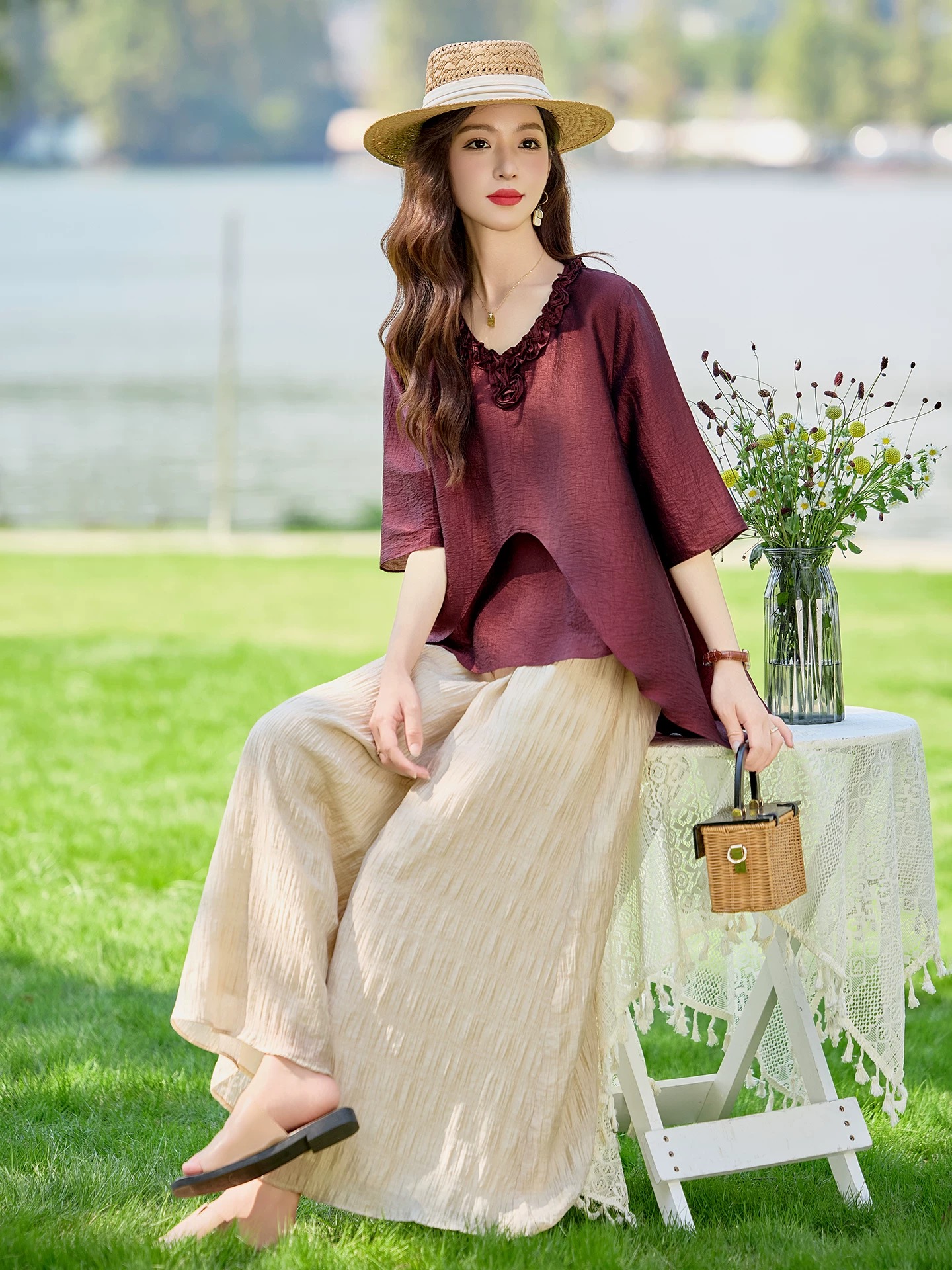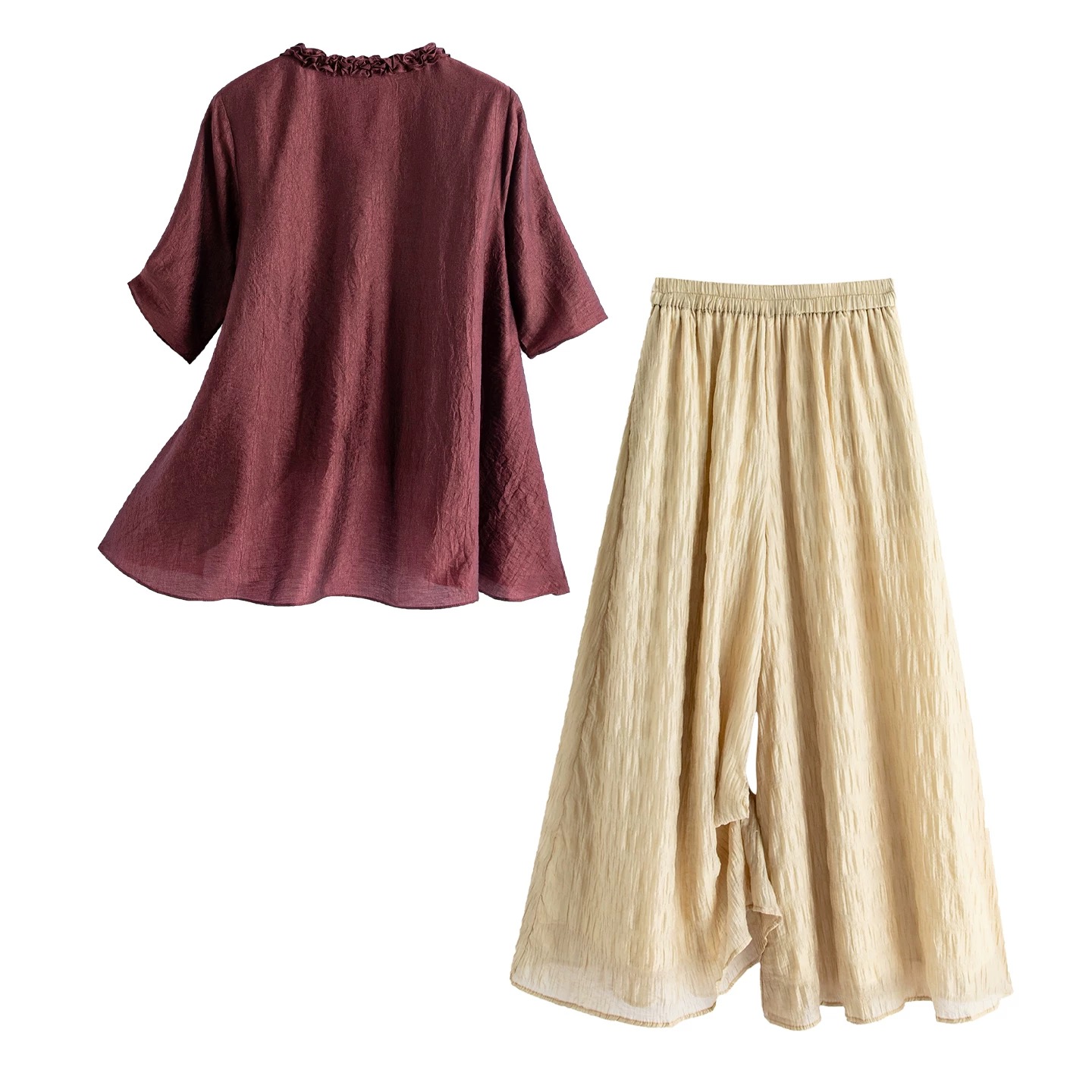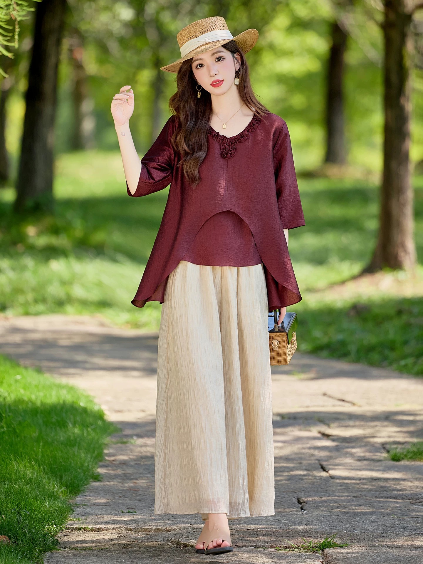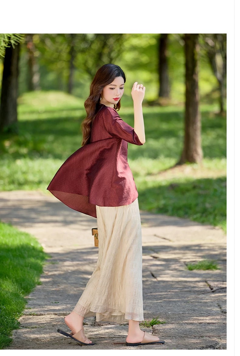 RY2924# 慵懒风穿搭套装女春夏2026新款宽松遮肉显瘦复古上衣阔腿裤两件套