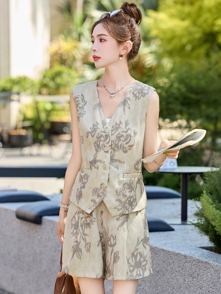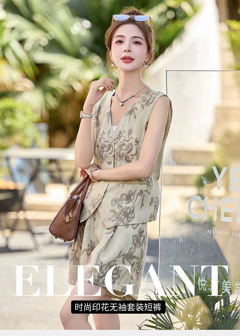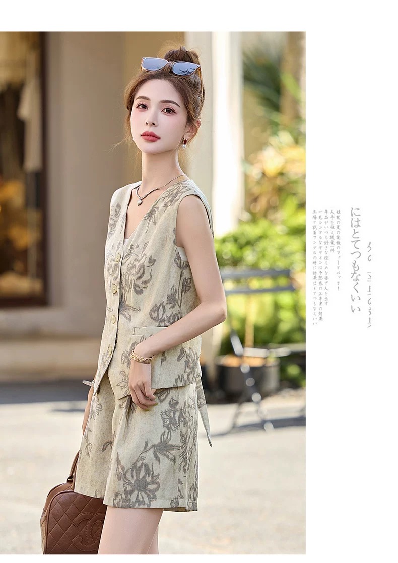 RY2925# 休闲时尚夏季短裤棉麻套装女2026年新款女装洋气两件套穿搭一整套