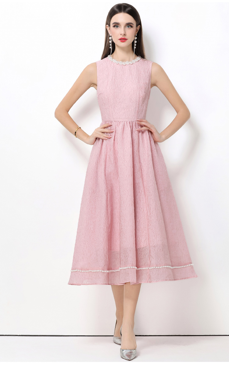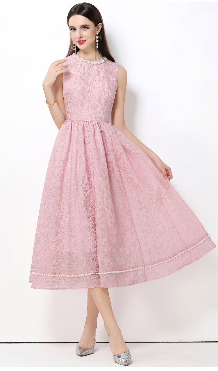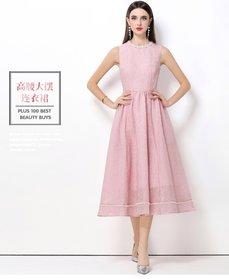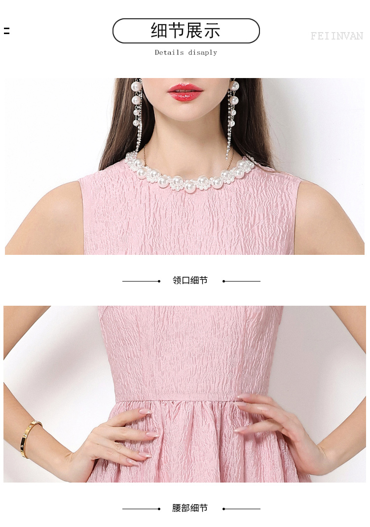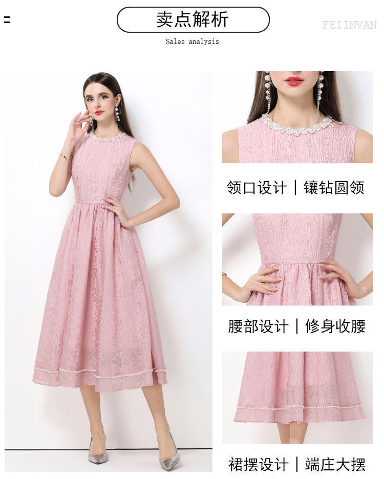 RY2934# 实拍法式复古大气优雅高级感钉珠无袖修身显瘦连衣裙