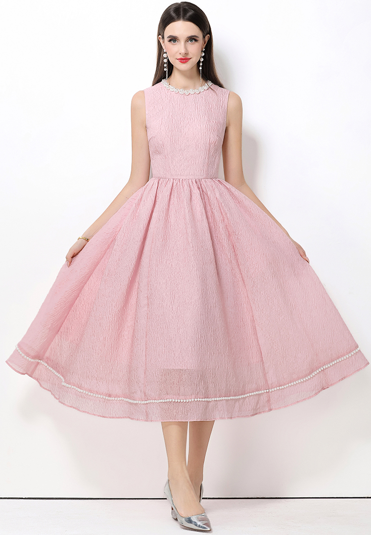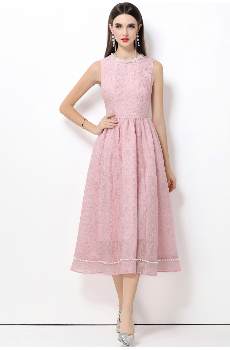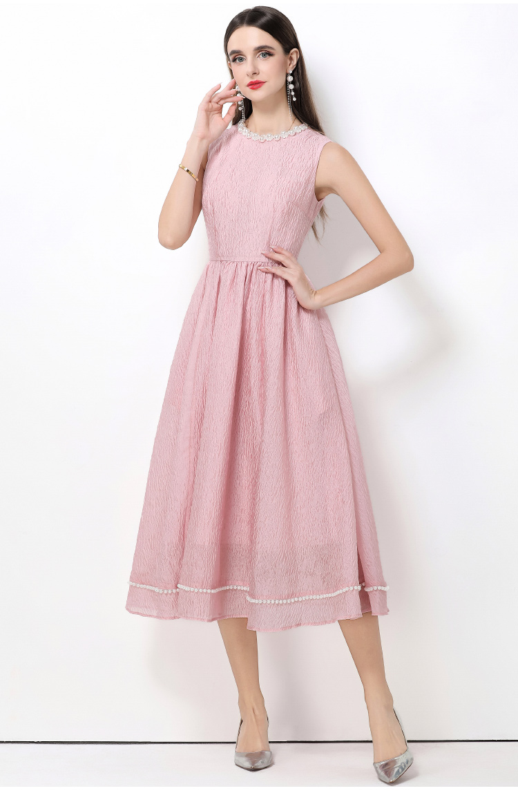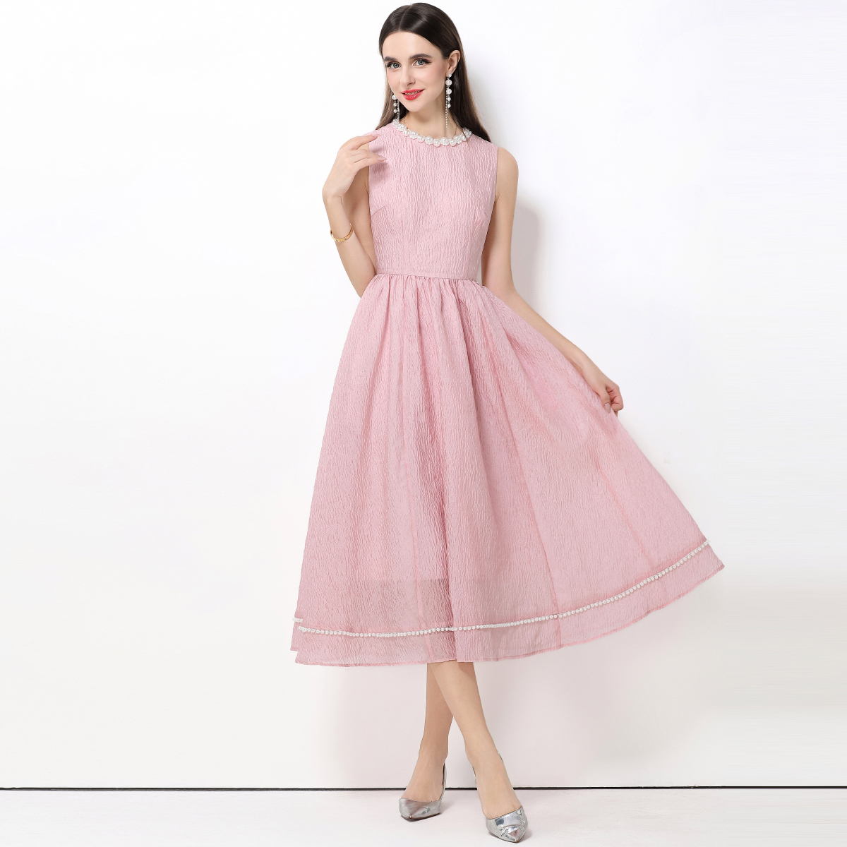 RY2934# 实拍法式复古大气优雅高级感钉珠无袖修身显瘦连衣裙