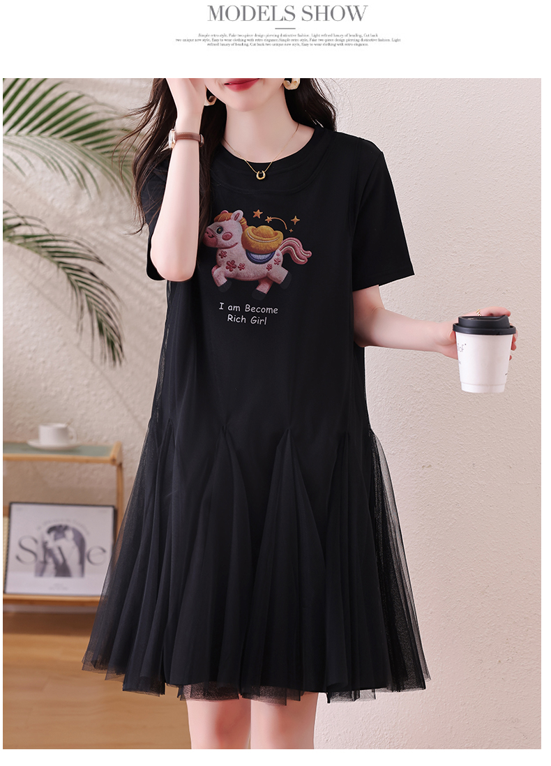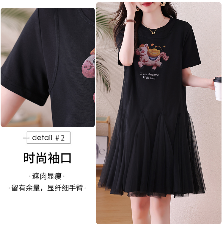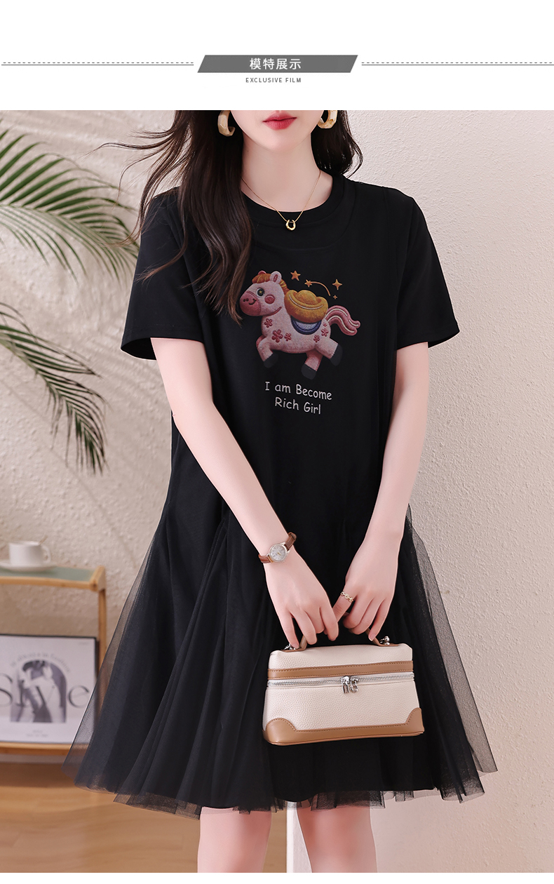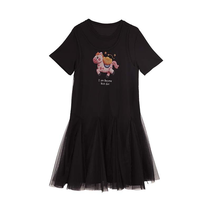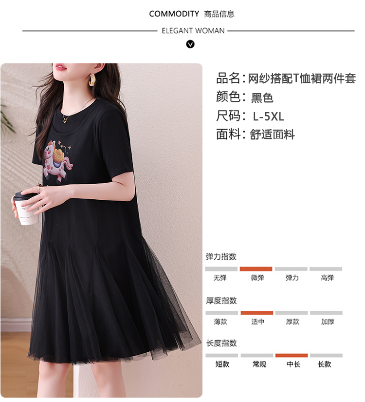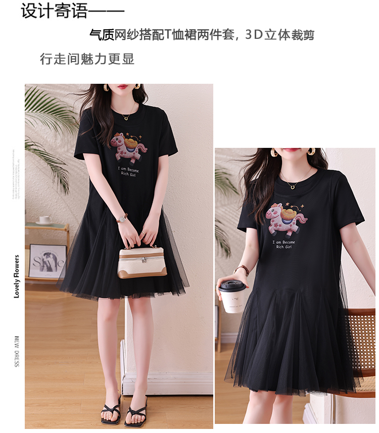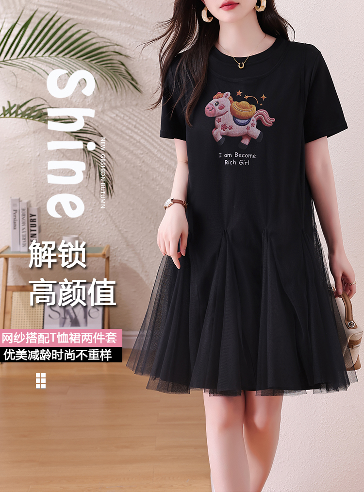 RY2941# 时尚卡通印花网纱裙加T恤裙两件套连衣裙2026夏新款减龄大码女装