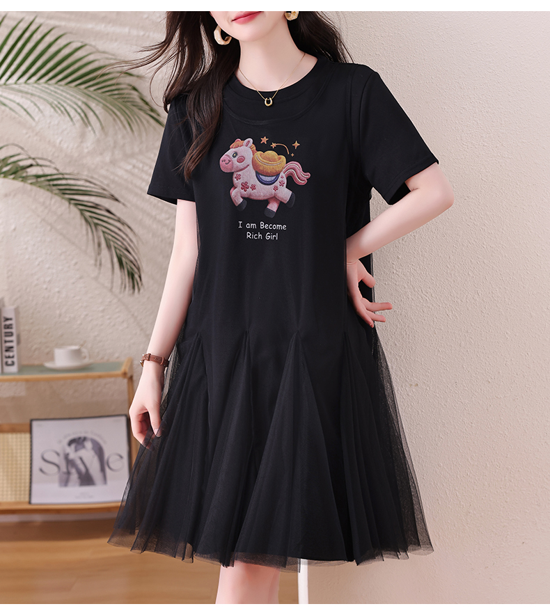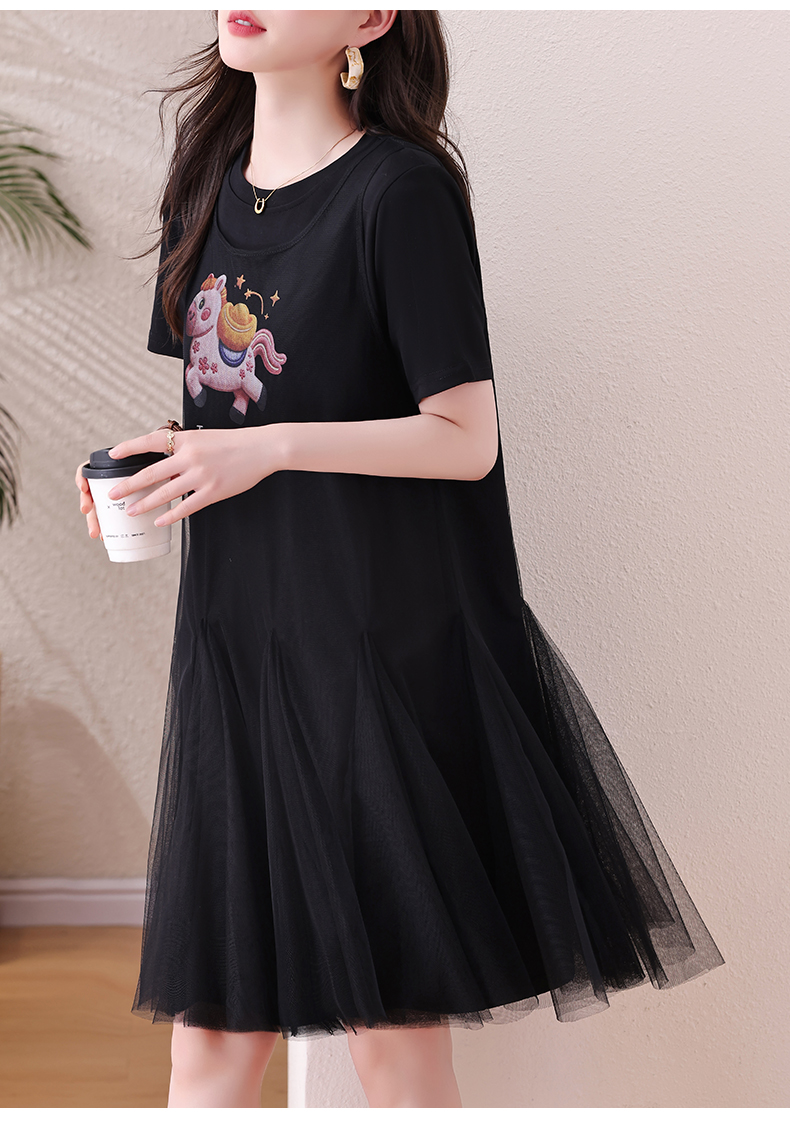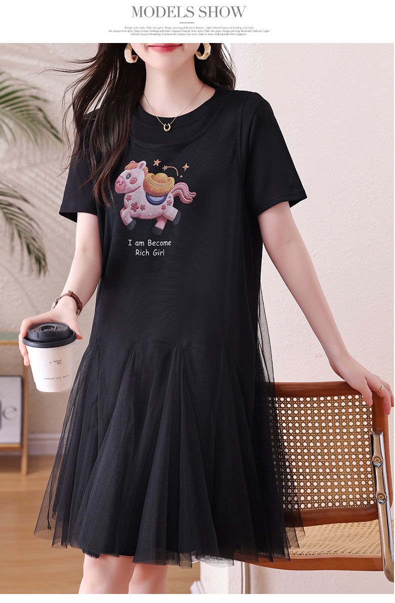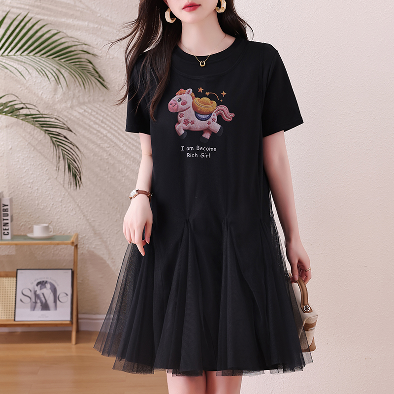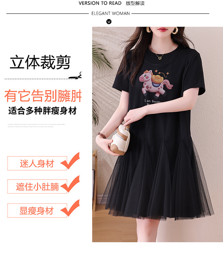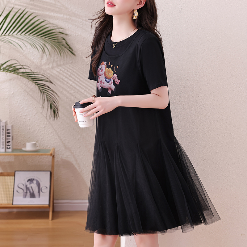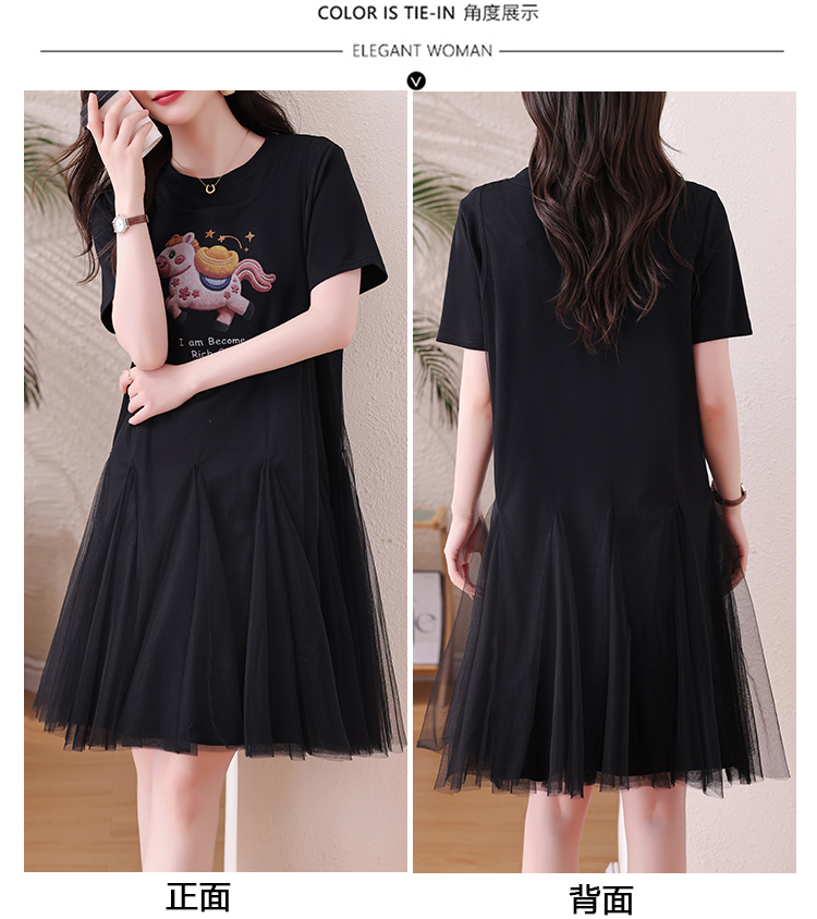 RY2941# 时尚卡通印花网纱裙加T恤裙两件套连衣裙2026夏新款减龄大码女装