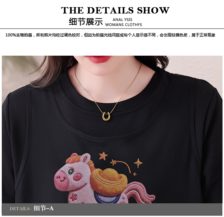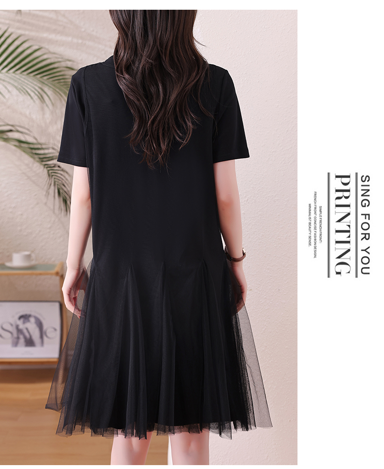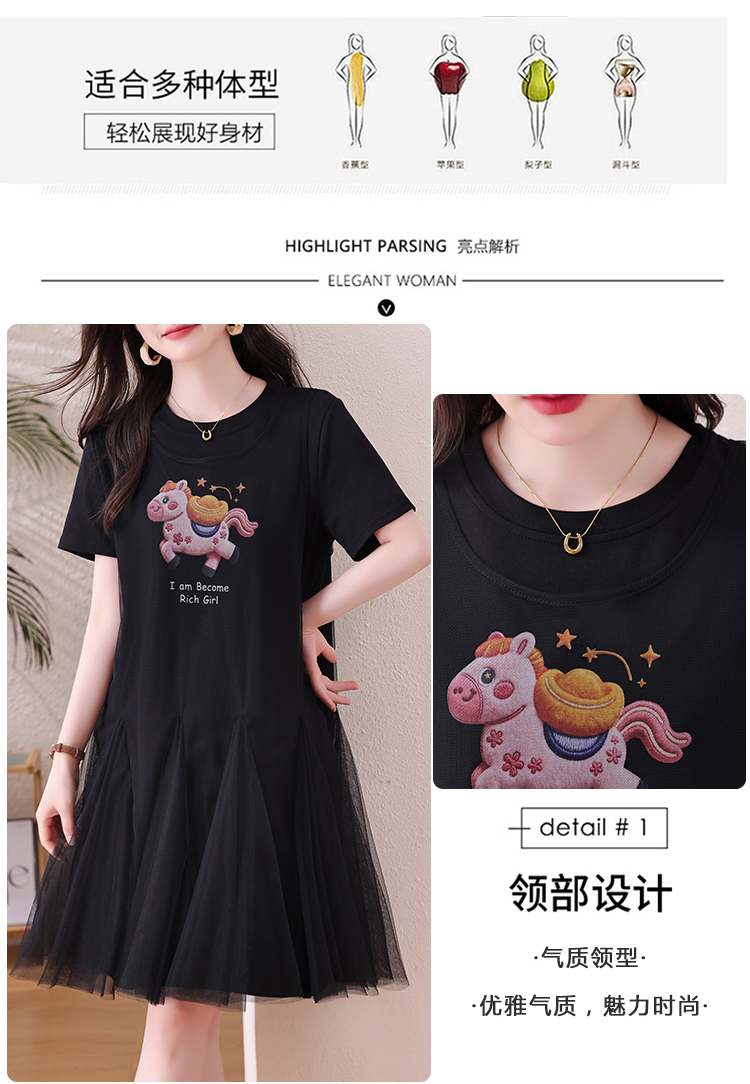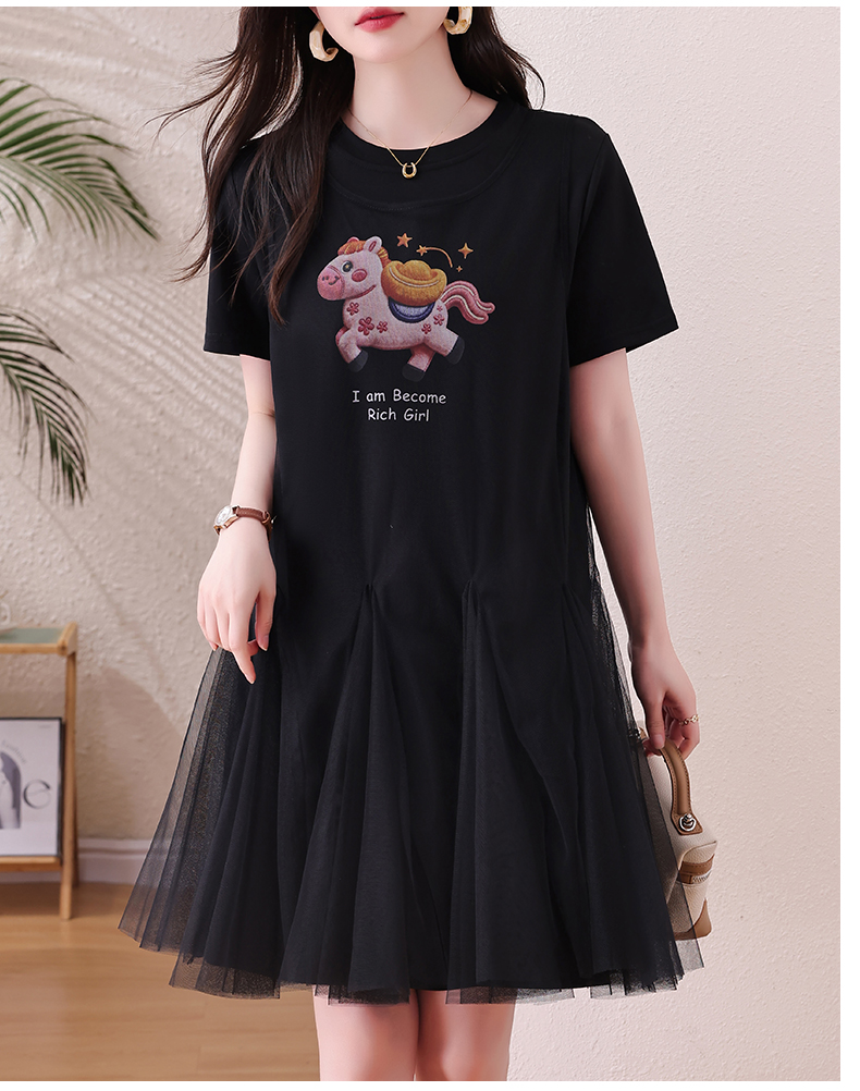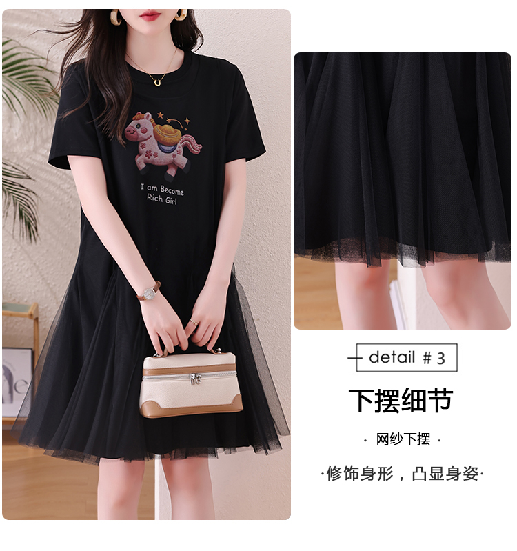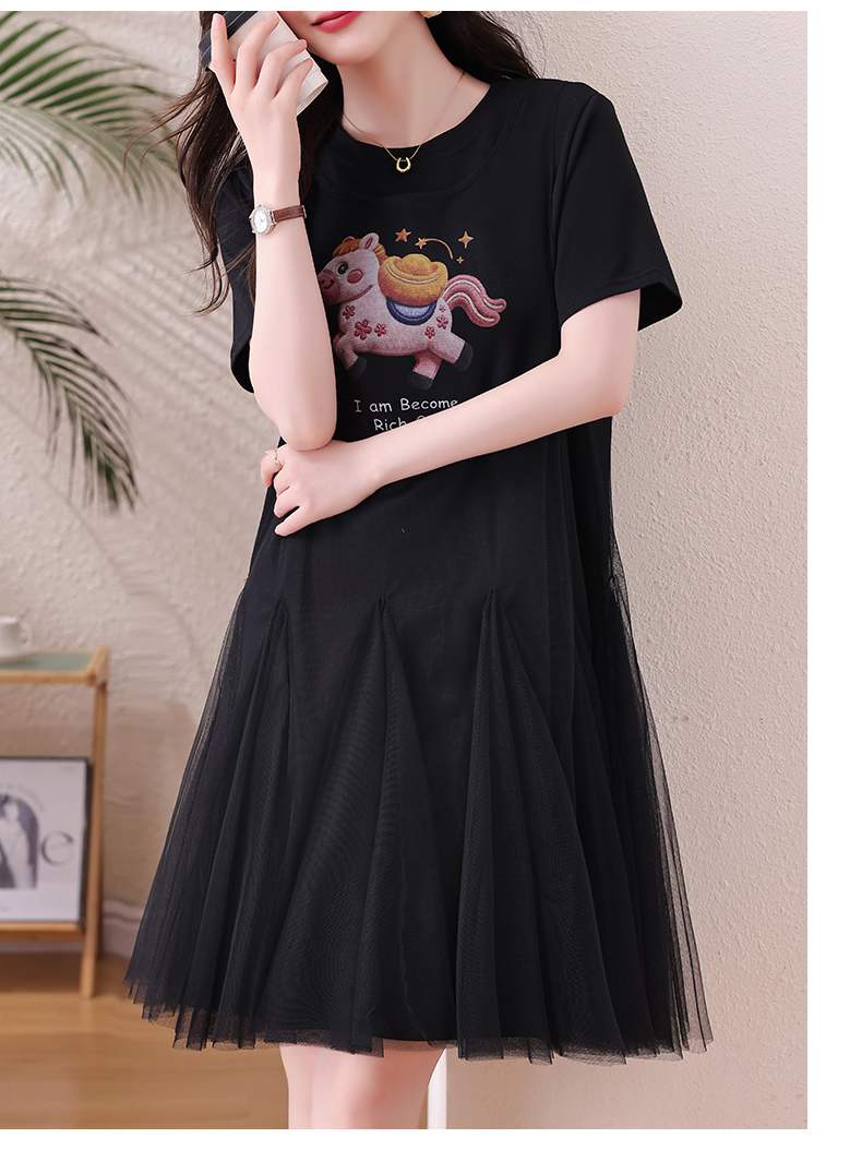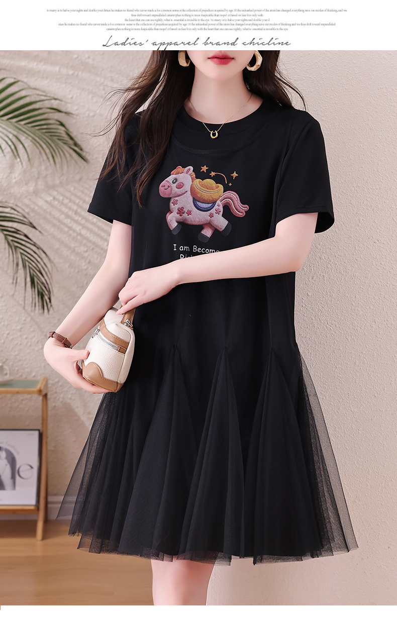 RY2941# 时尚卡通印花网纱裙加T恤裙两件套连衣裙2026夏新款减龄大码女装