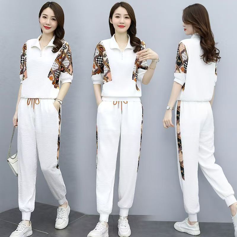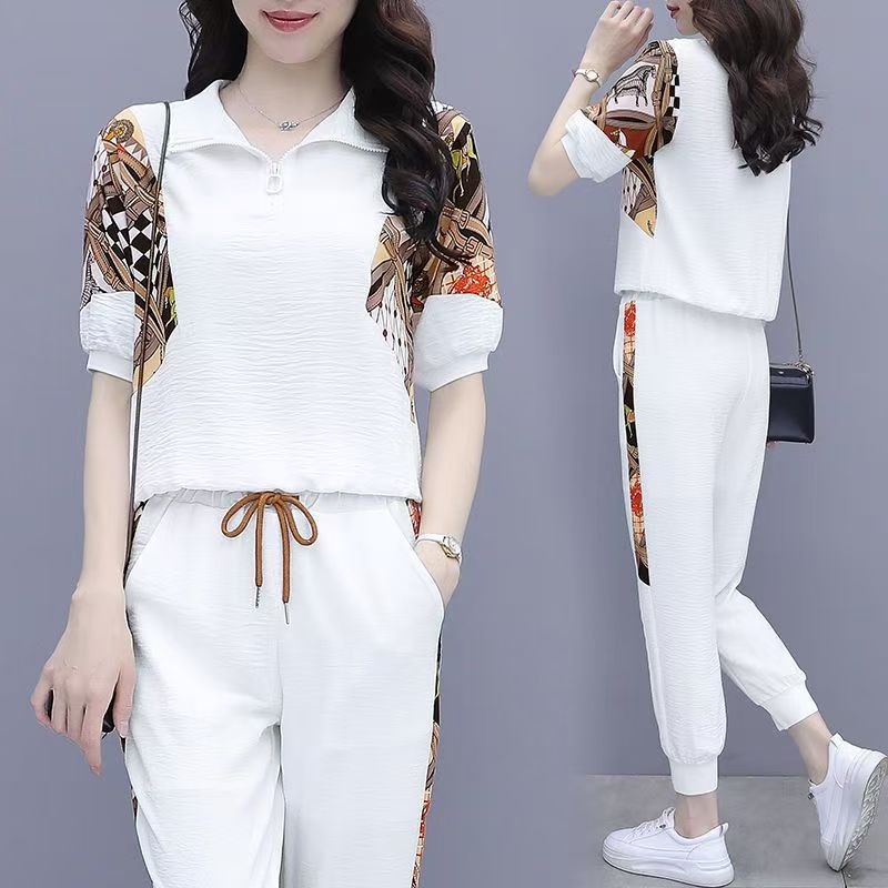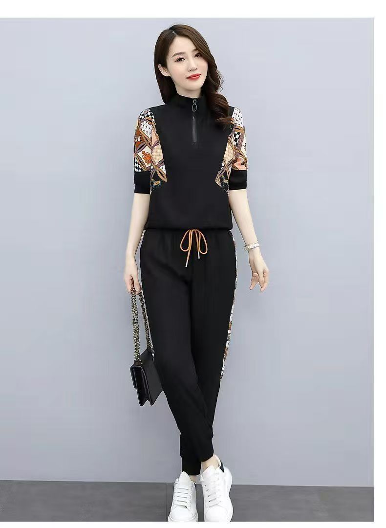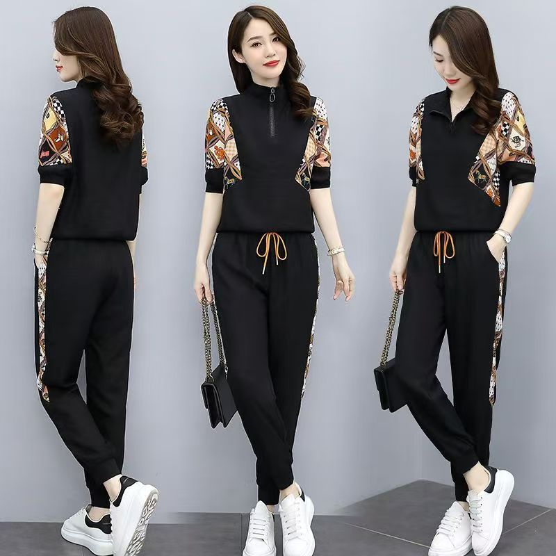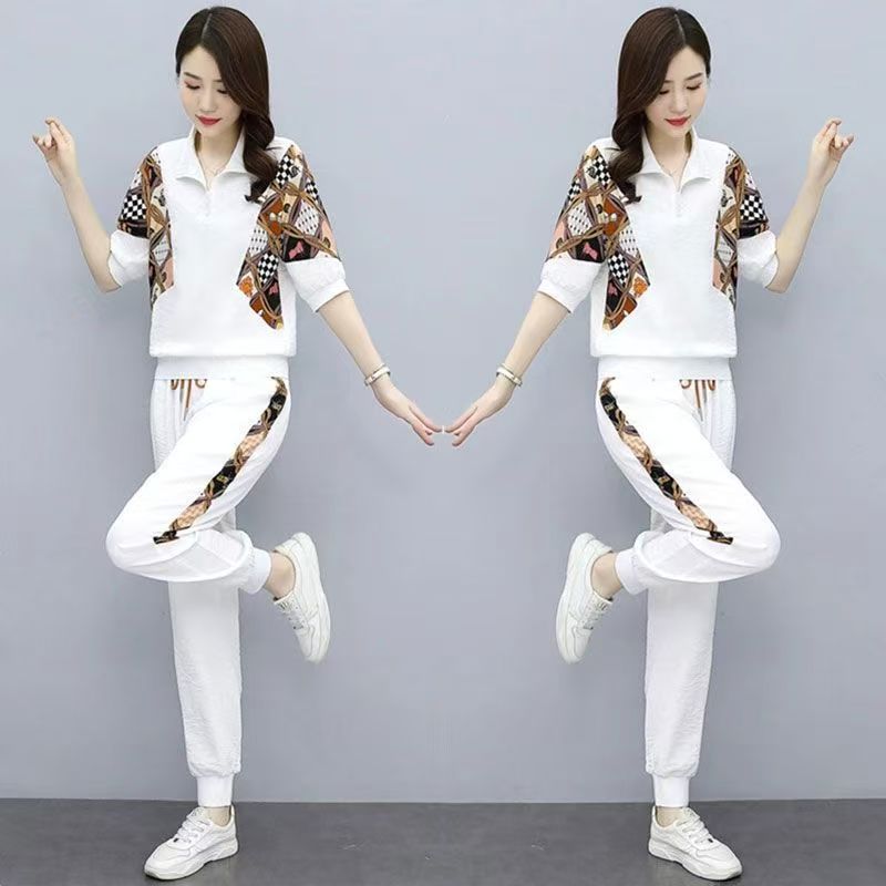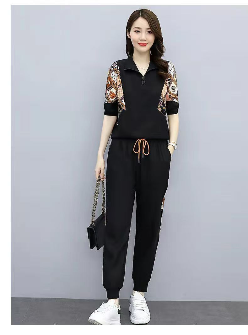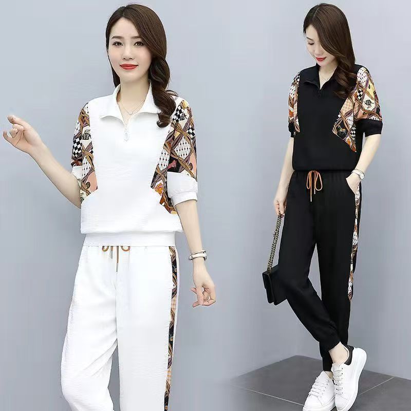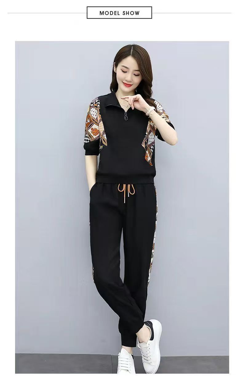 RY2954# 冰丝运动服套装女夏季 2026新款时尚中袖显瘦减龄薄款休闲两件套