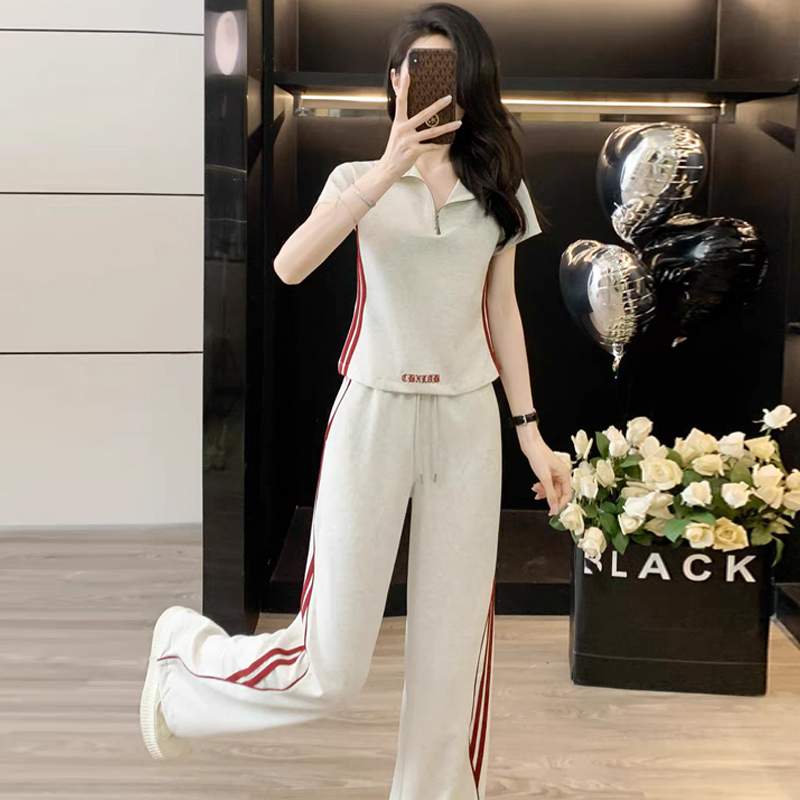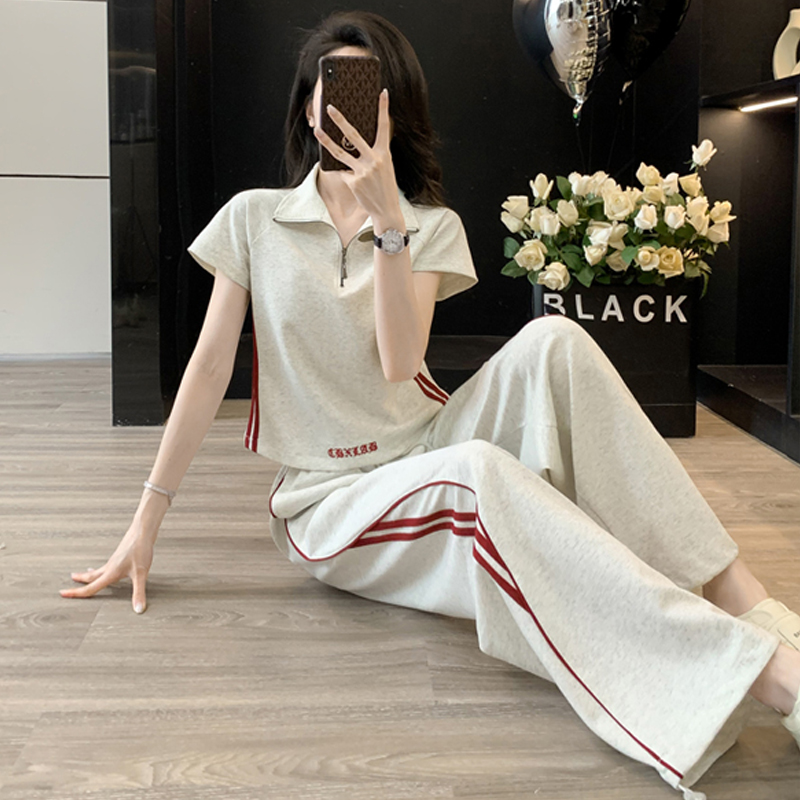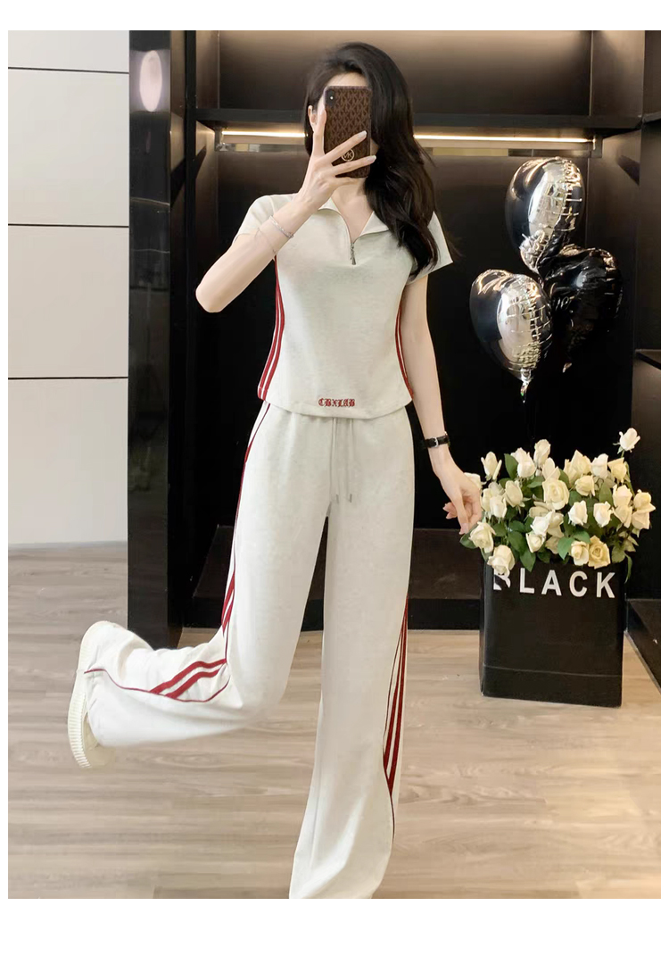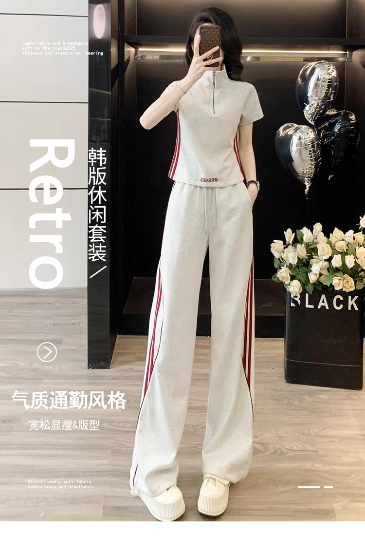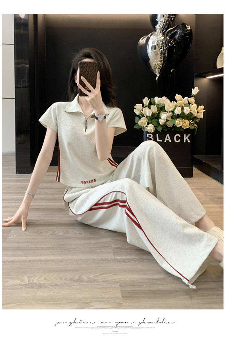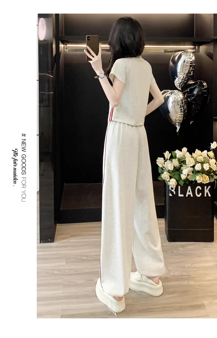 RY2958# 夏季穿搭套装2026新款韩系显瘦减龄运动休闲短袖阔腿裤两件套女