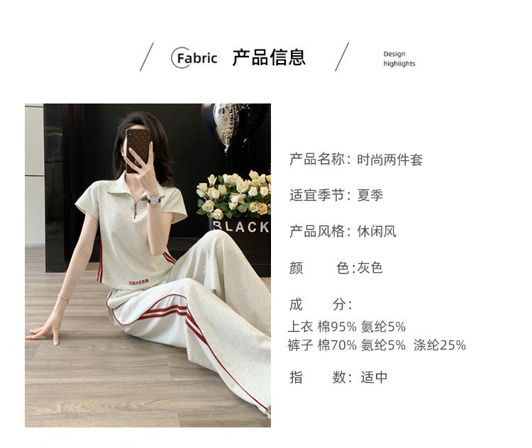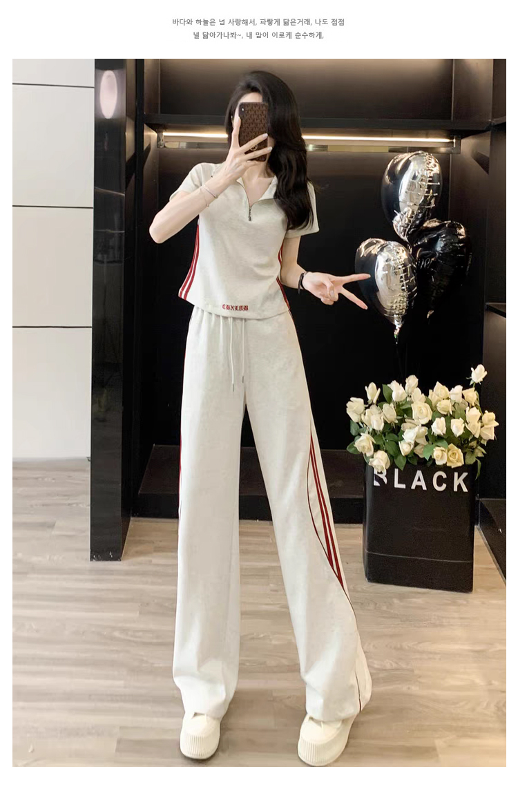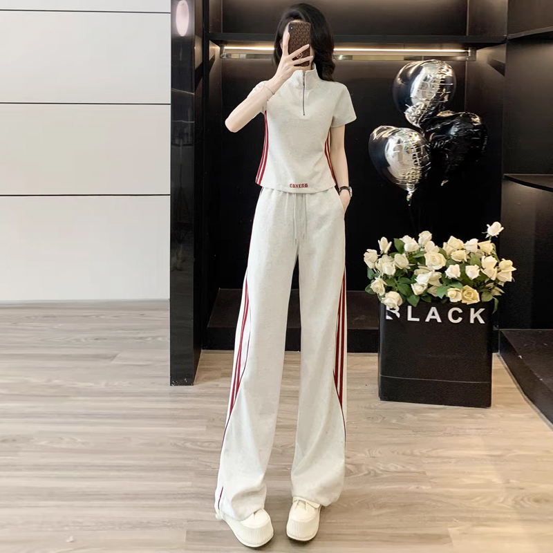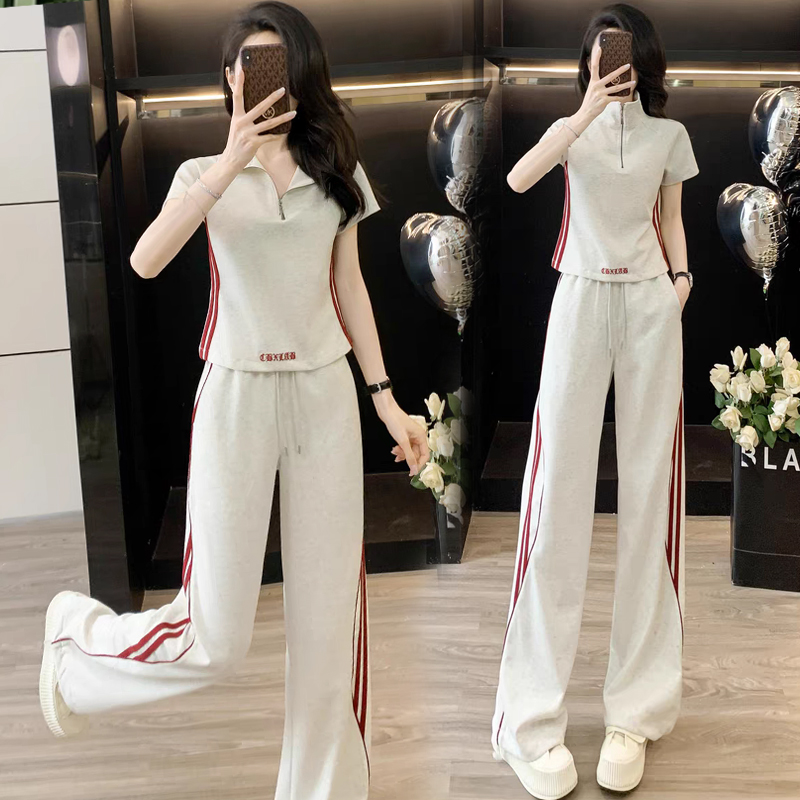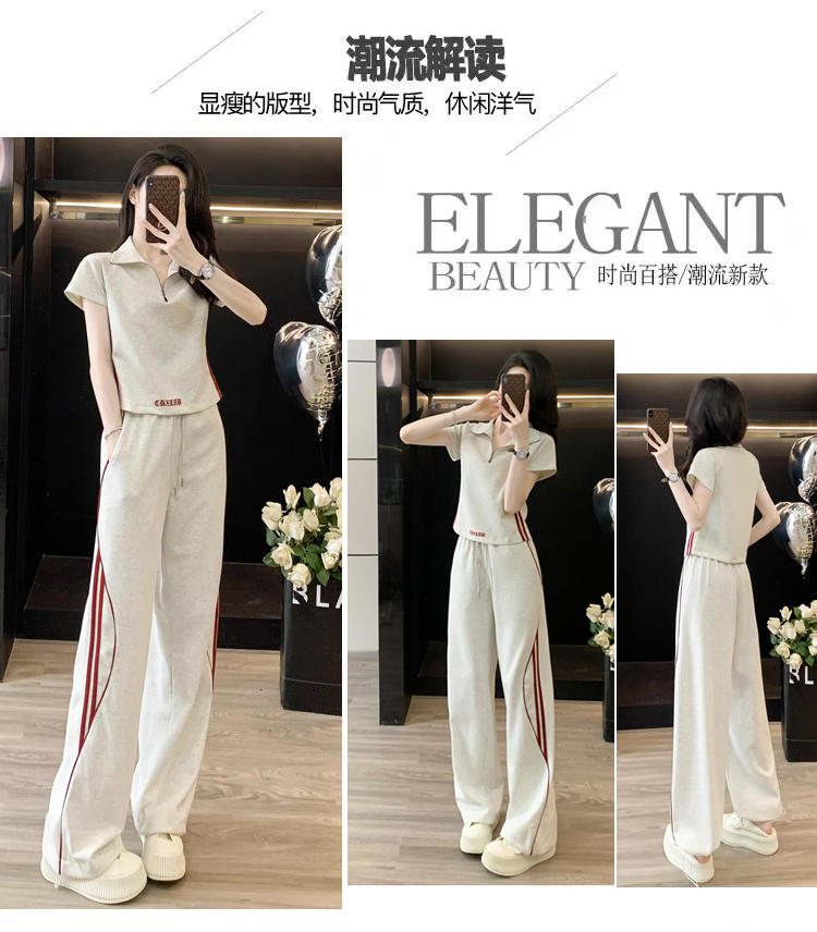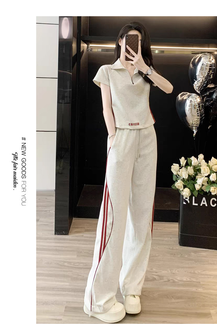 RY2958# 夏季穿搭套装2026新款韩系显瘦减龄运动休闲短袖阔腿裤两件套女
