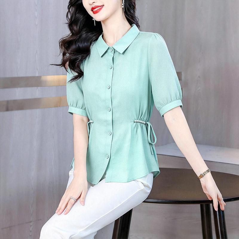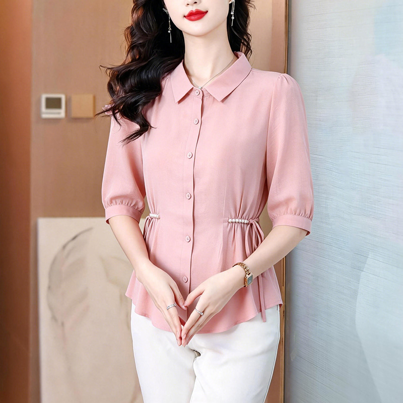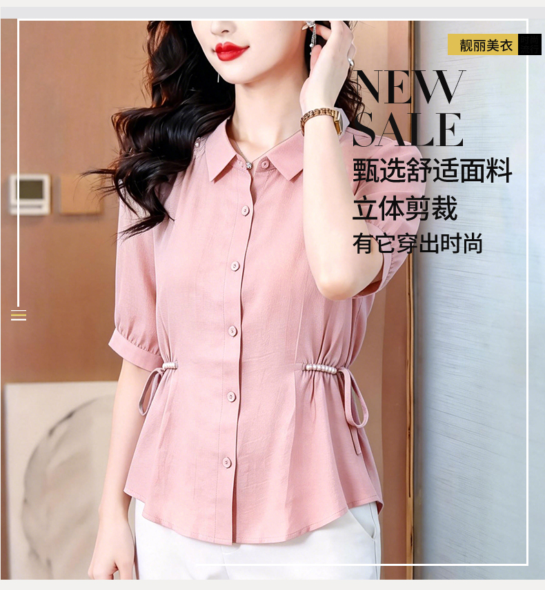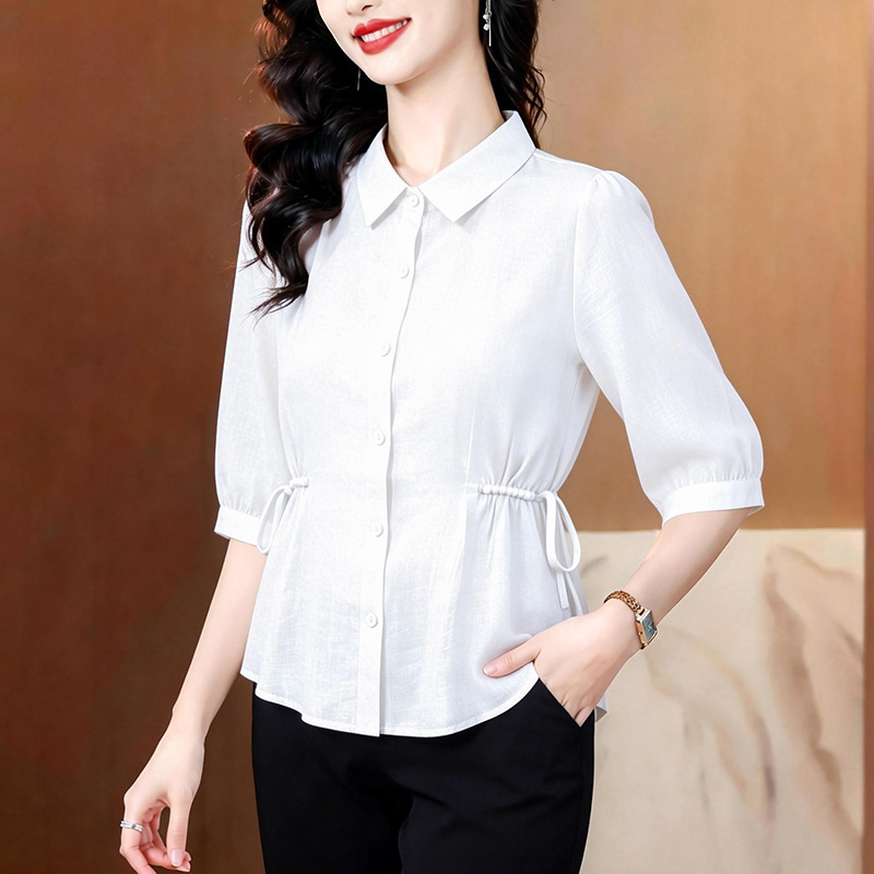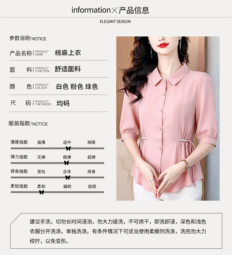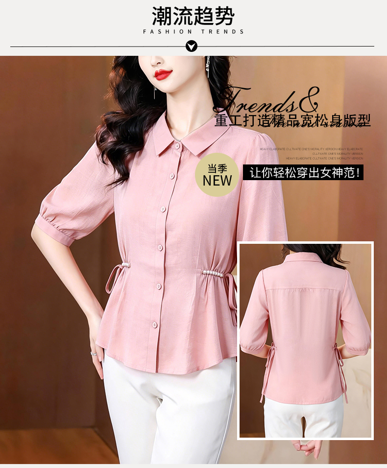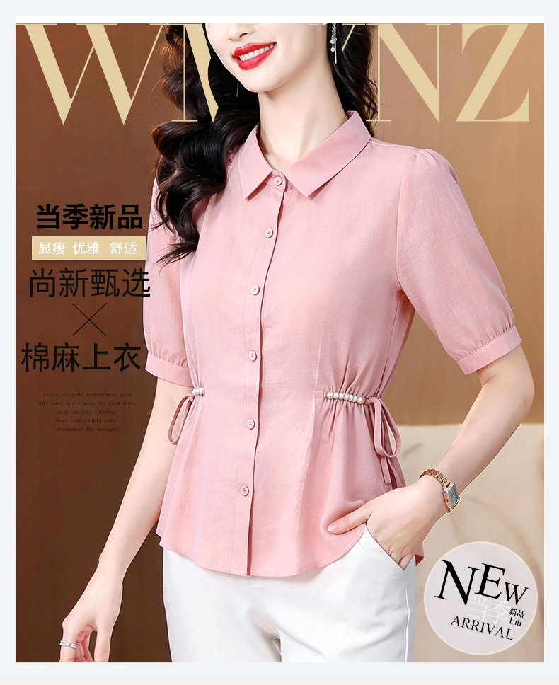 RY2982# 有货 2026夏季新款棉麻上衣衬衣小衫妈妈装宽松纯色舒适透气百搭