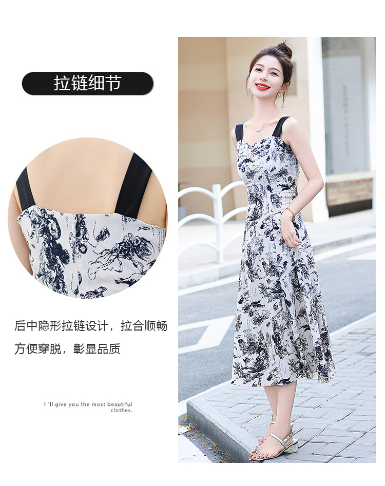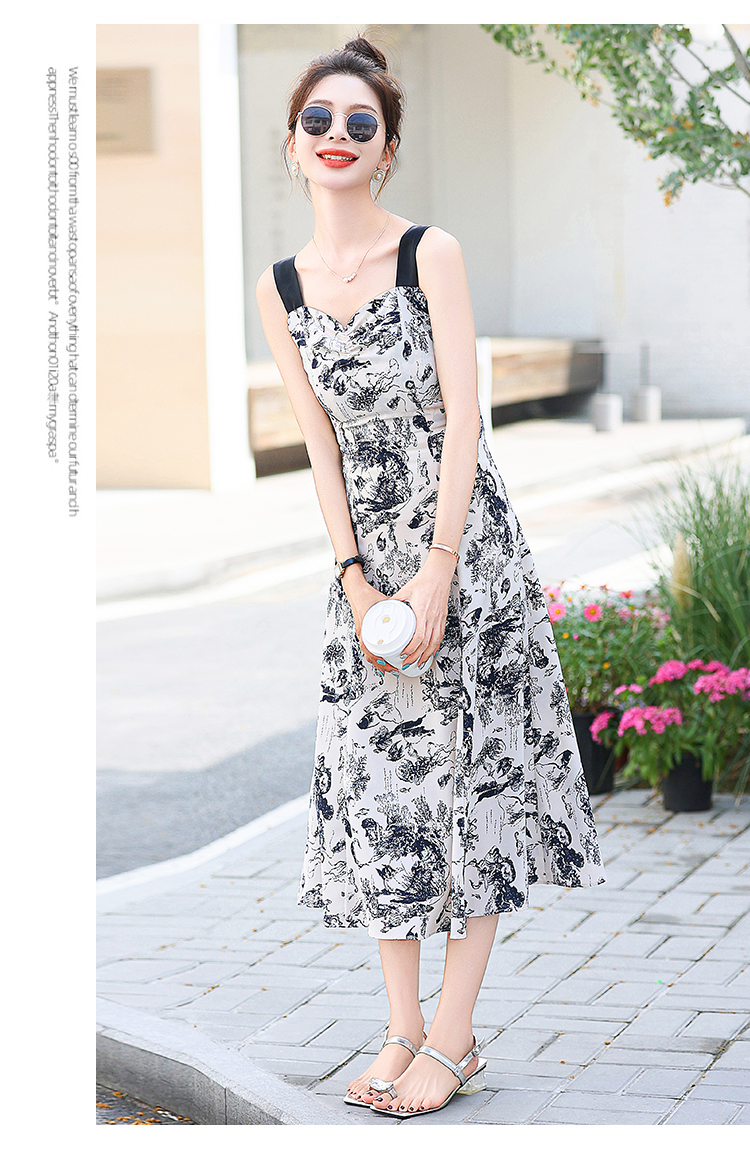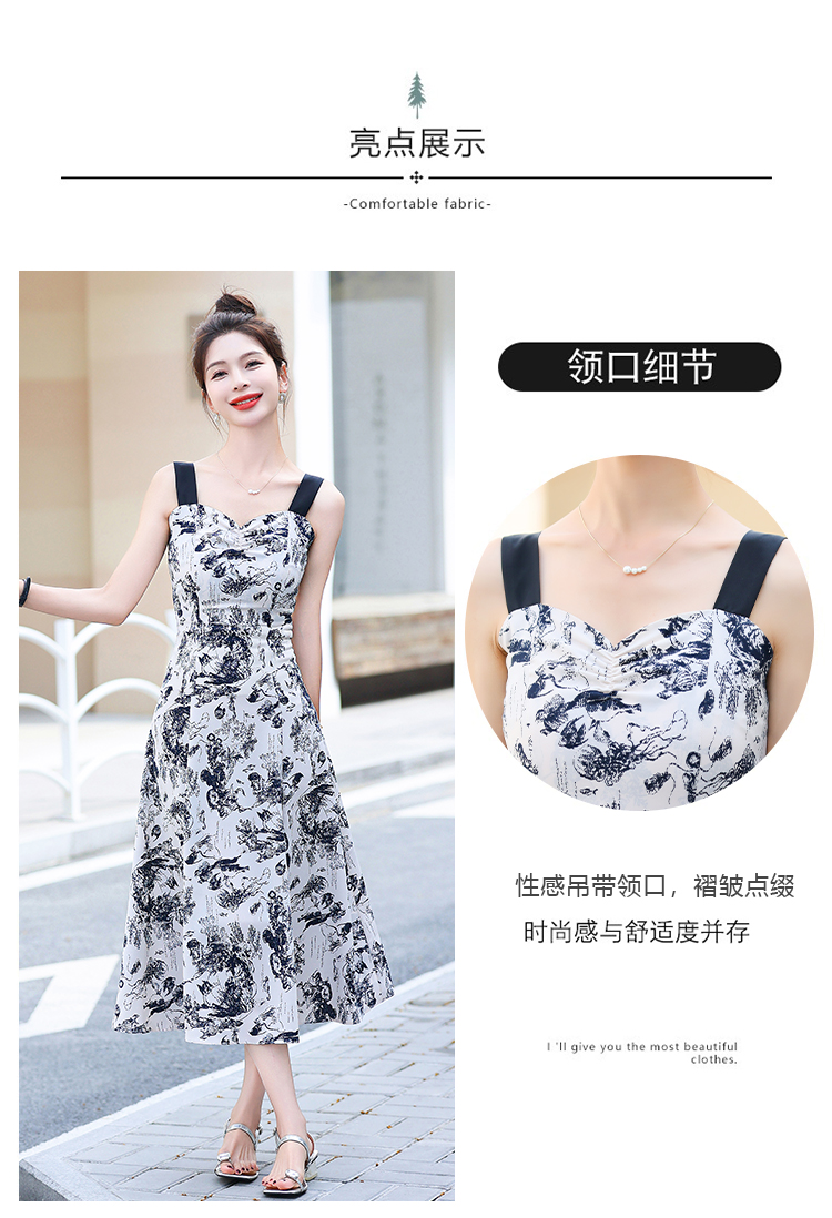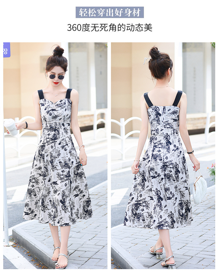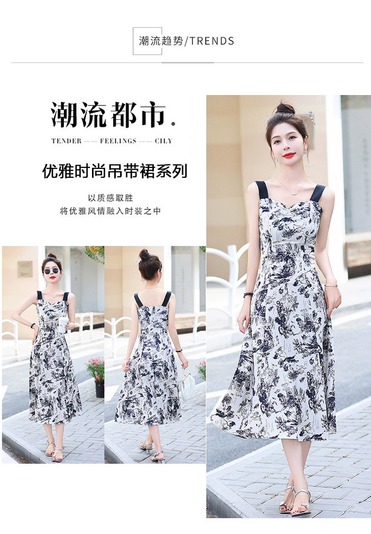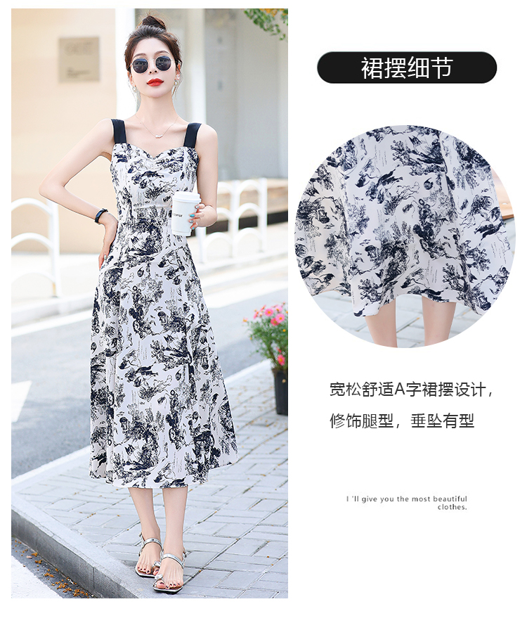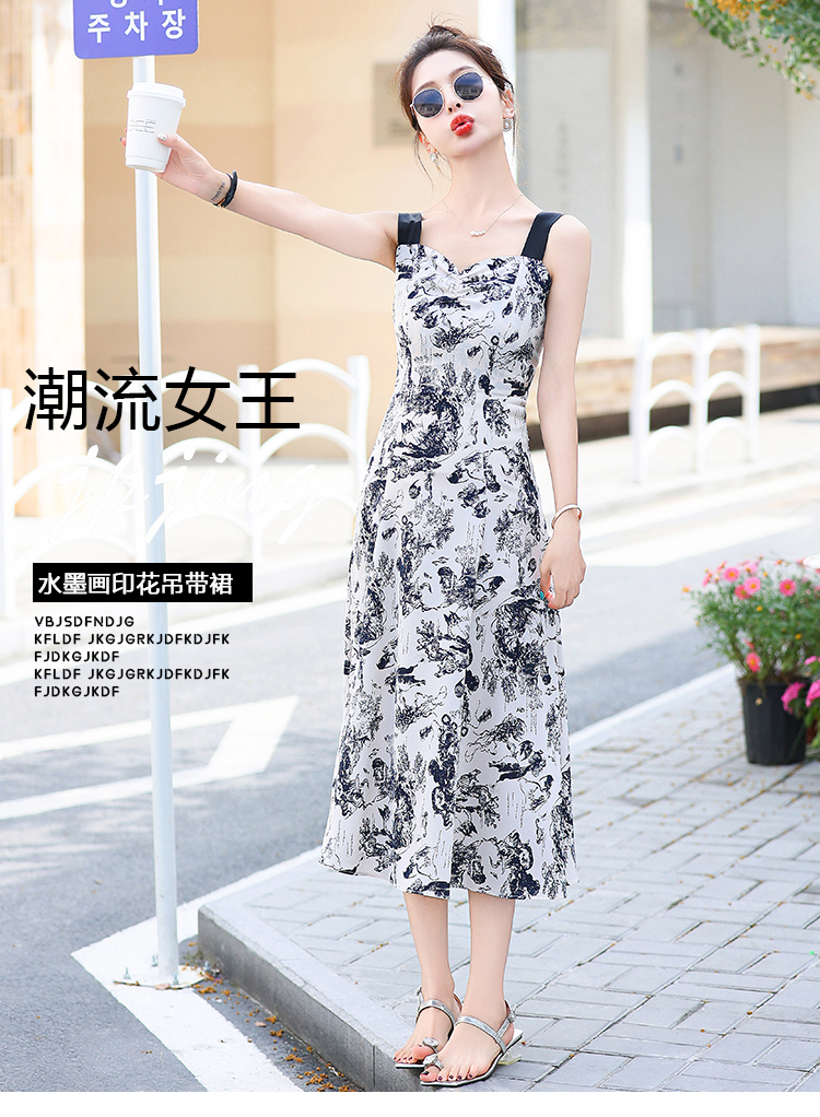 RY3007# 2026夏季新款修身显瘦吊带连衣裙水墨画国风时尚气质中长款吊带裙