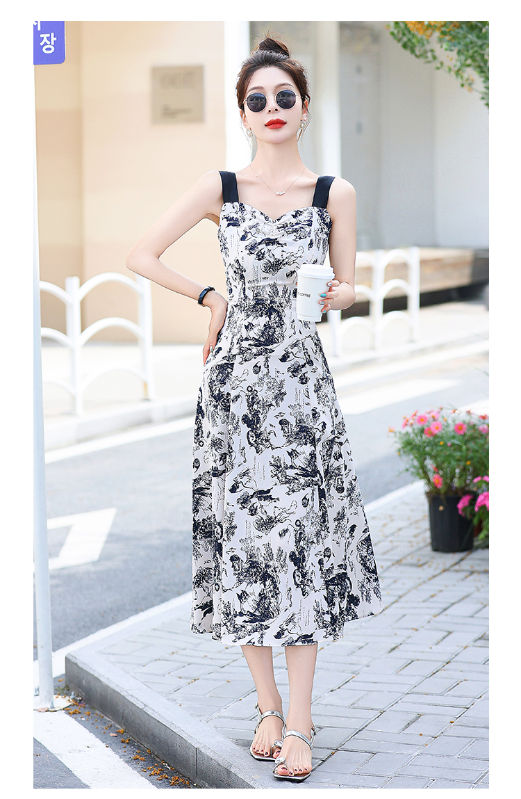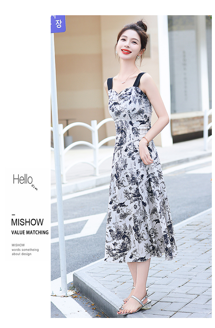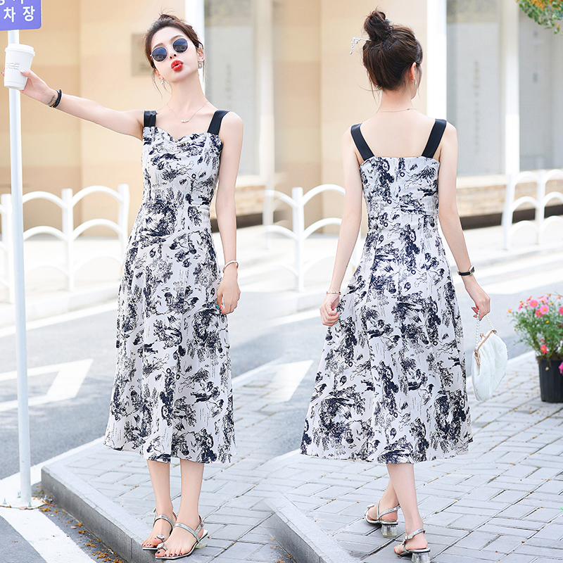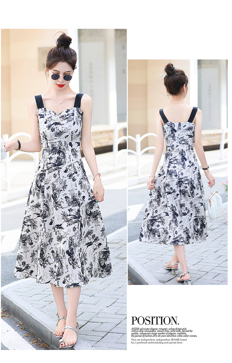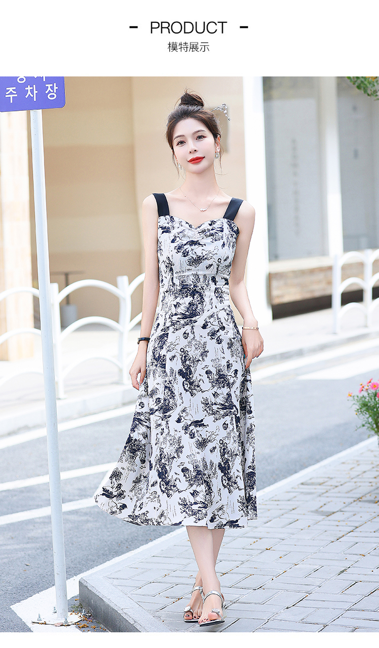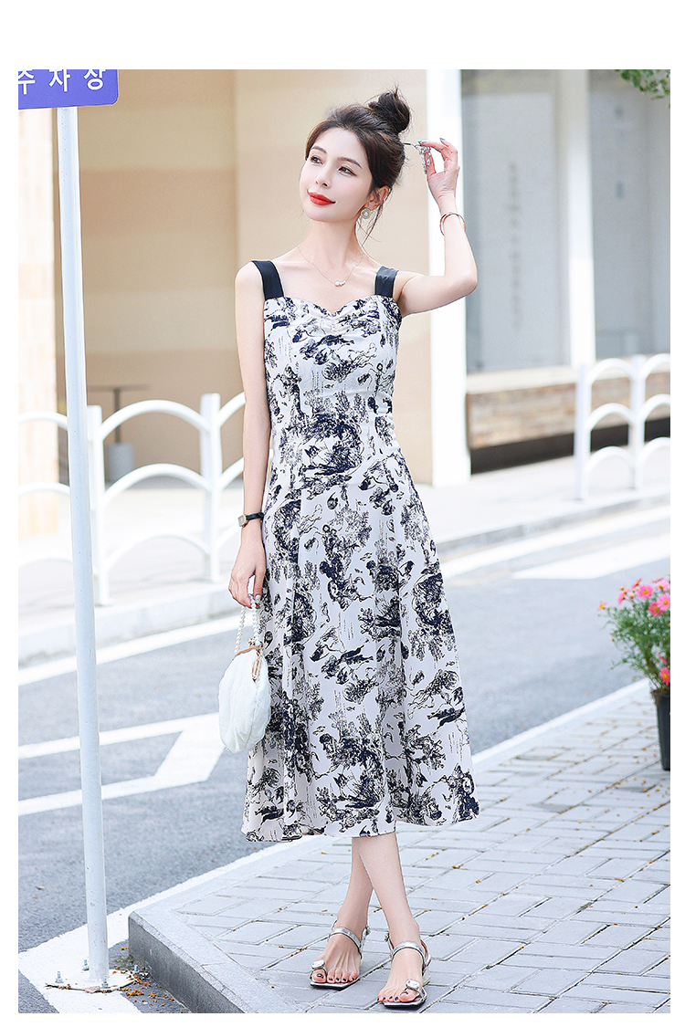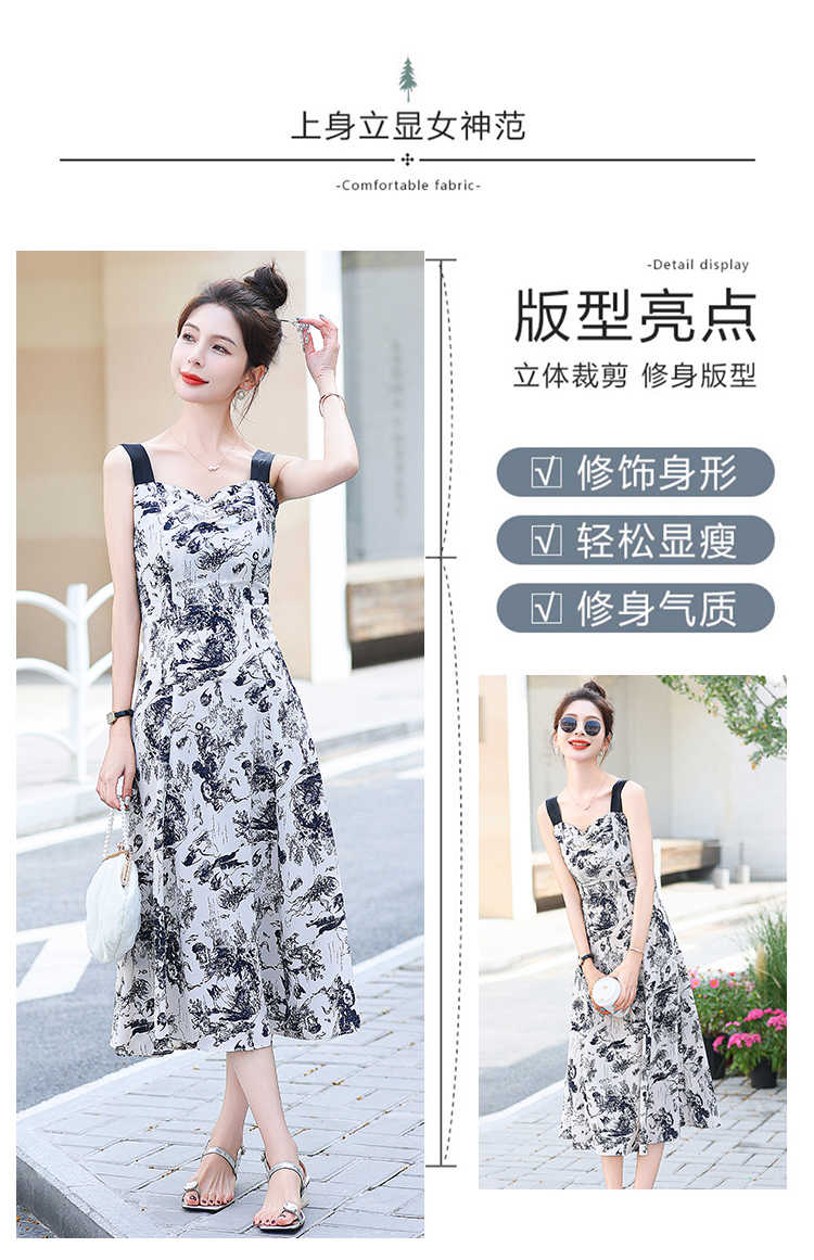 RY3007# 2026夏季新款修身显瘦吊带连衣裙水墨画国风时尚气质中长款吊带裙