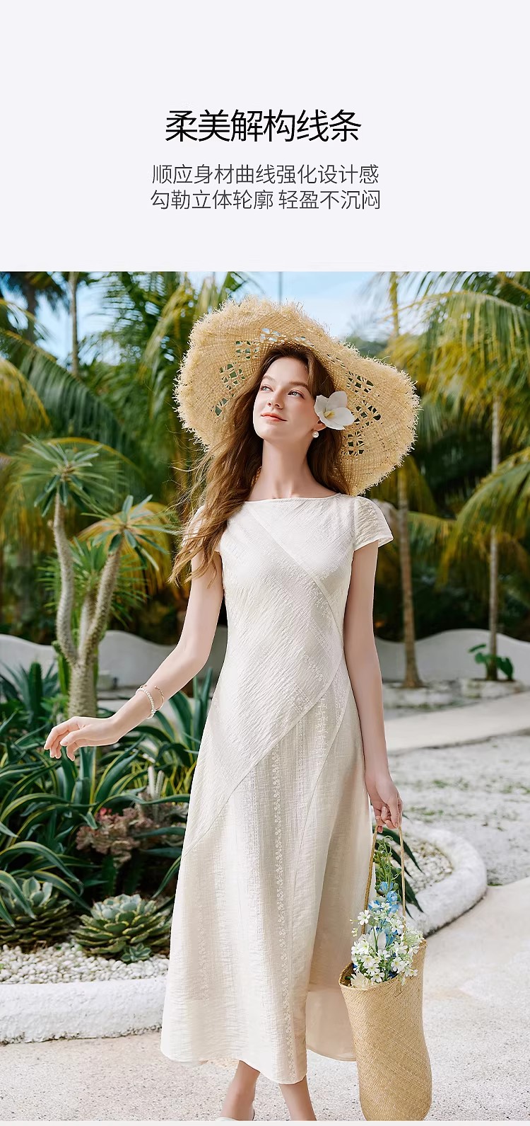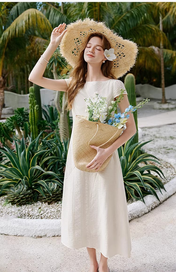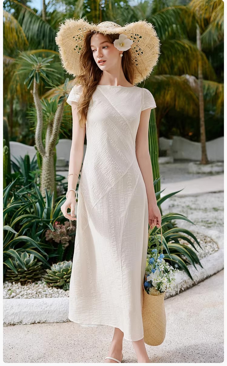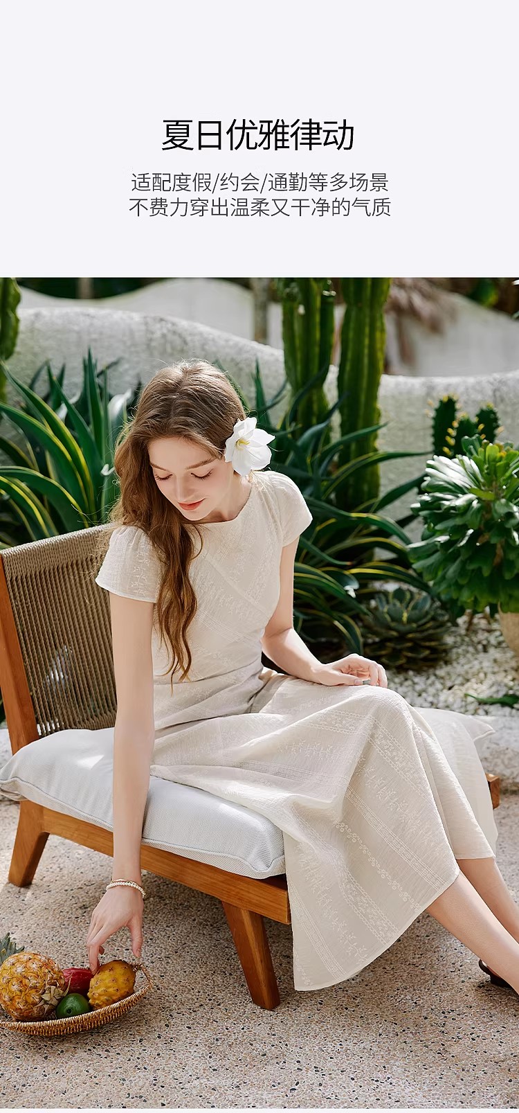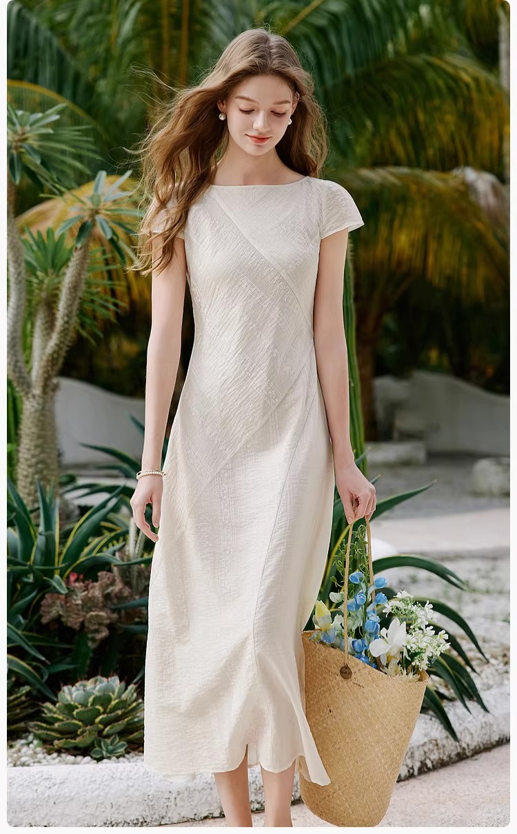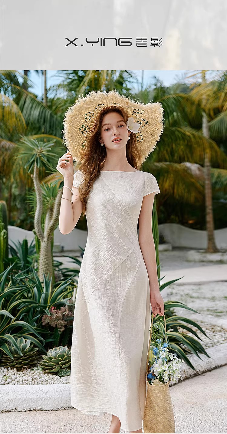 RY3010# 法式收腰白色连衣裙女2026夏季新款裙子初恋白月光长裙