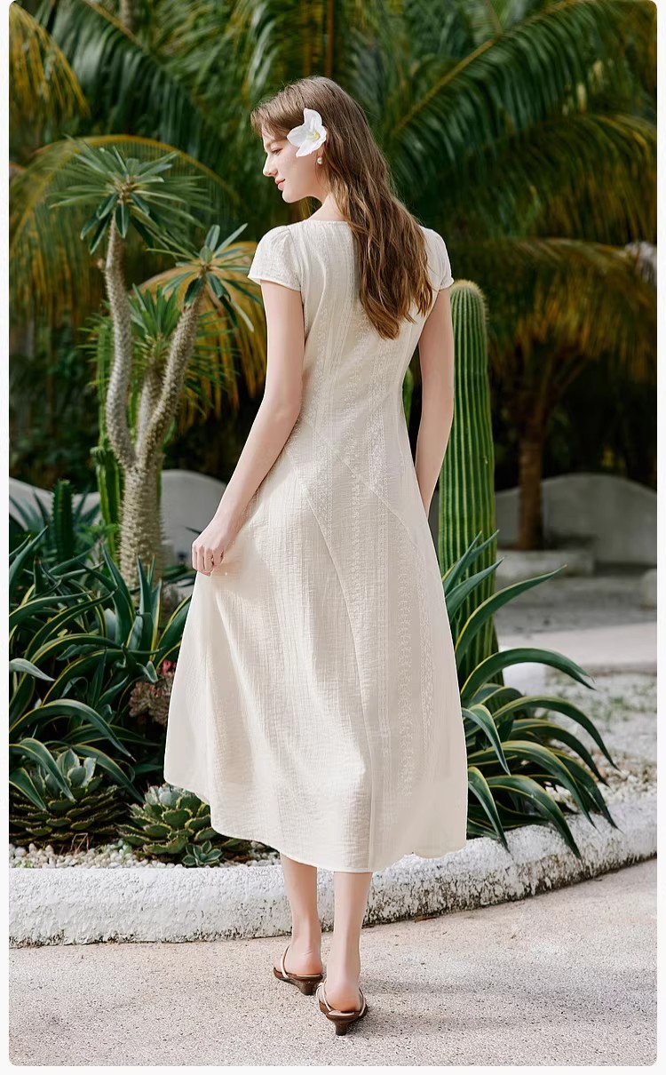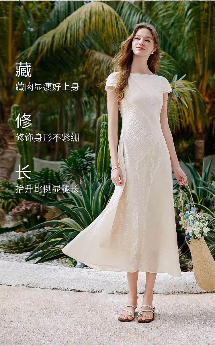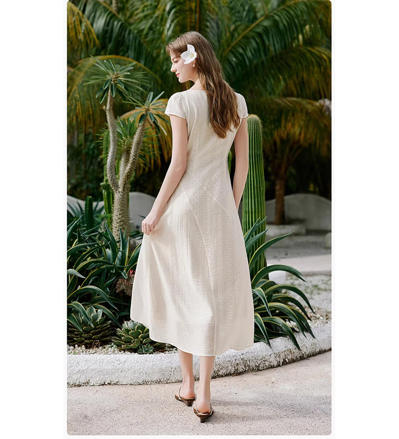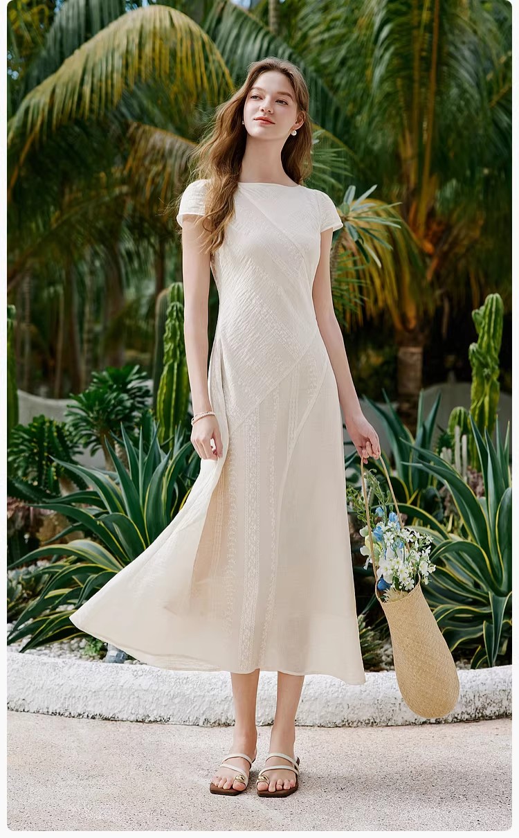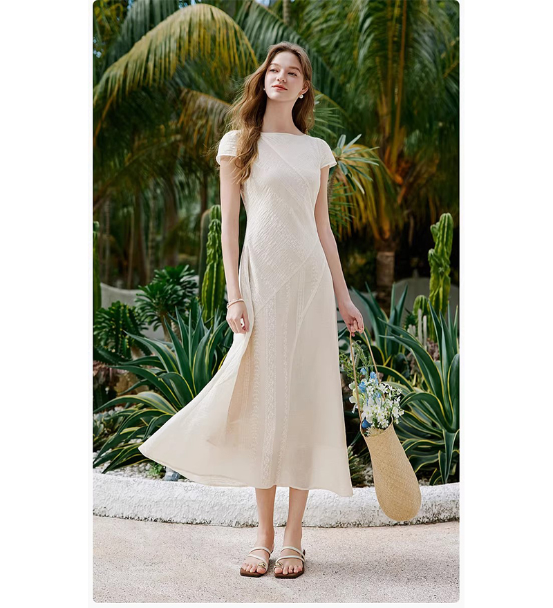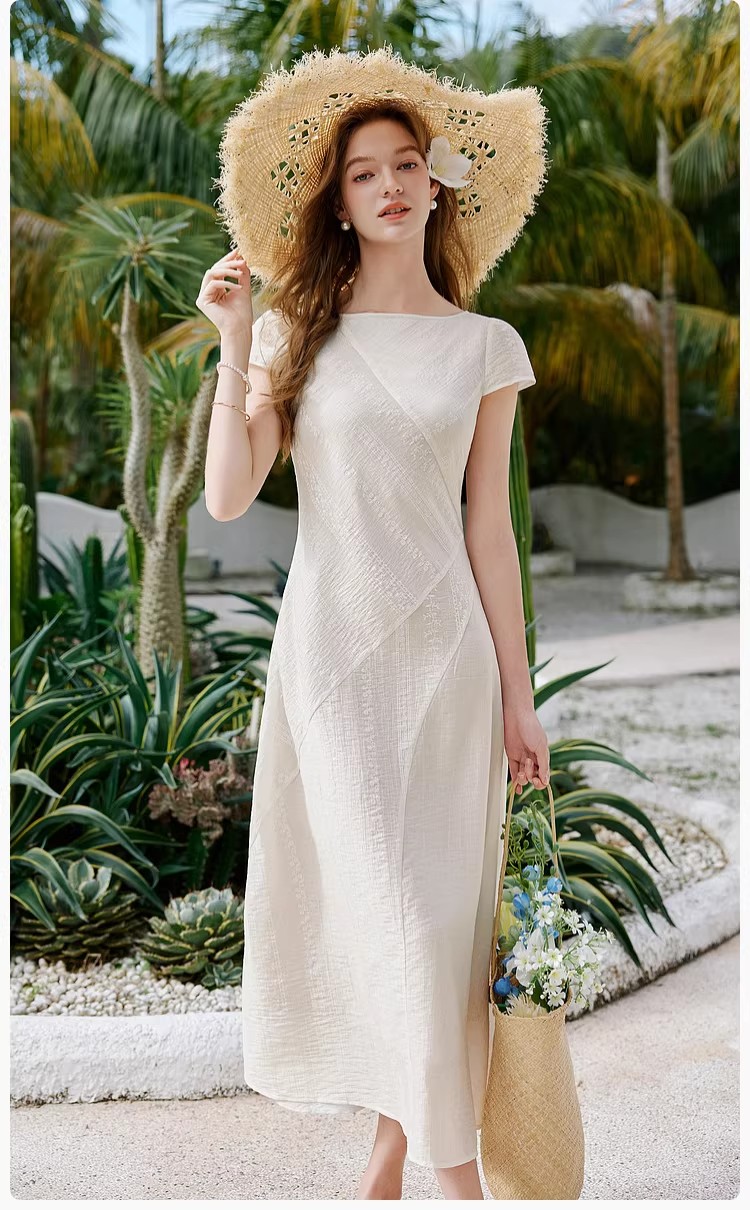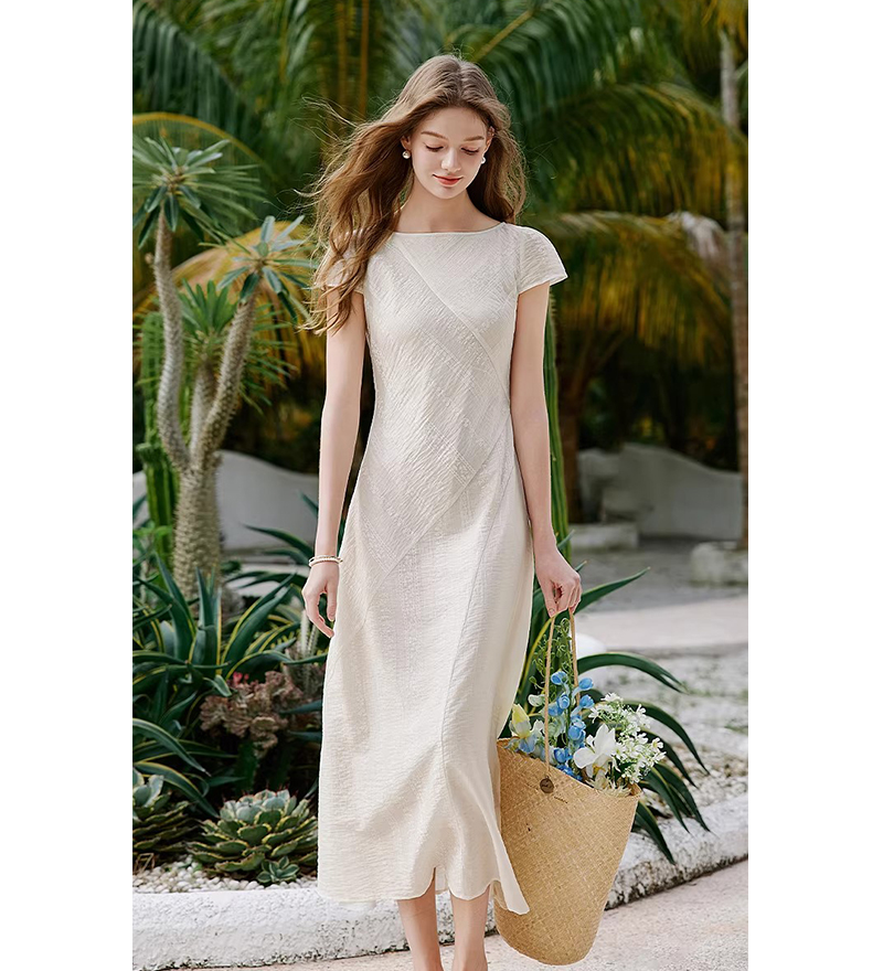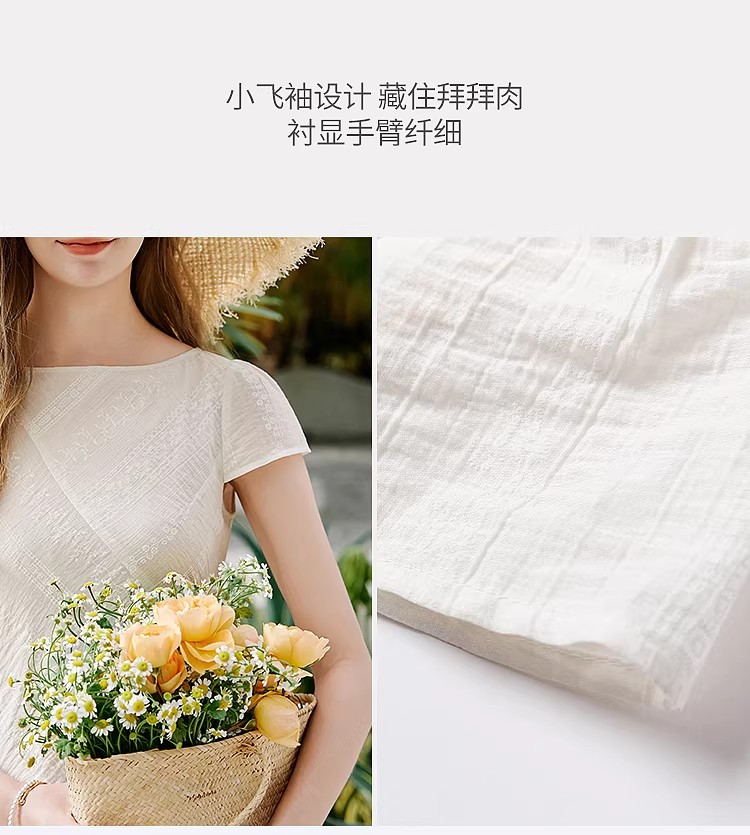 RY3010# 法式收腰白色连衣裙女2026夏季新款裙子初恋白月光长裙