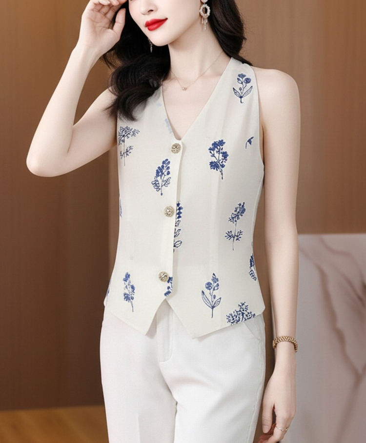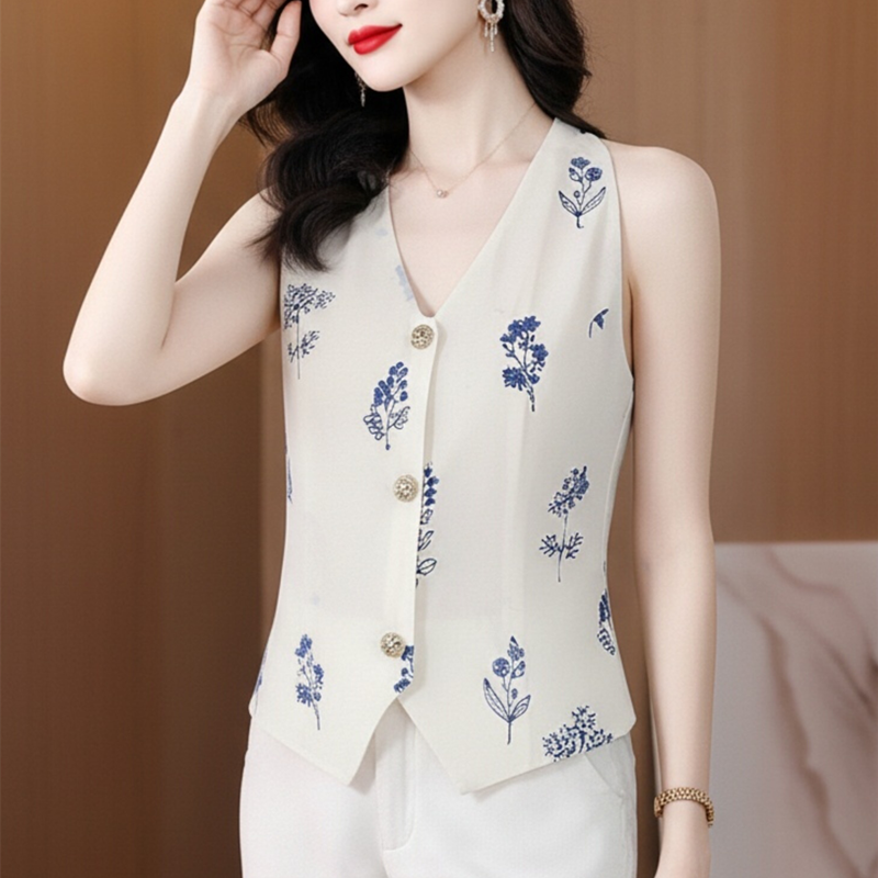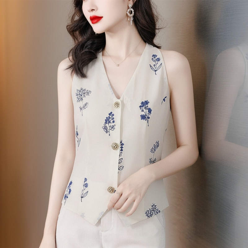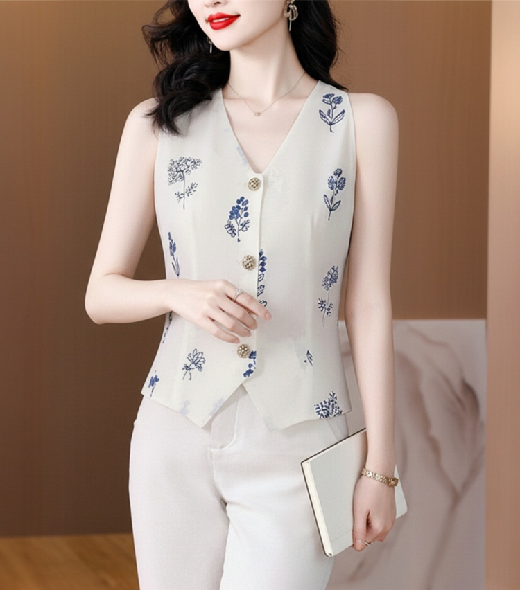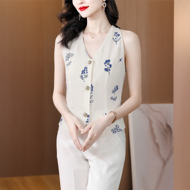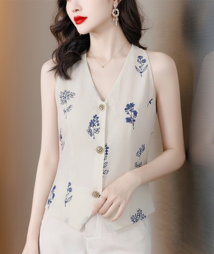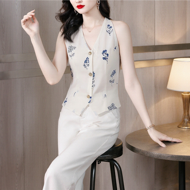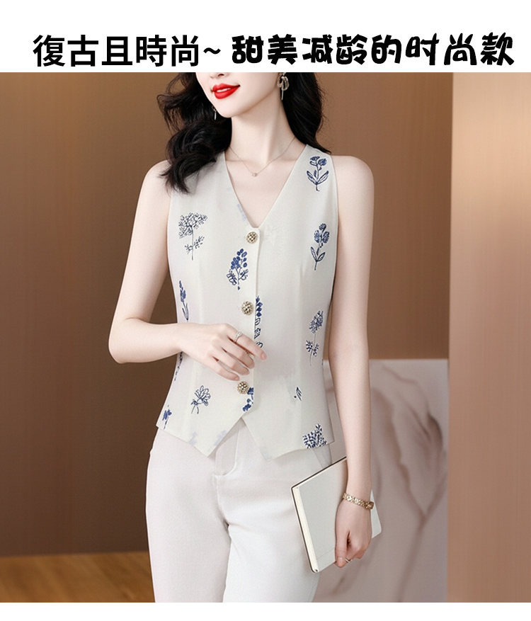 RY3018# 初夏气质新中式大方得体穿搭轻奢高级感巨好看度假风印花吊带上衣