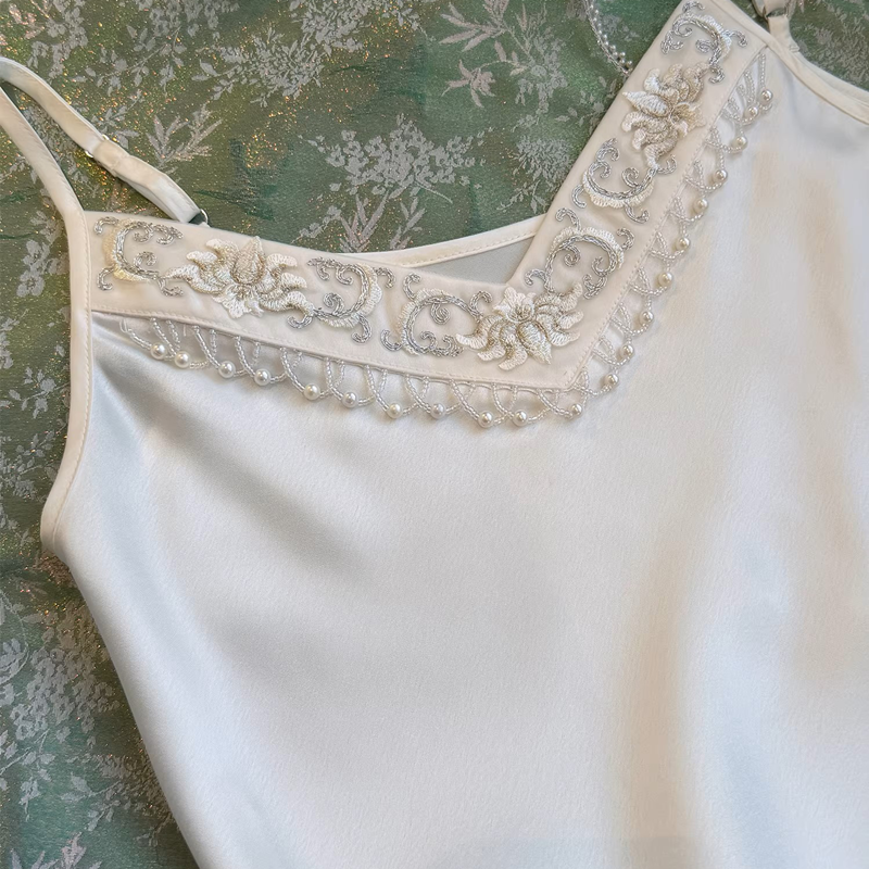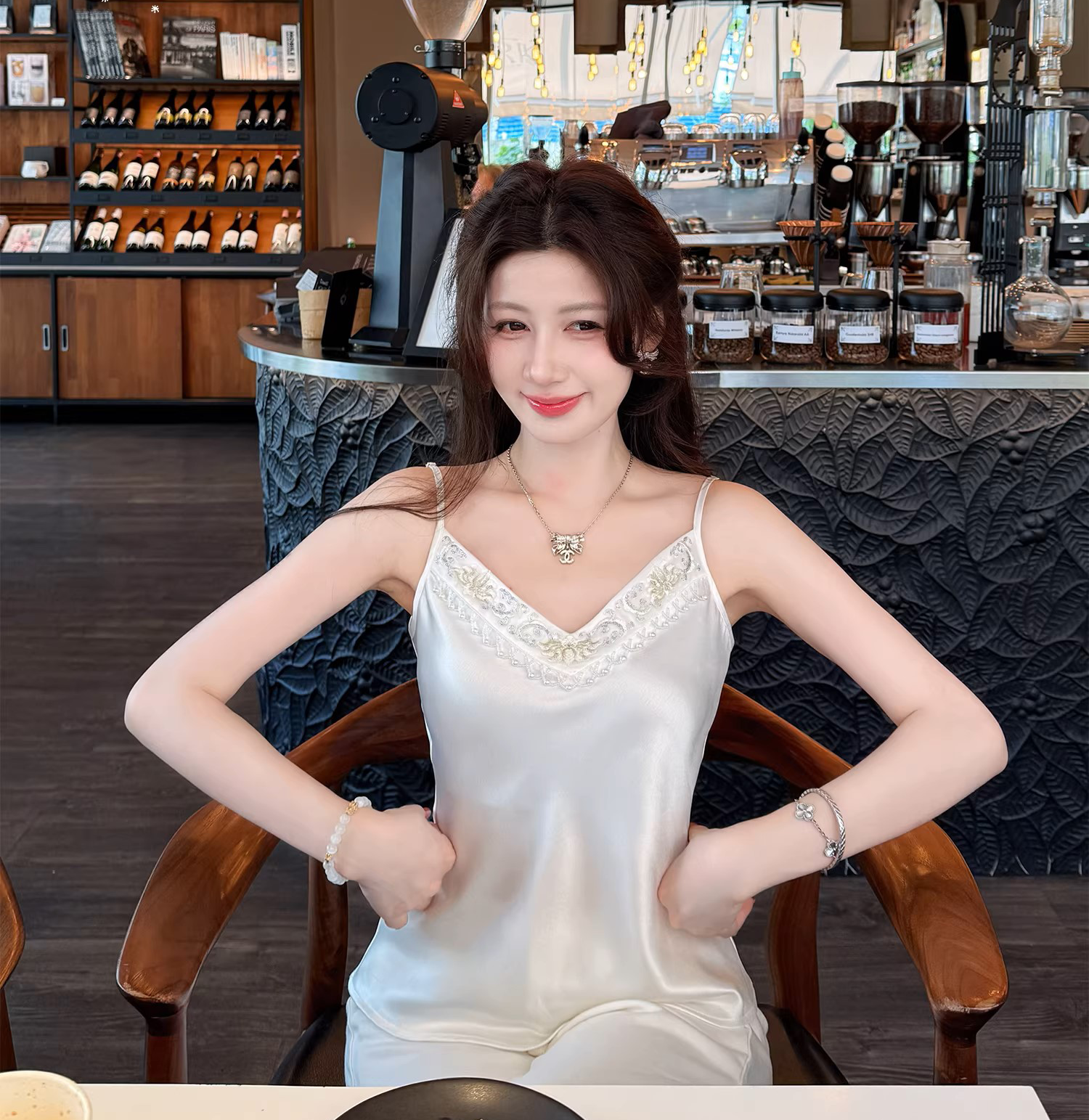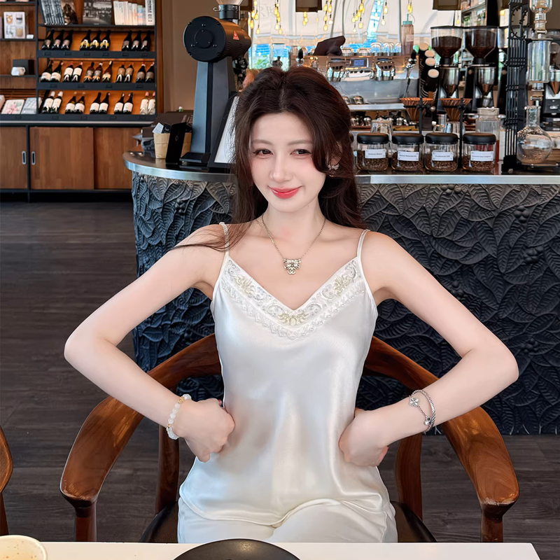 RY3019# 国风绣花钉珠吊带背心女夏2026新款内搭V领美背修身显瘦无袖上衣
