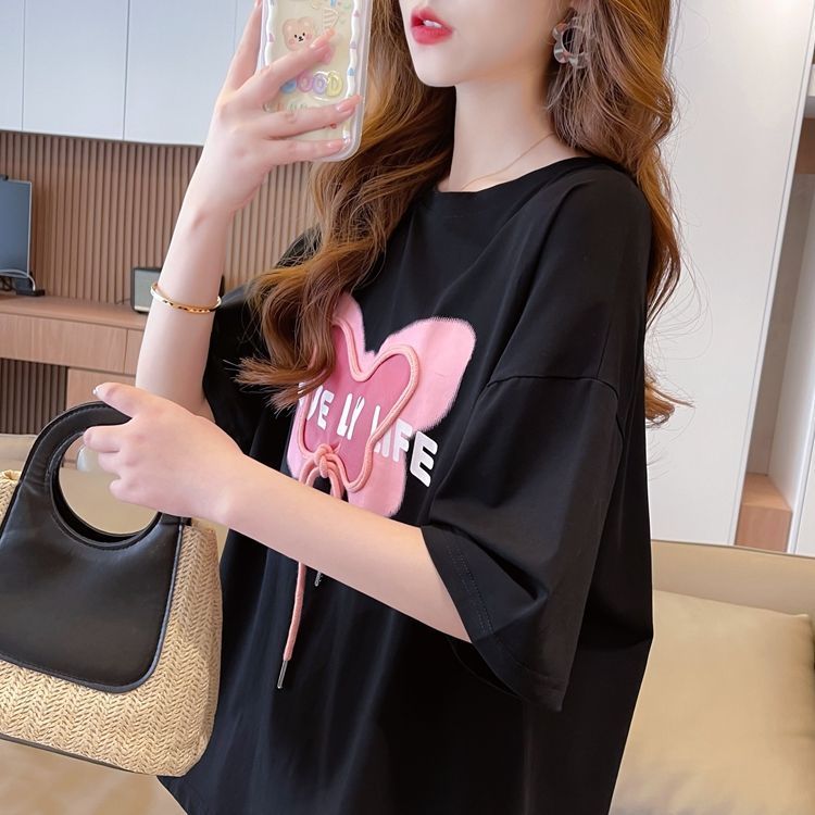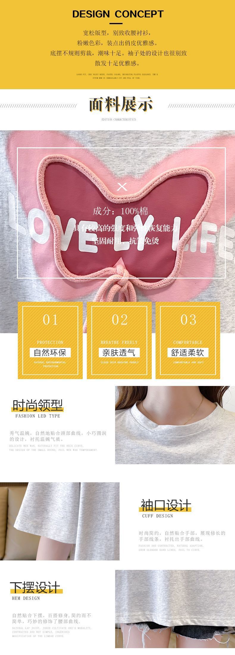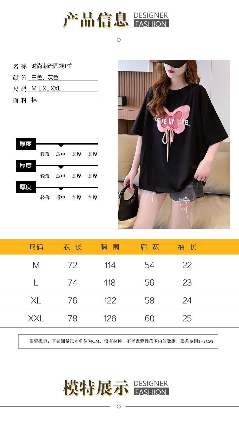 RY3023# 实拍 100%纯棉 后包领 韩版中长款重工印花短袖T恤女