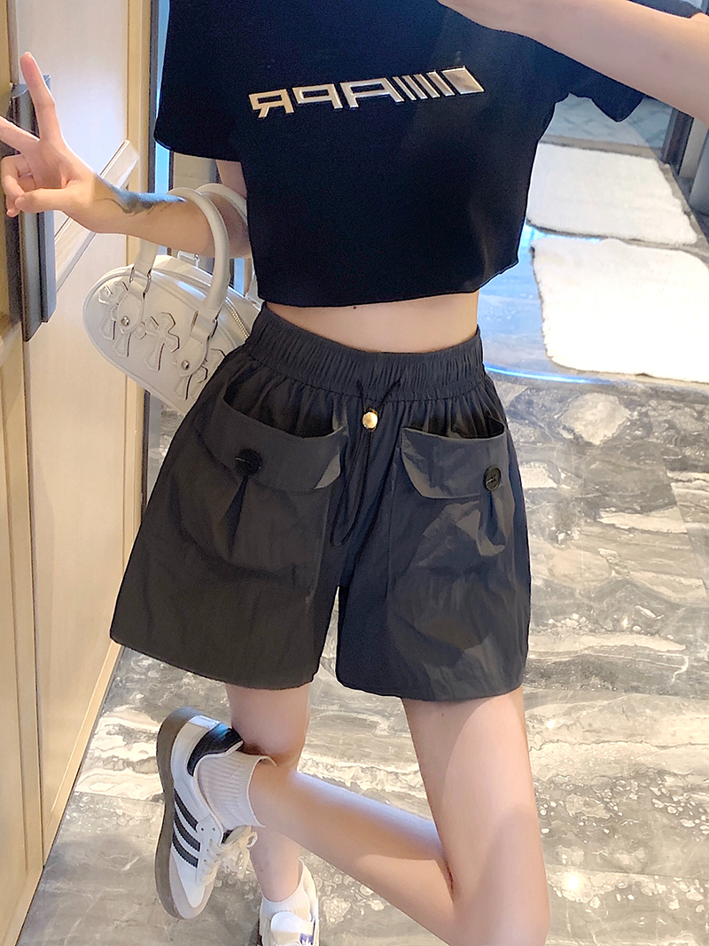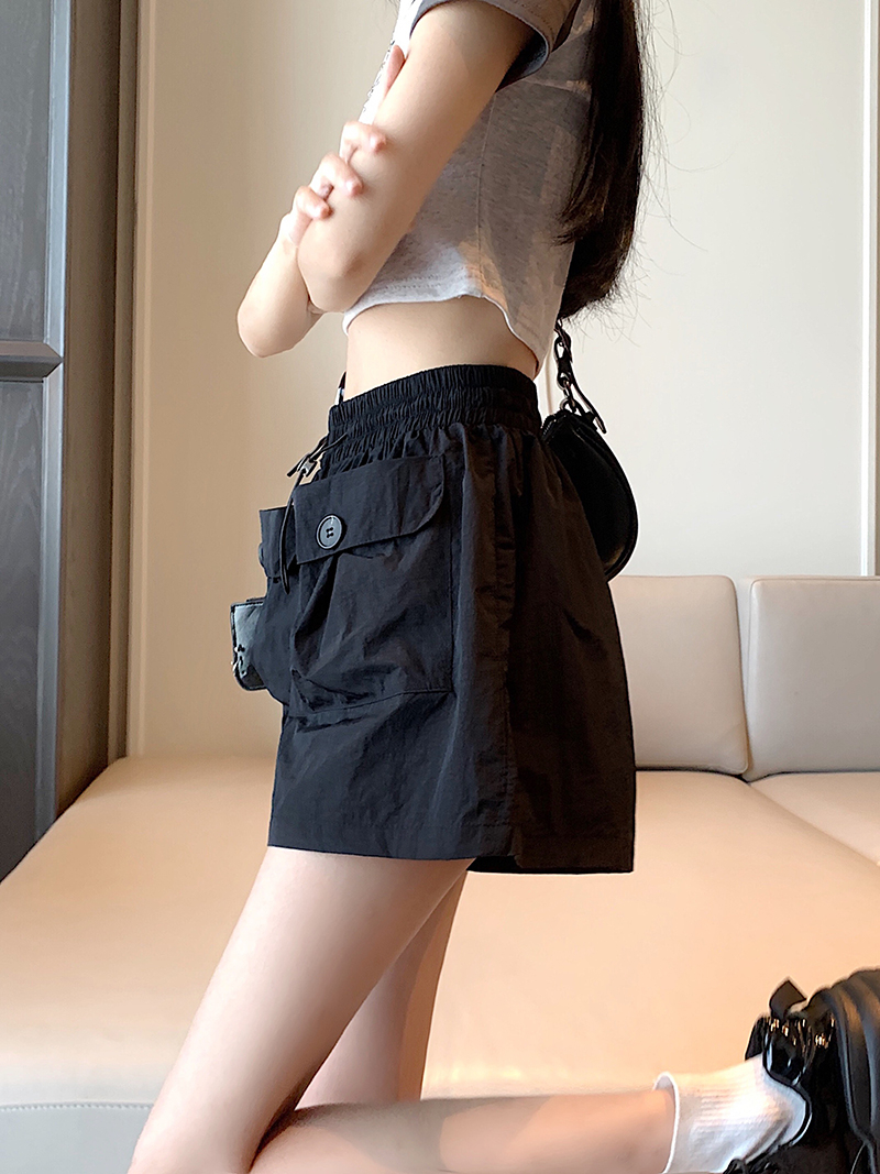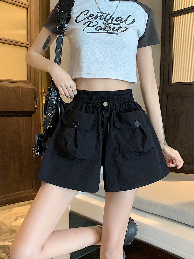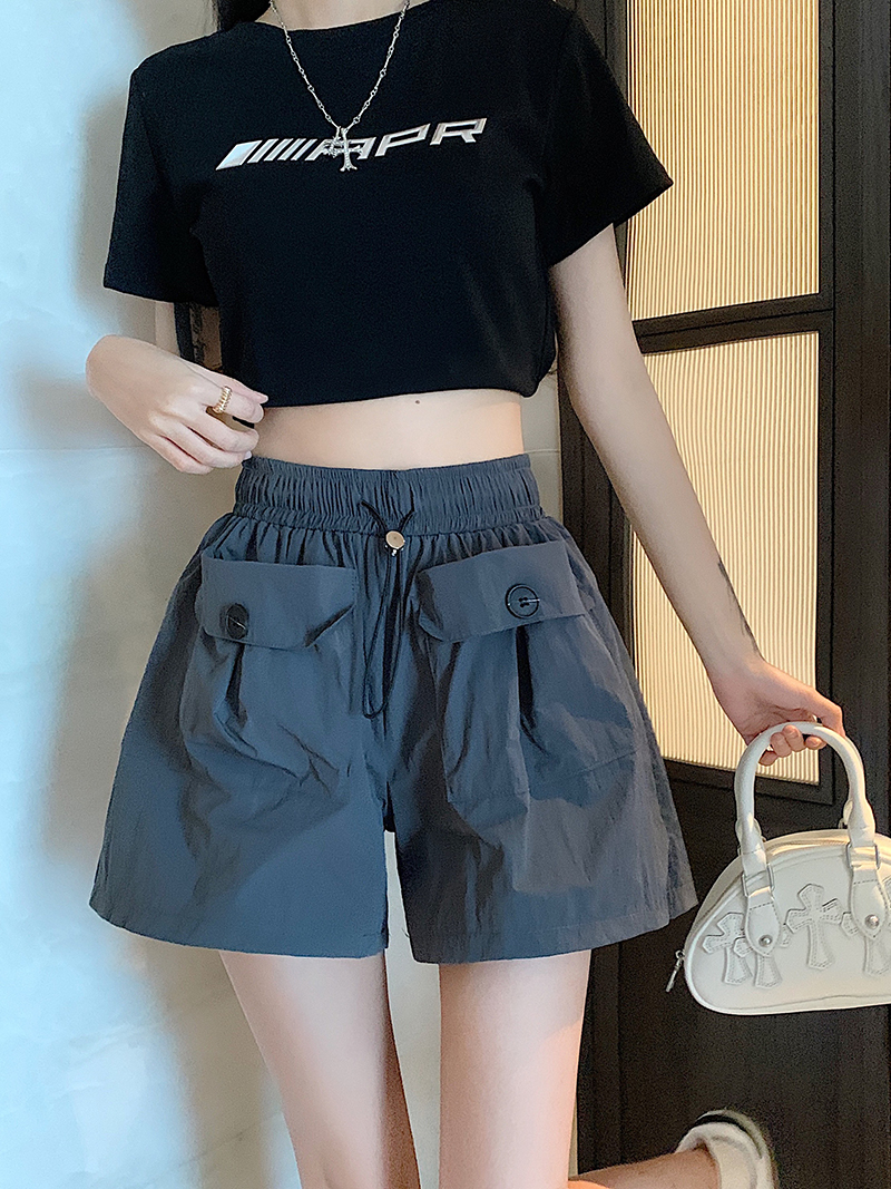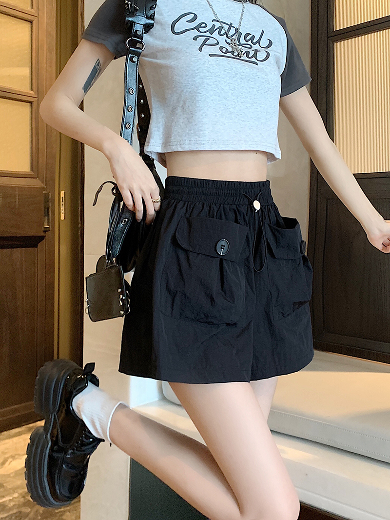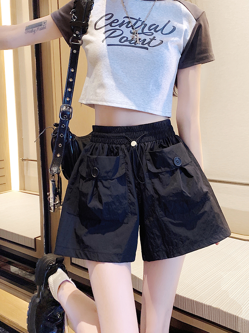 RY3030# 实拍 锦棉山本设计感口袋工装裤女宽松阔腿休闲裤短裤