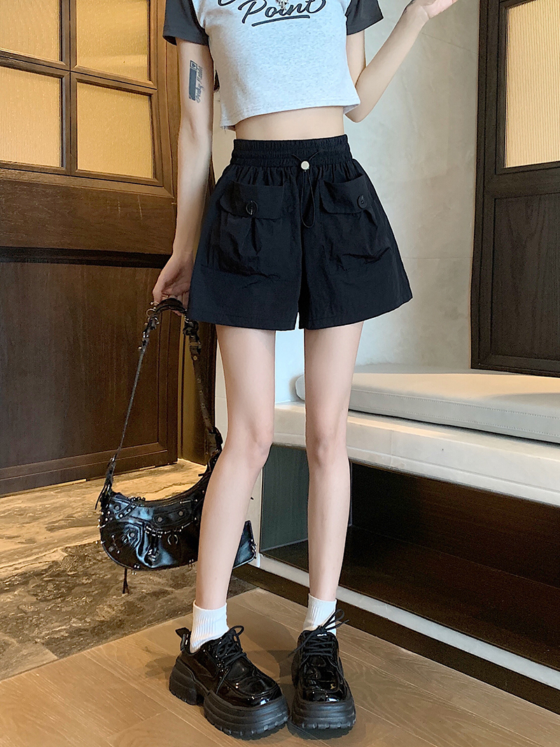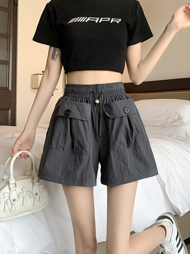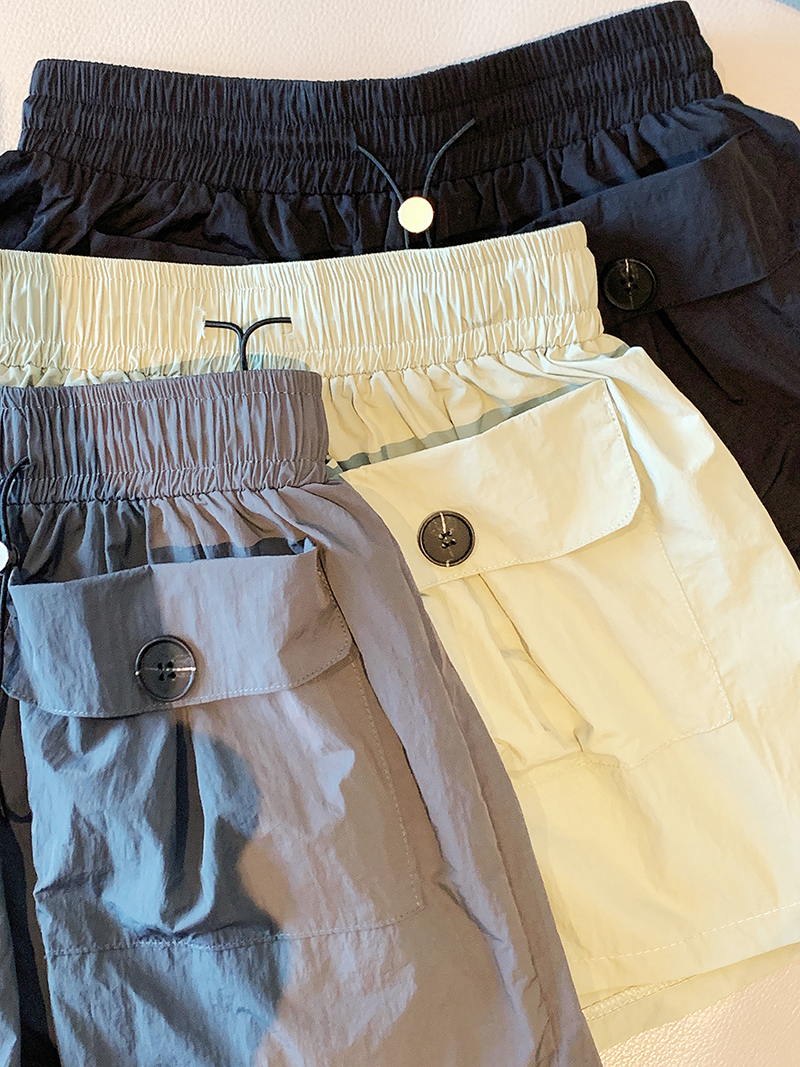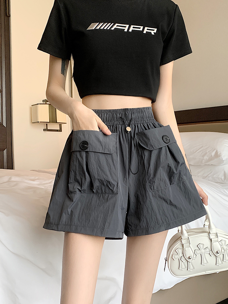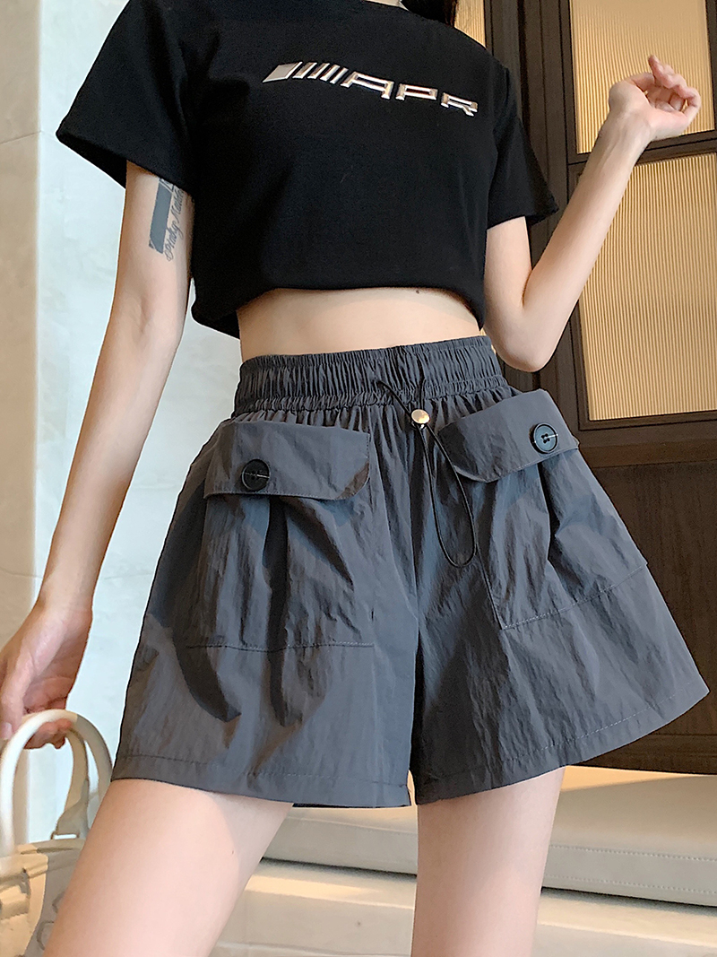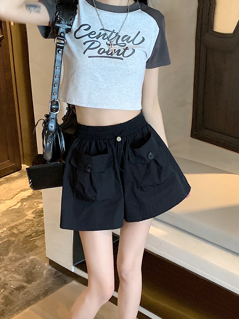 RY3030# 实拍 锦棉山本设计感口袋工装裤女宽松阔腿休闲裤短裤