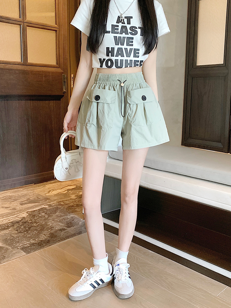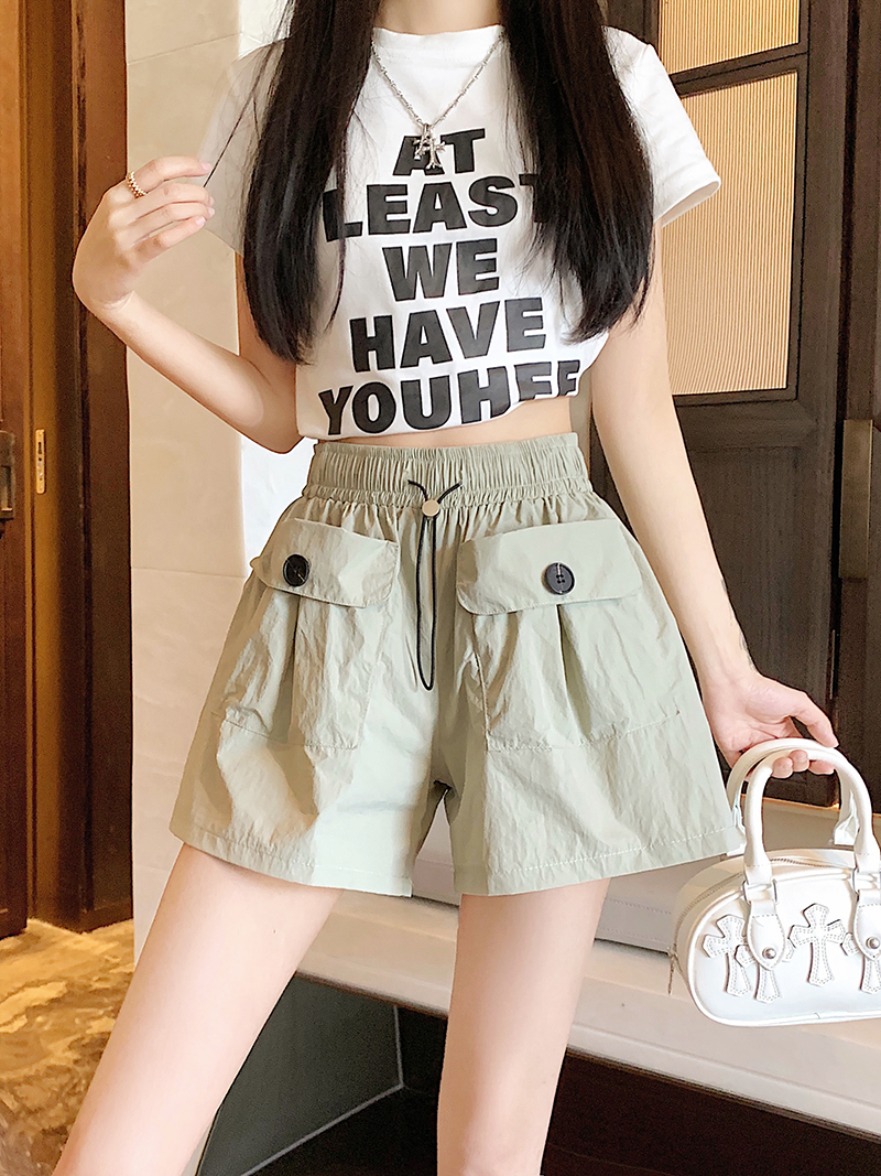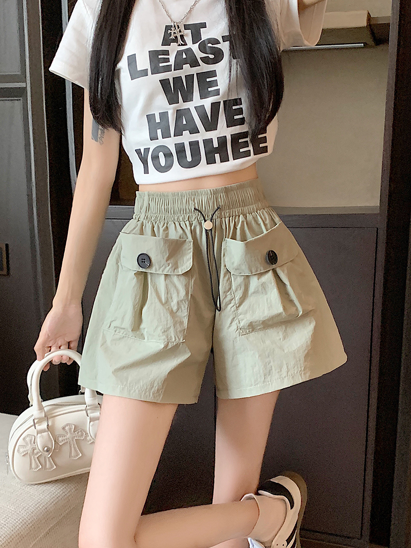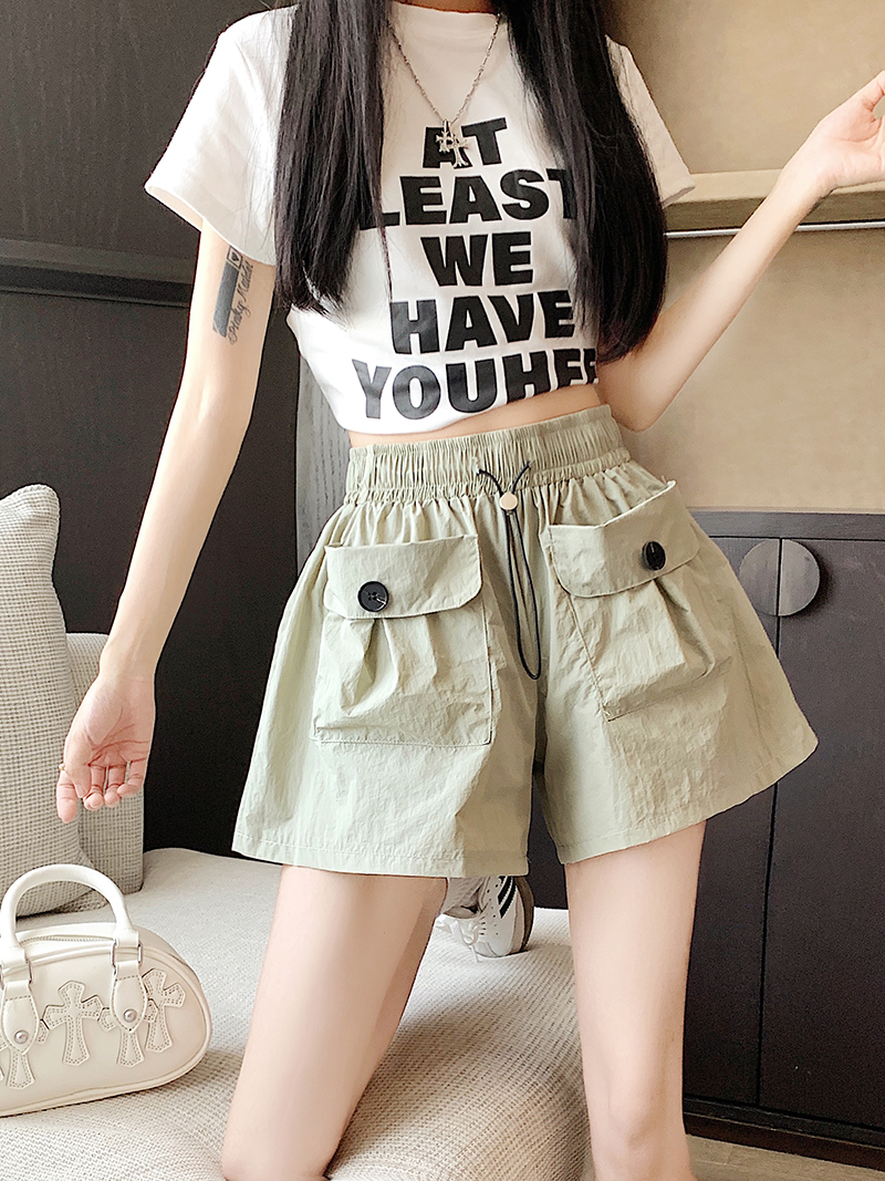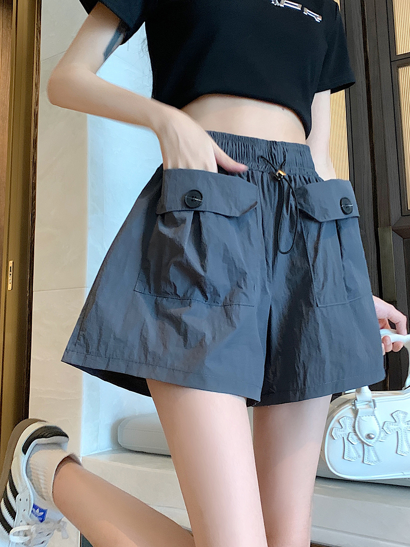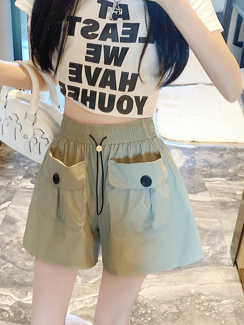 RY3030# 实拍 锦棉山本设计感口袋工装裤女宽松阔腿休闲裤短裤