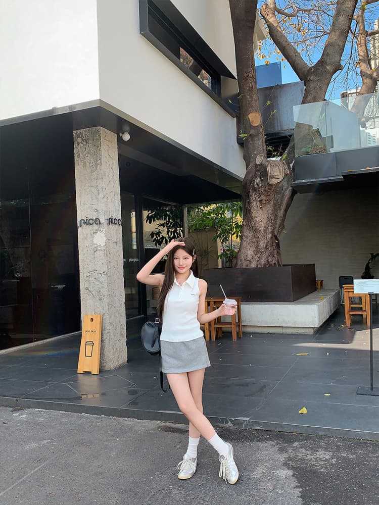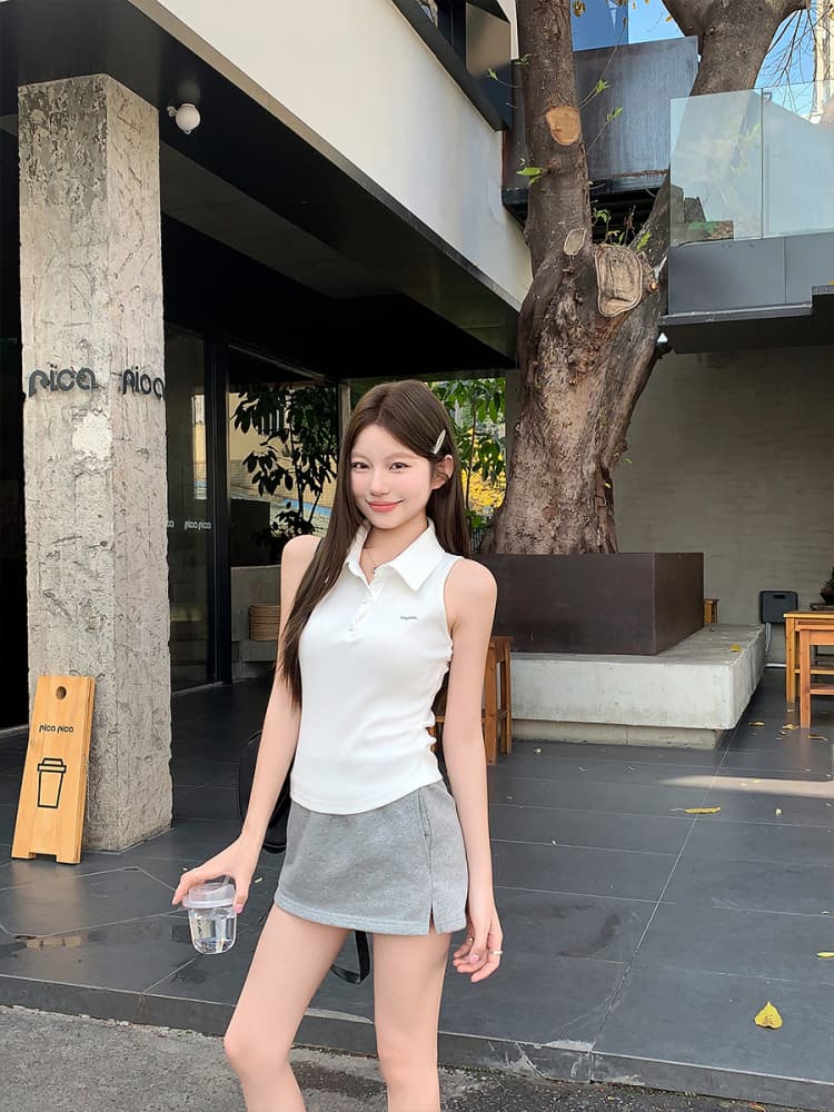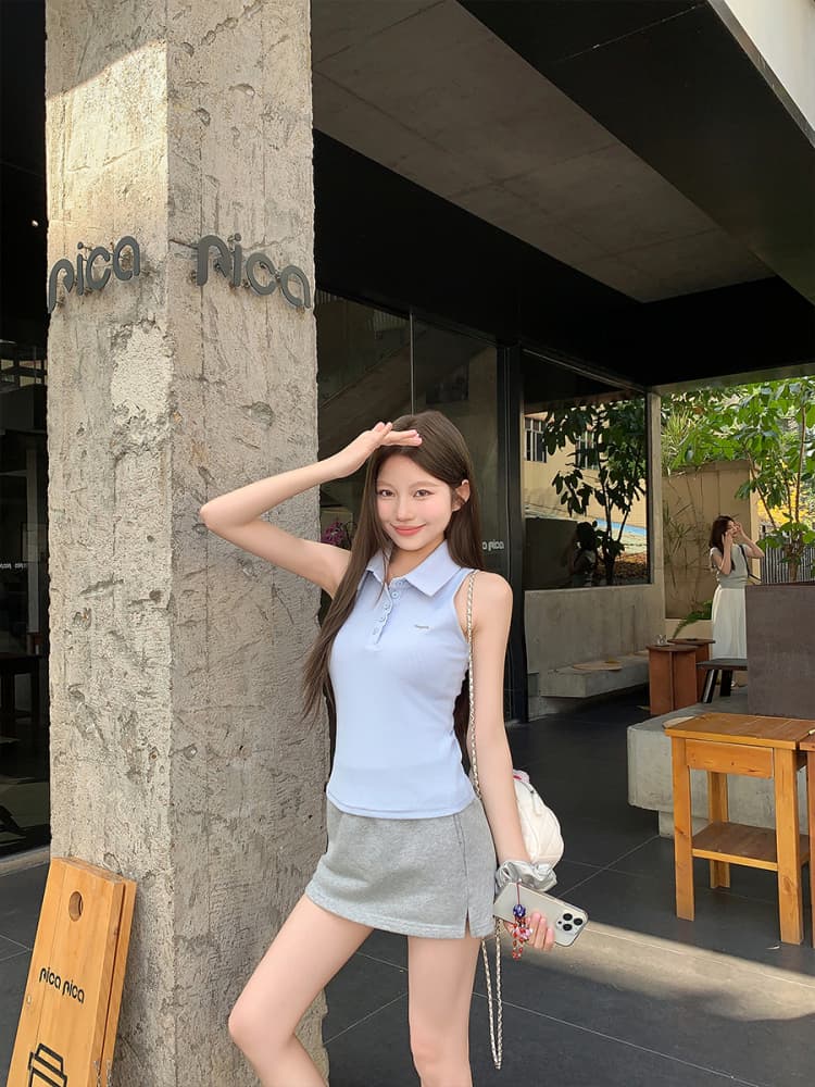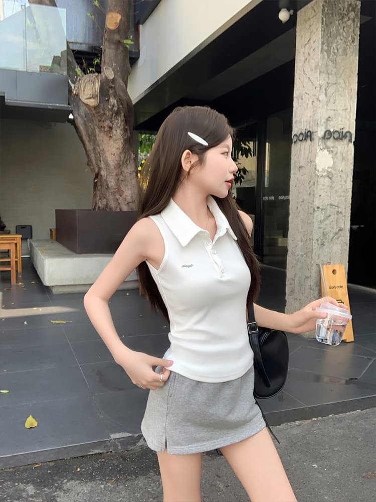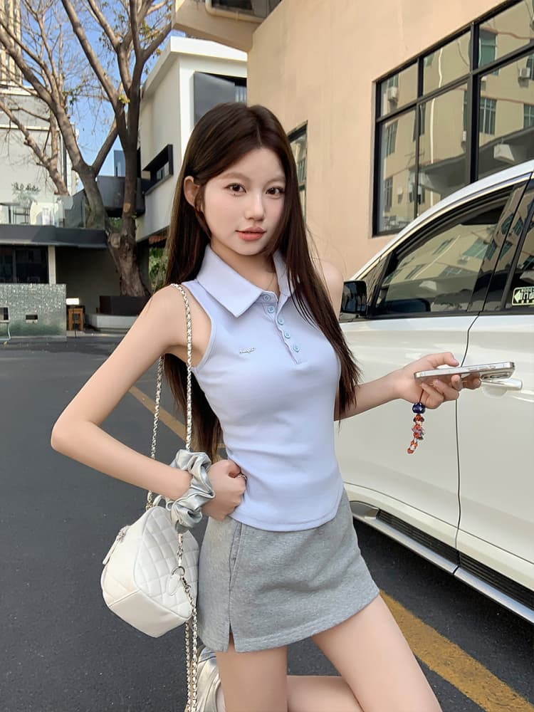 RY3033# 原版品质Polo领无袖背心夏季新款设计感修身辣妹短款上衣