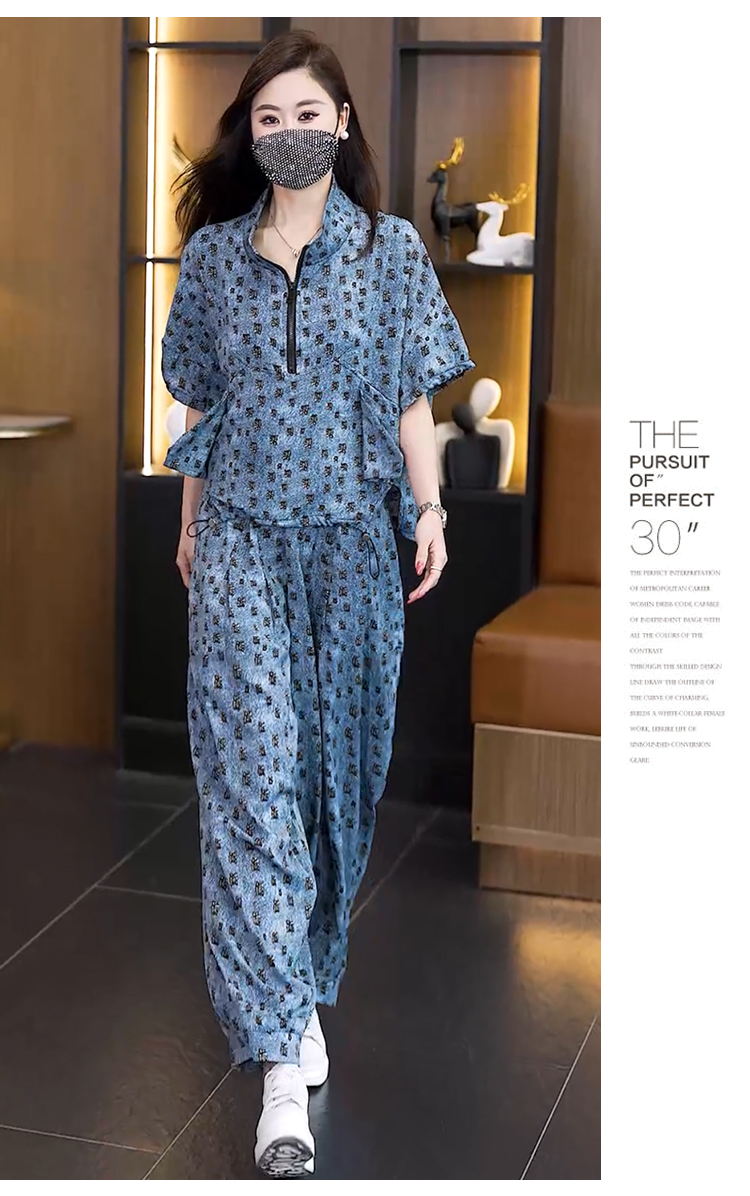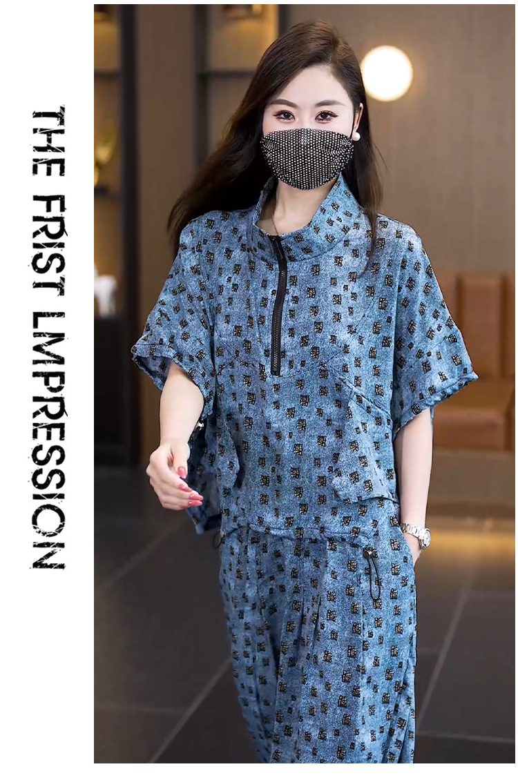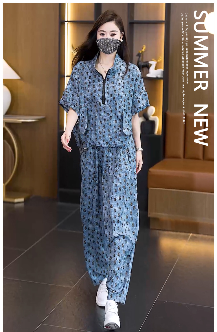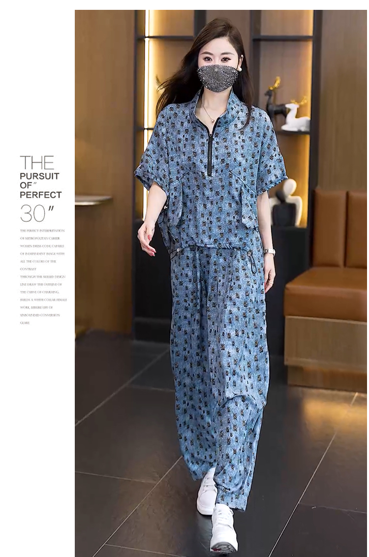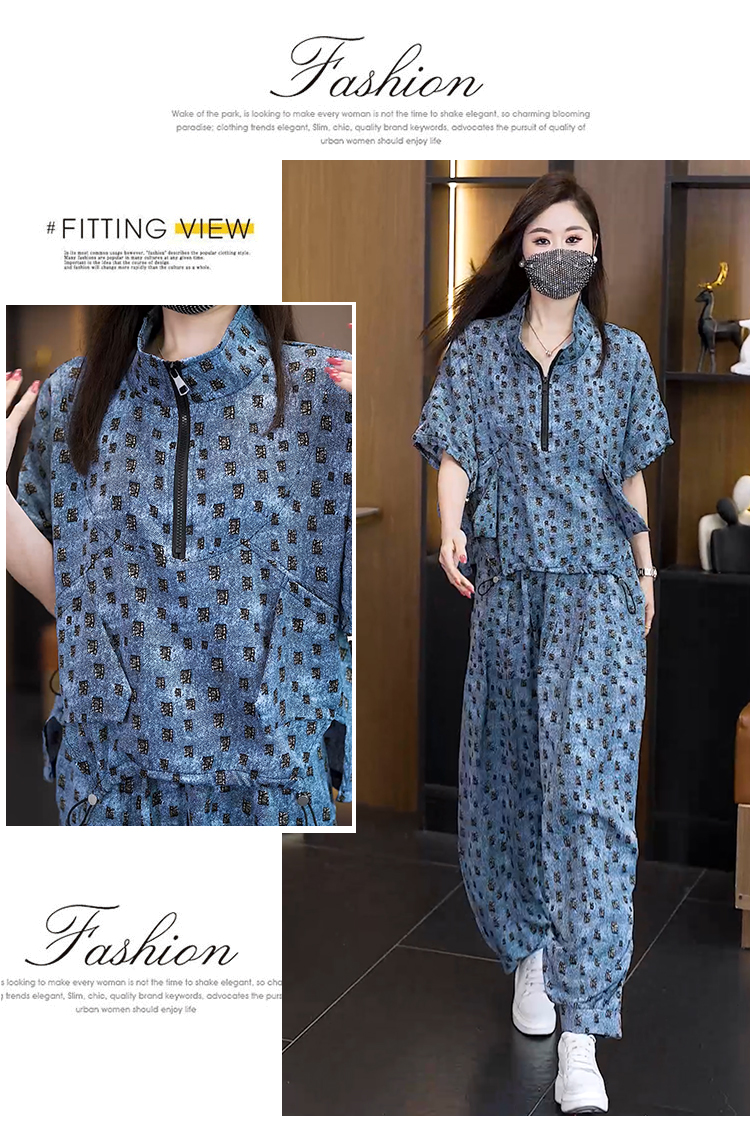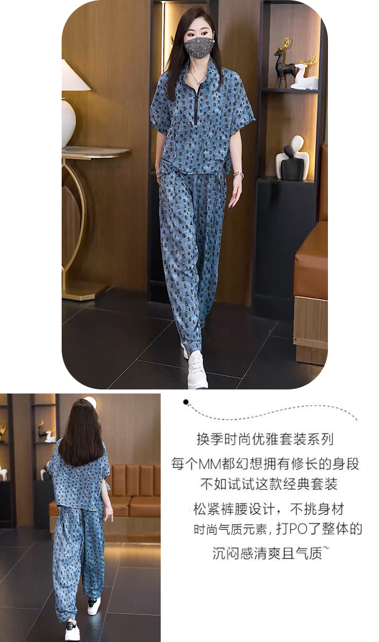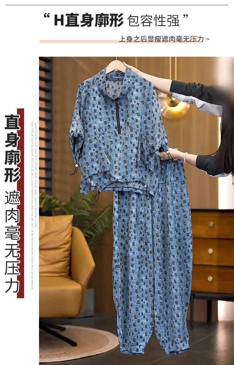 RY3039# 实拍2026夏季新款大码女装透气时尚宽松遮肉高级设计感套装
