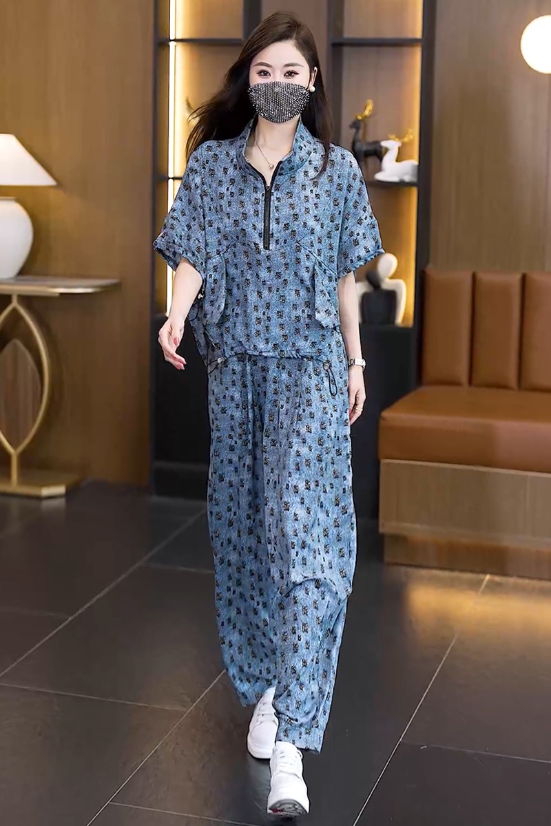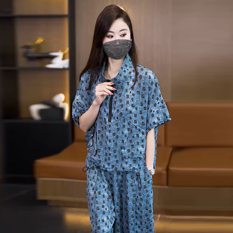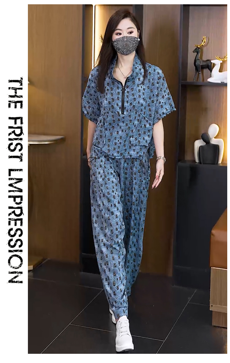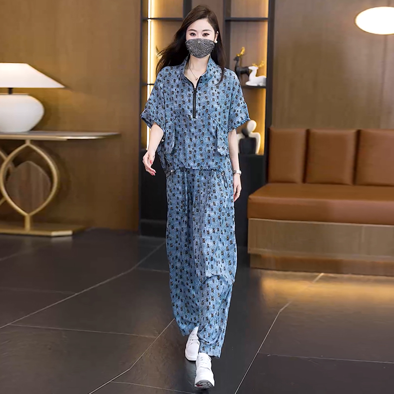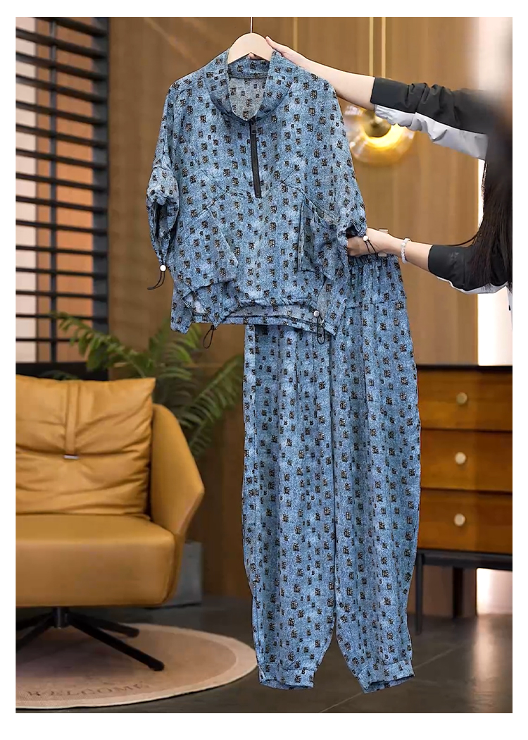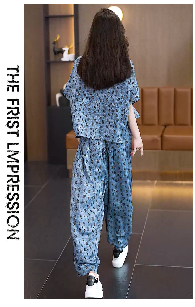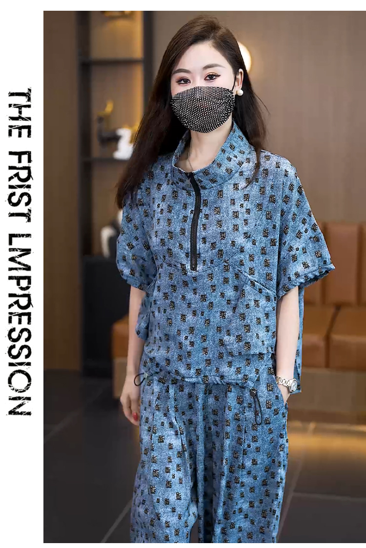 RY3039# 实拍2026夏季新款大码女装透气时尚宽松遮肉高级设计感套装
