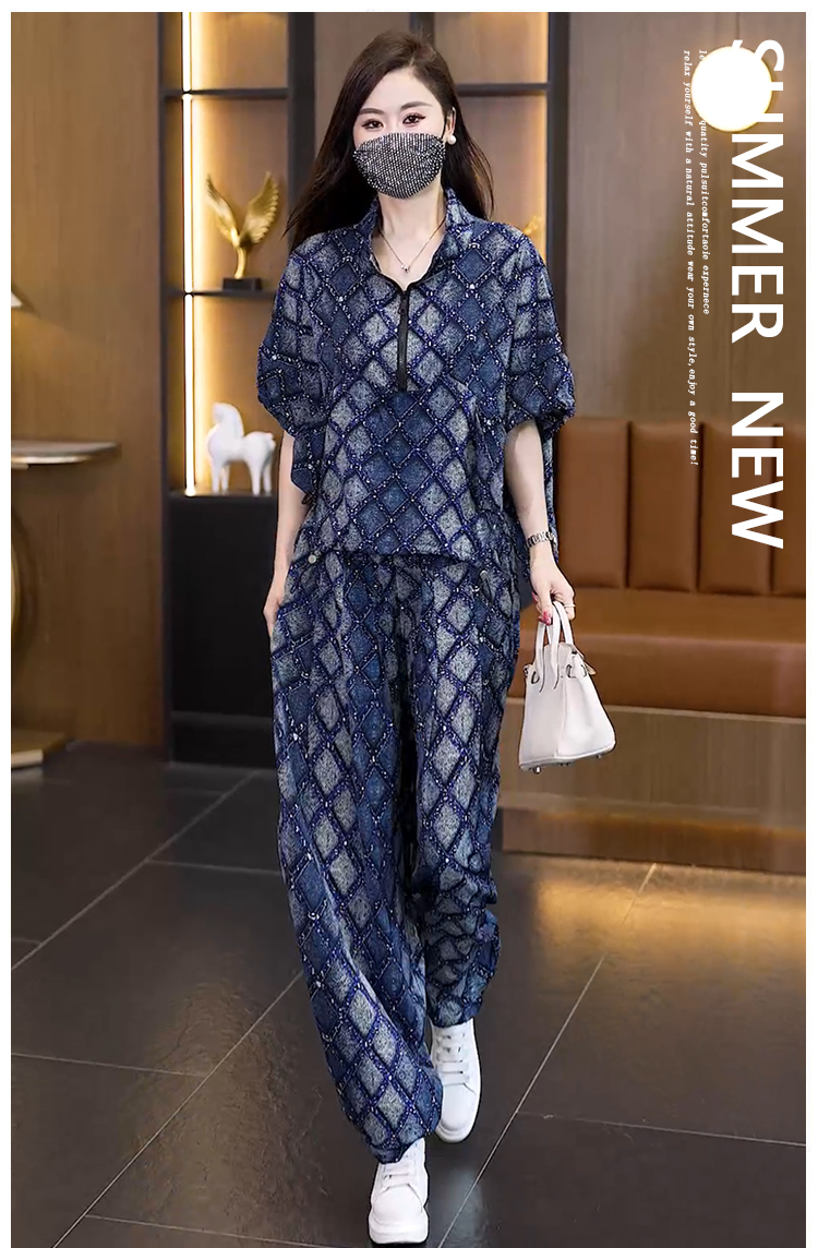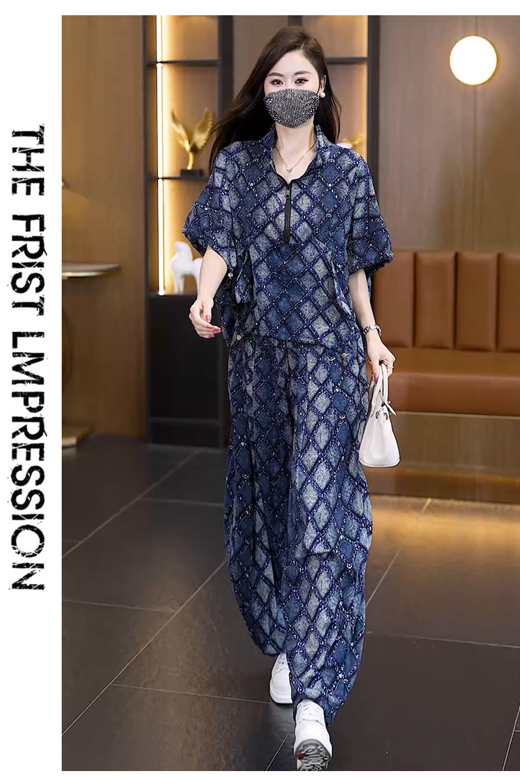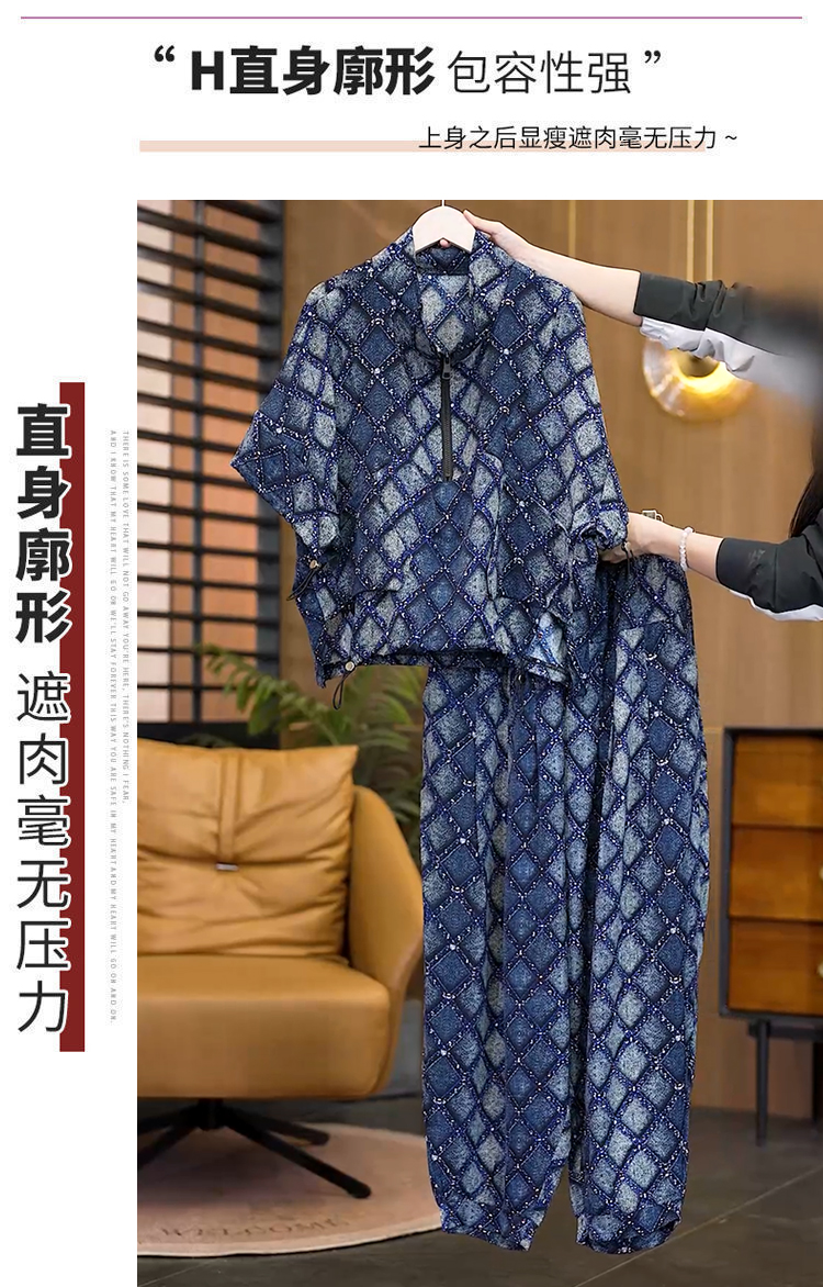 RY3040# 实拍2026夏季新款大码女装透气时尚宽松遮肉高级设计感套装