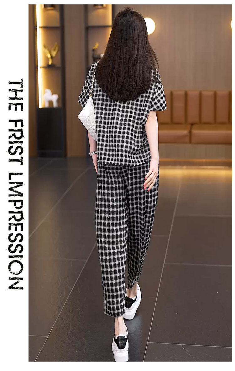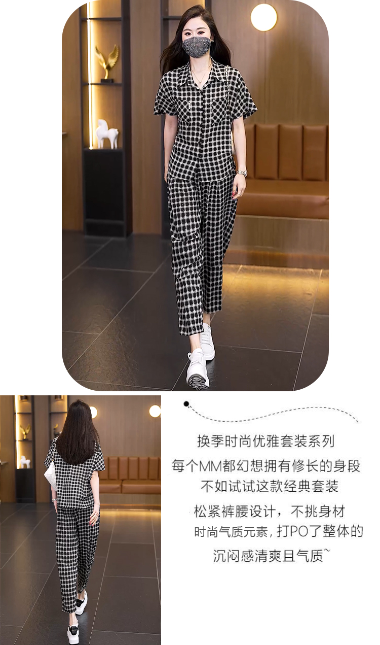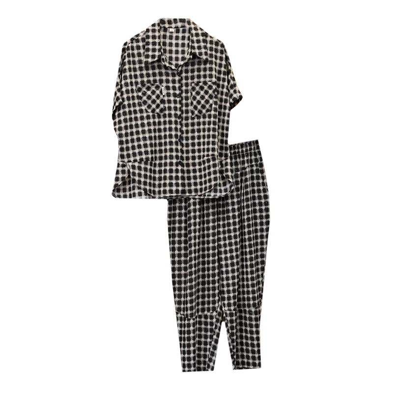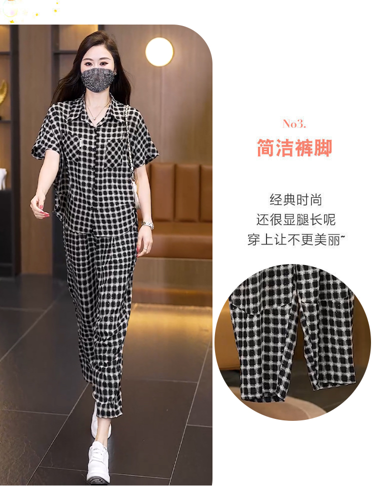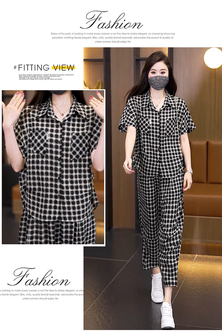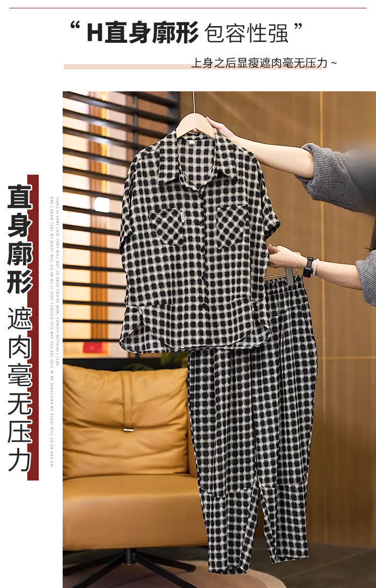 RY3041# 实拍2026年洋气大码女装套装胖MM格子时尚宽松显瘦哈伦裤两件套