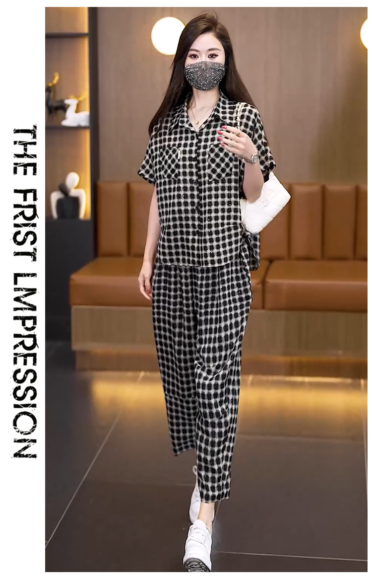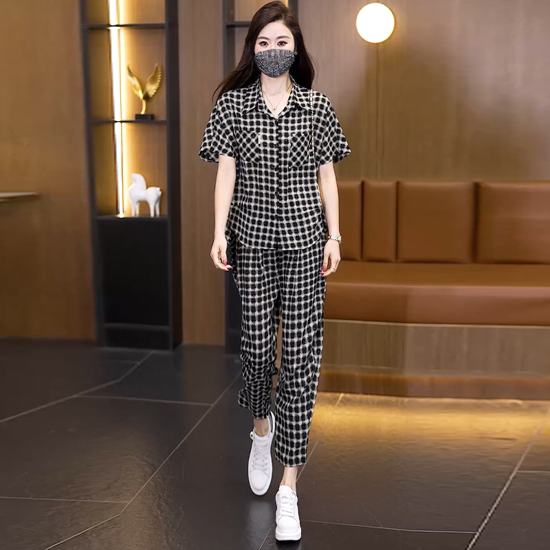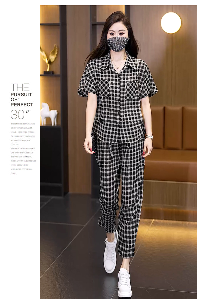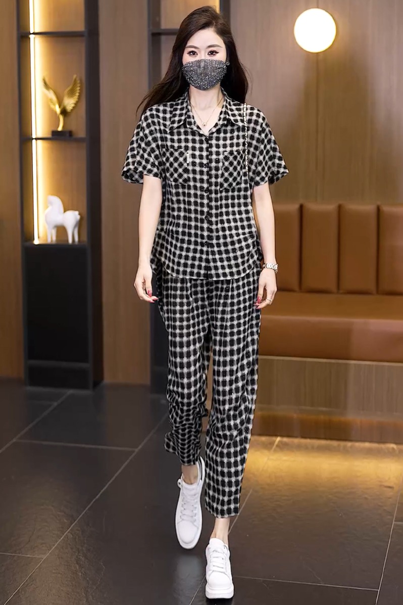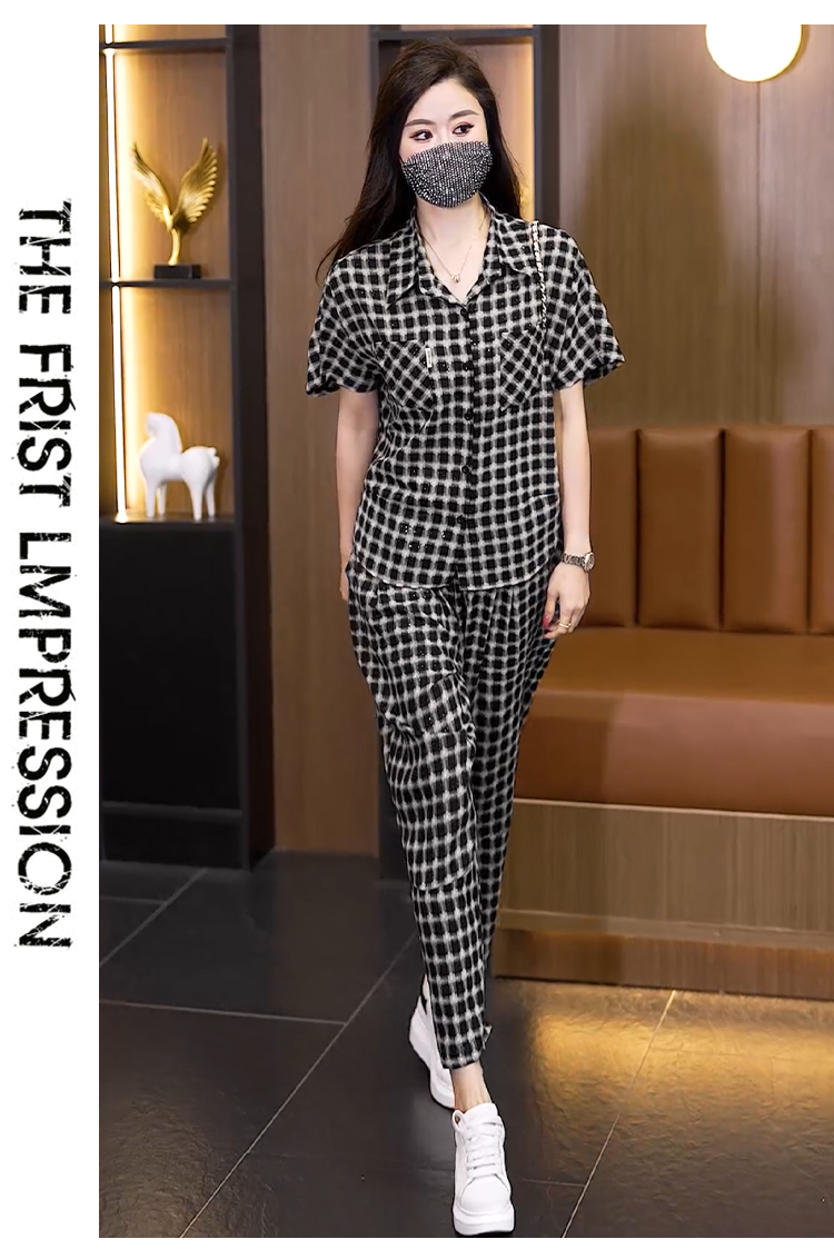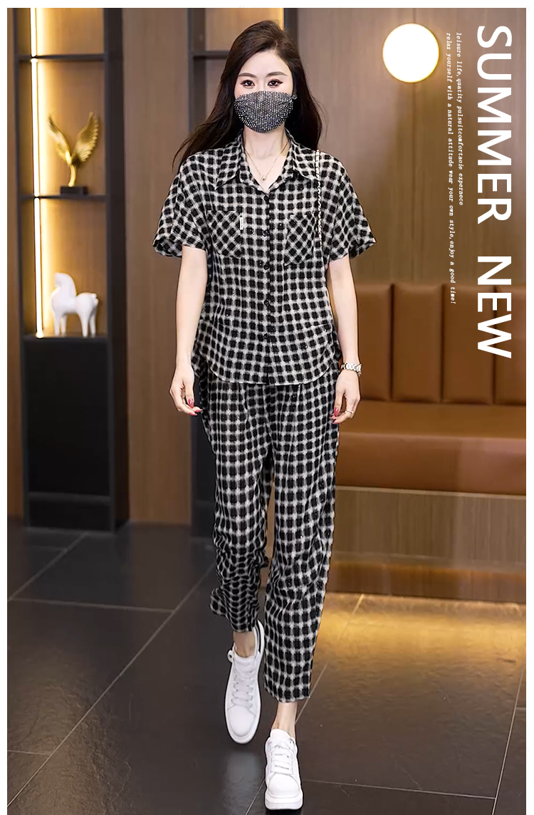 RY3041# 实拍2026年洋气大码女装套装胖MM格子时尚宽松显瘦哈伦裤两件套