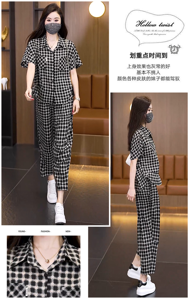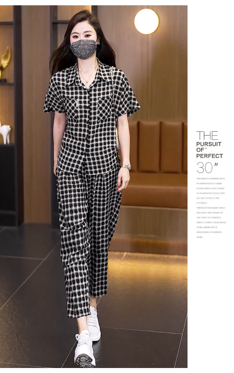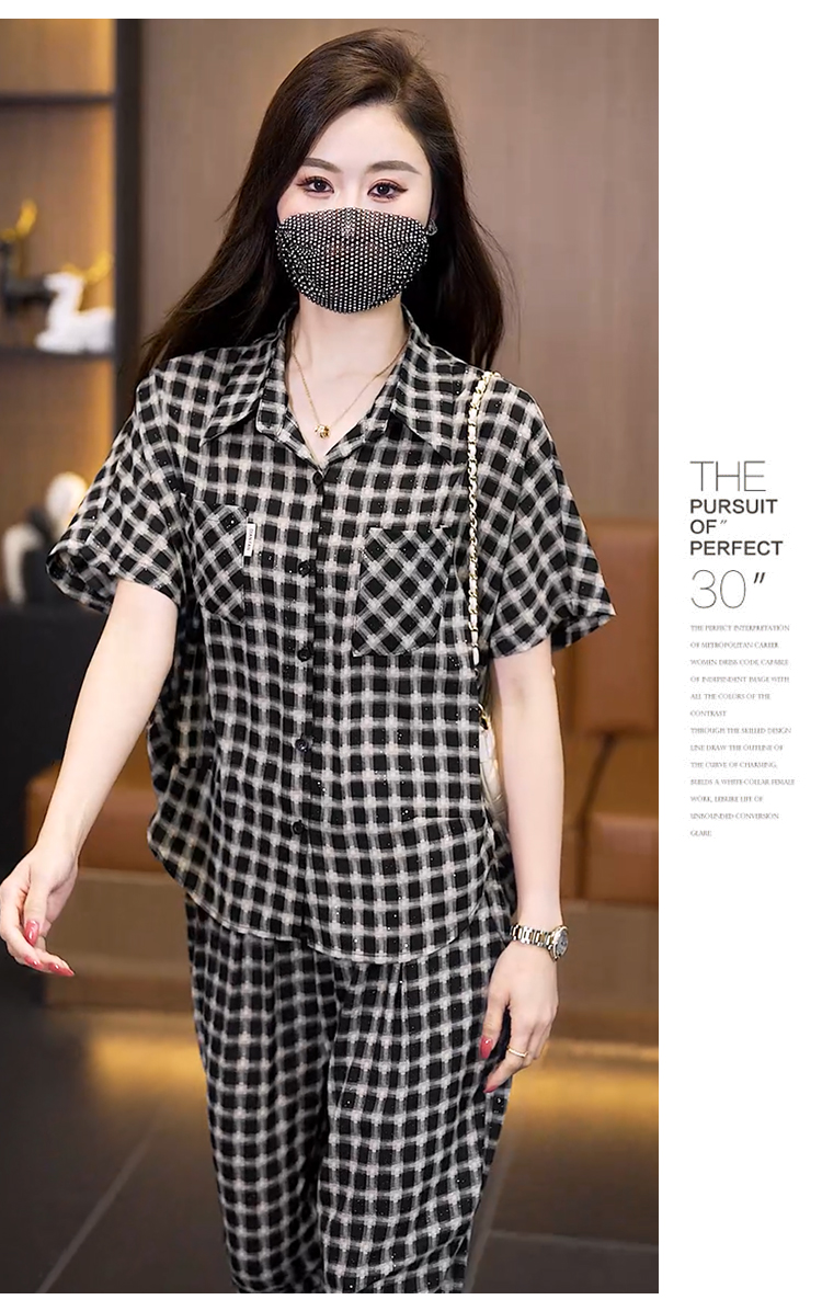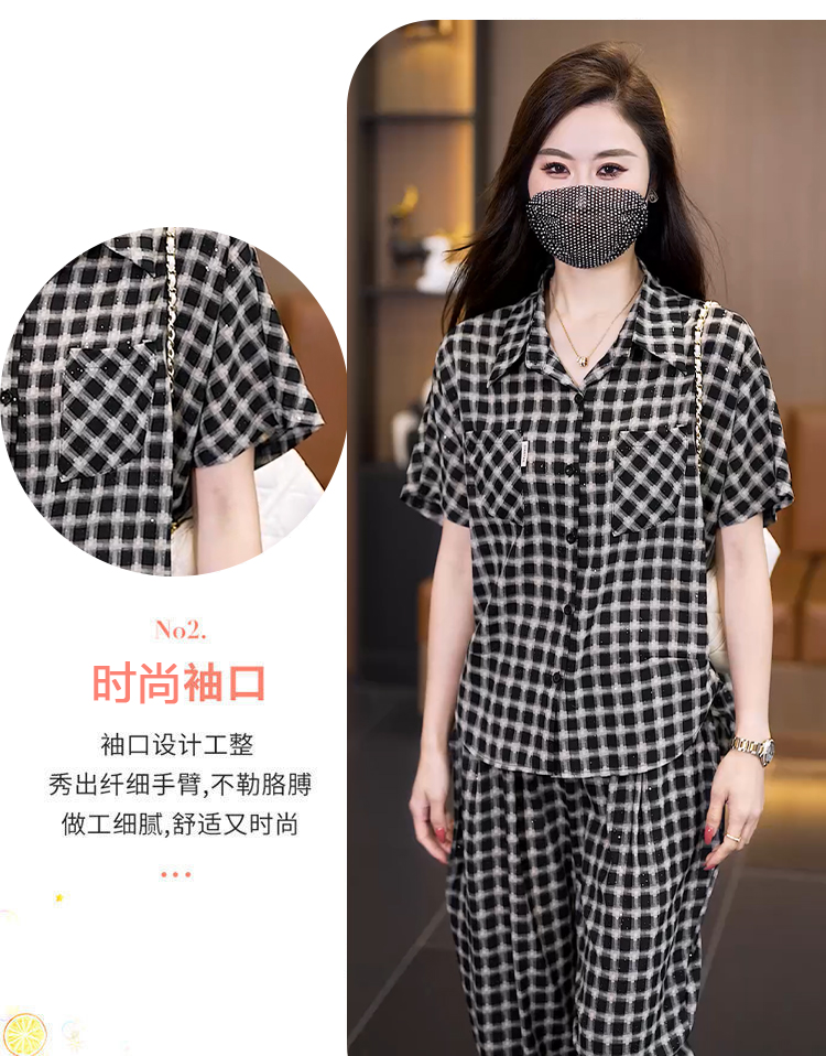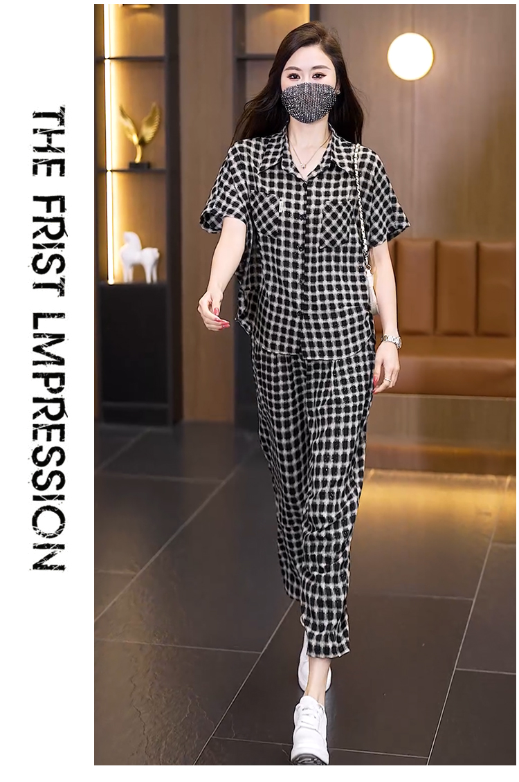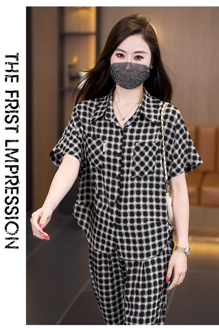 RY3041# 实拍2026年洋气大码女装套装胖MM格子时尚宽松显瘦哈伦裤两件套