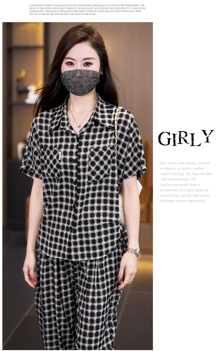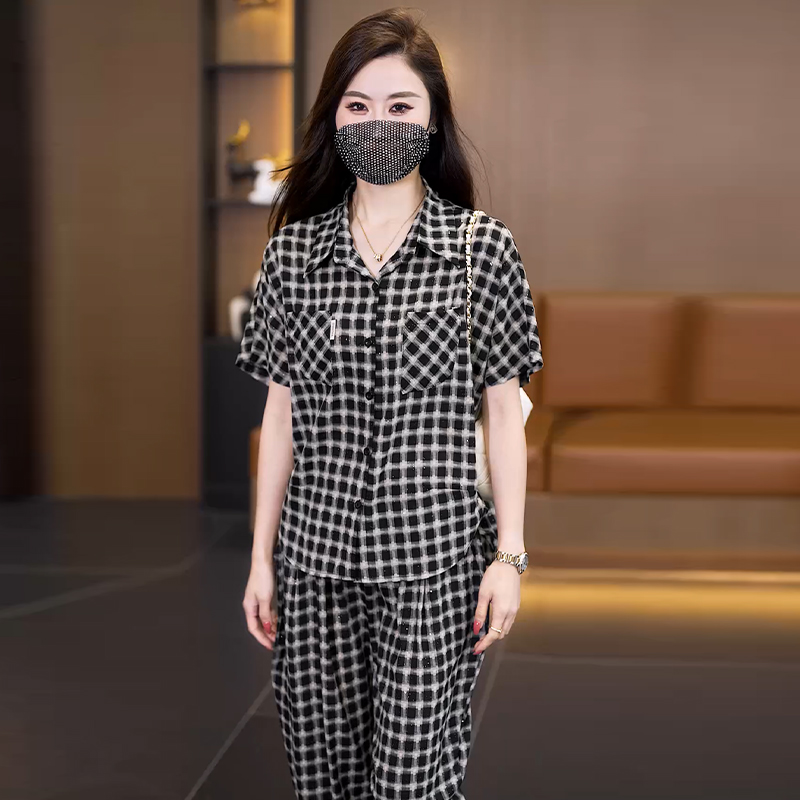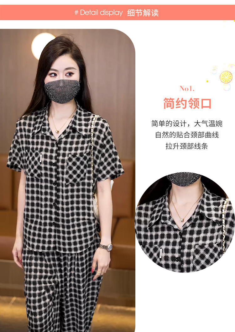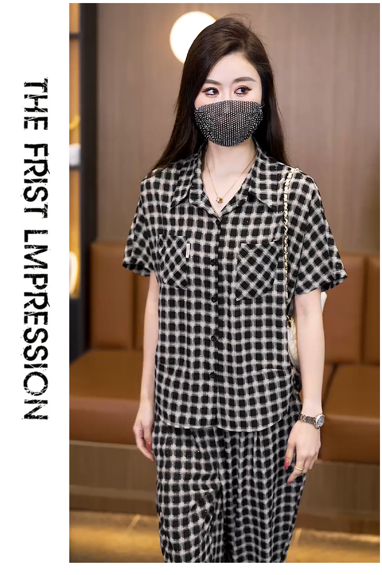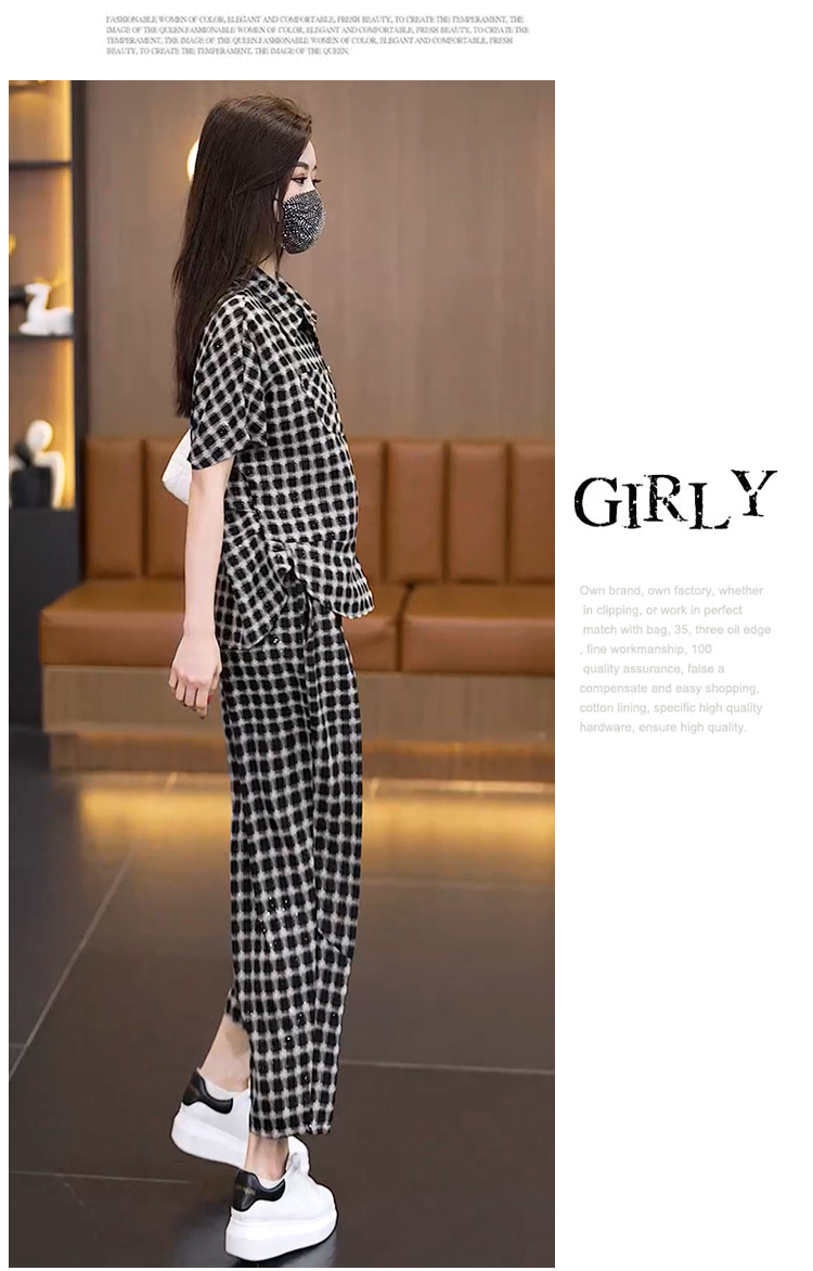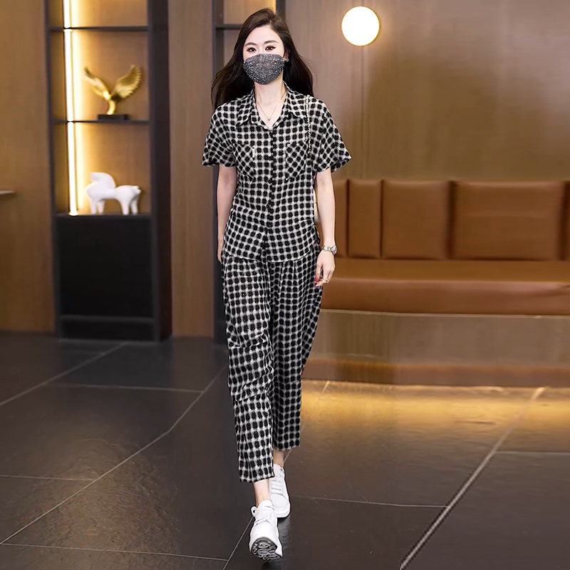 RY3041# 实拍2026年洋气大码女装套装胖MM格子时尚宽松显瘦哈伦裤两件套