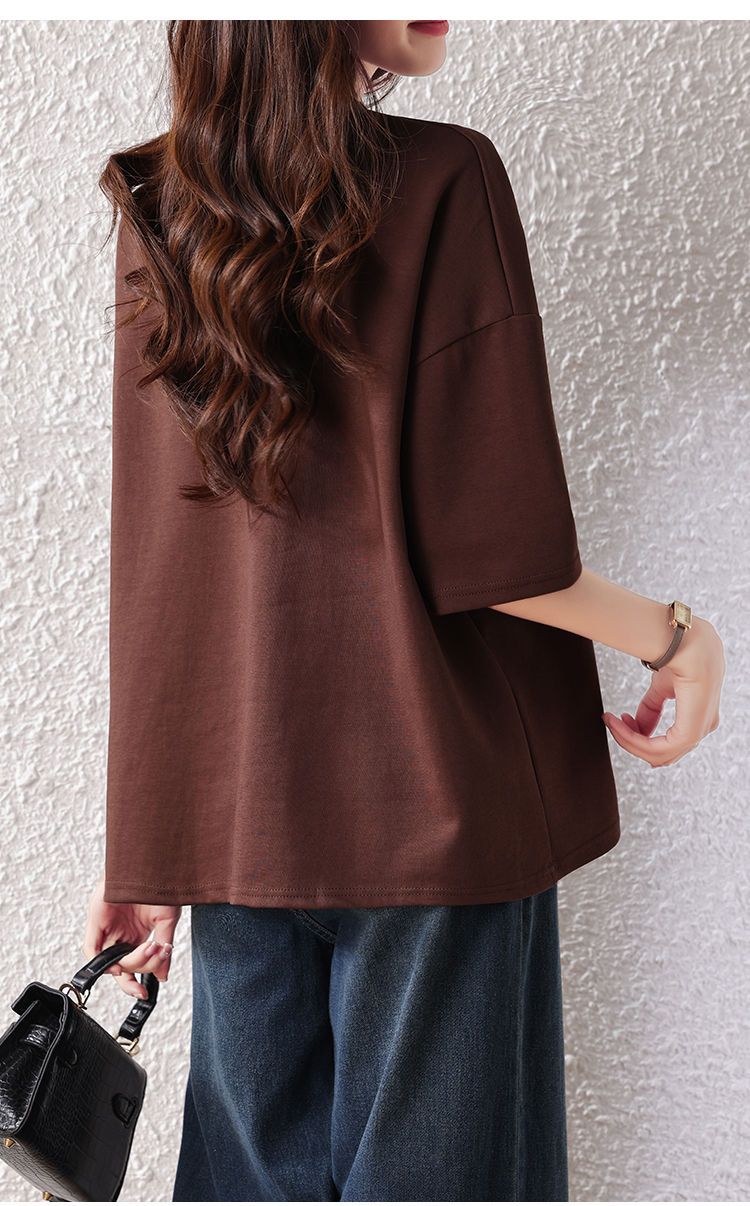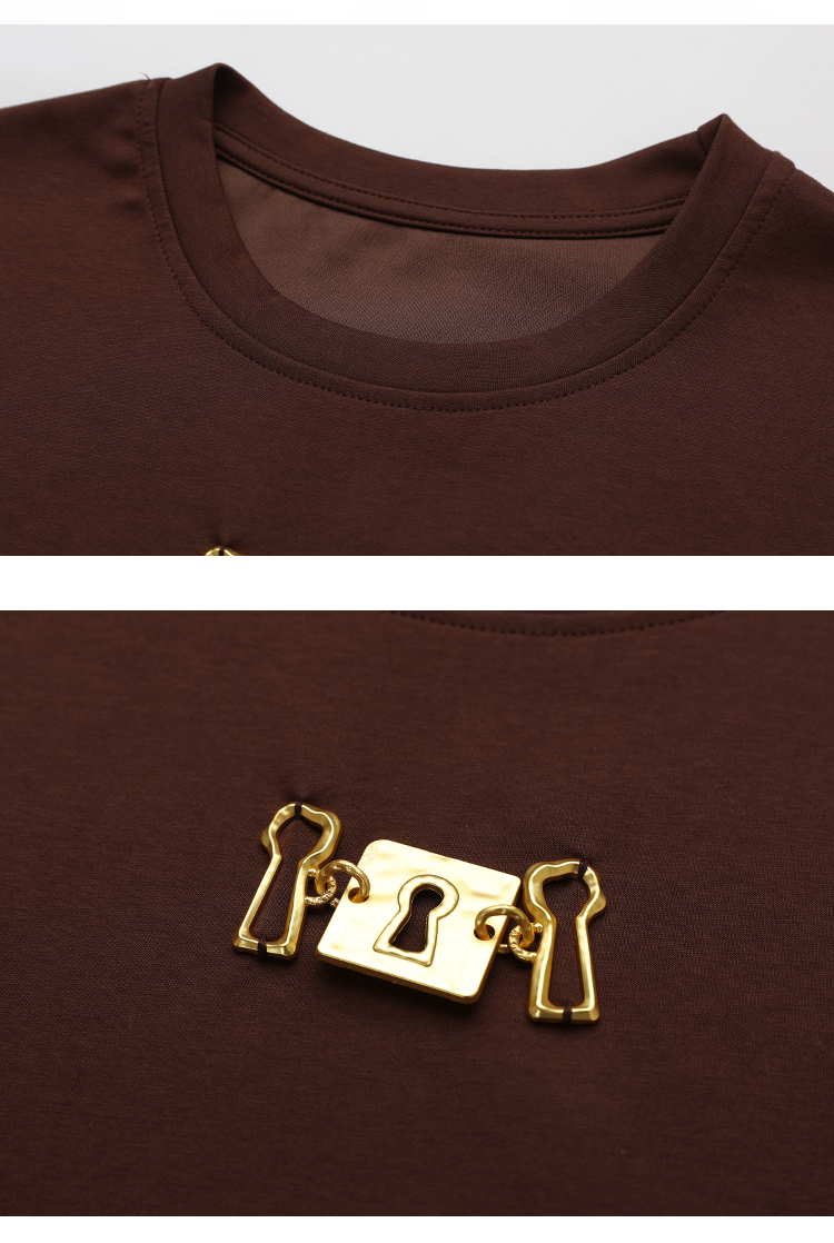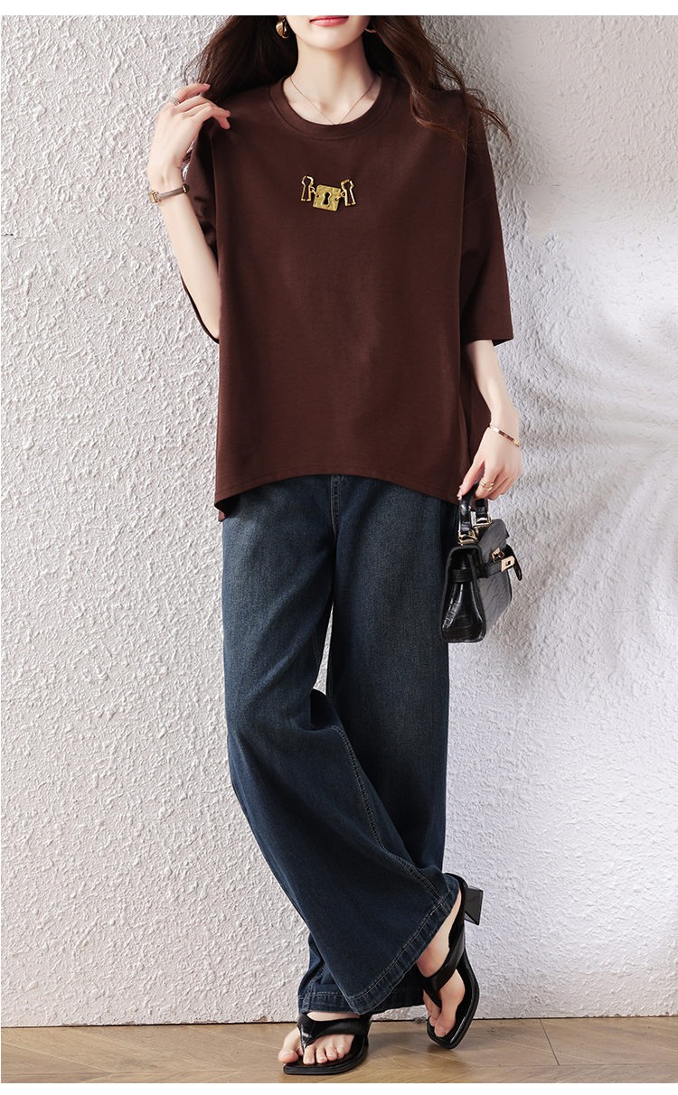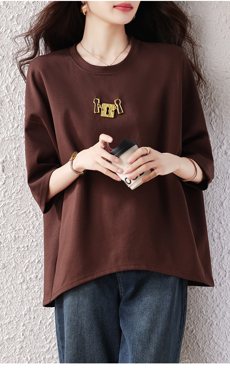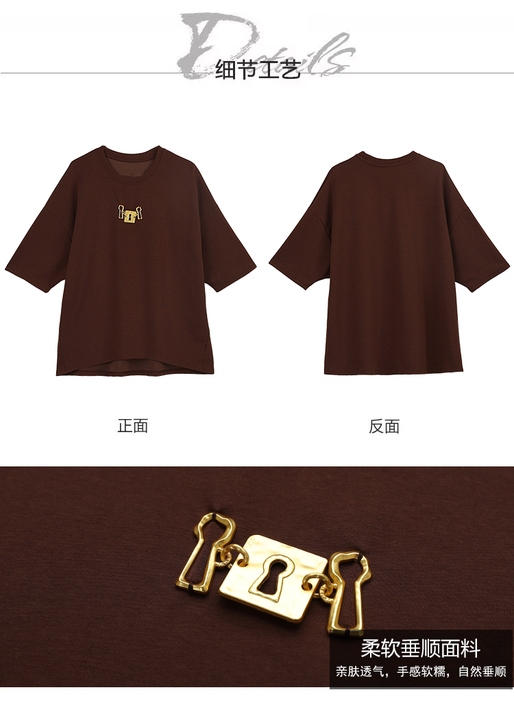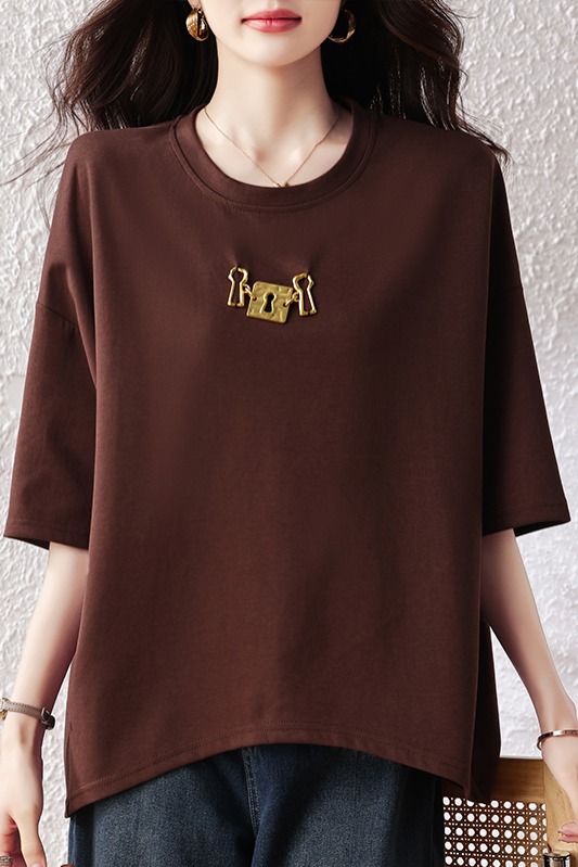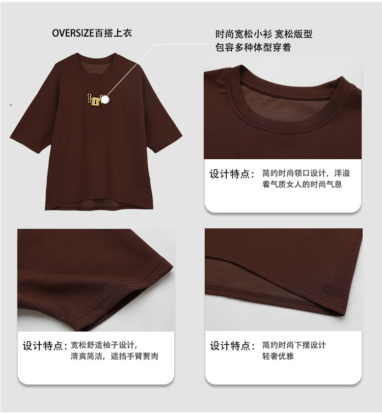 RY3042# 实拍2026夏新款大码女装胖mm简约时尚金属装饰宽松显瘦上衣T恤