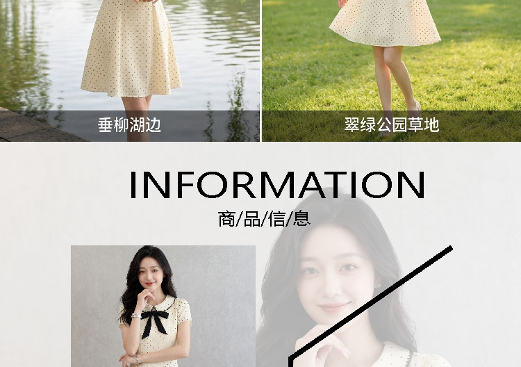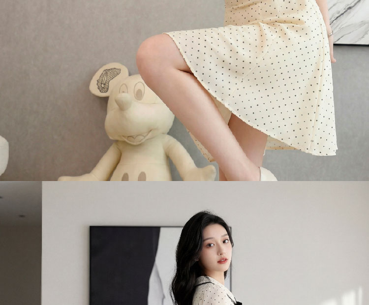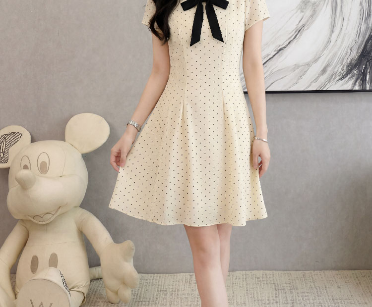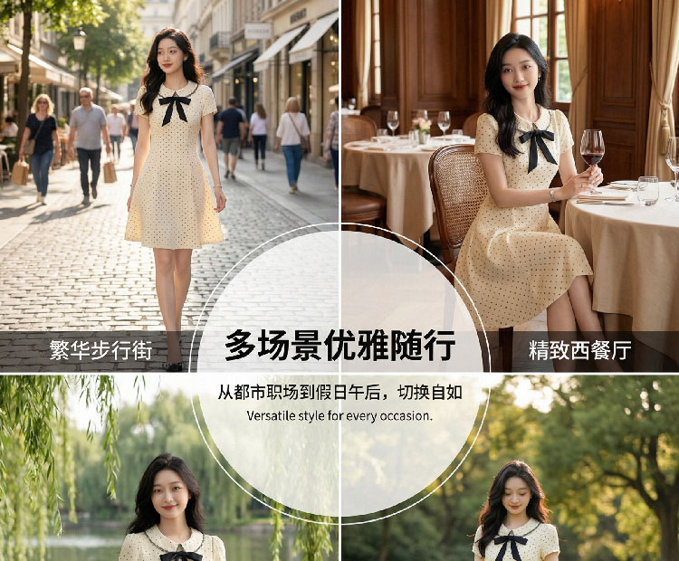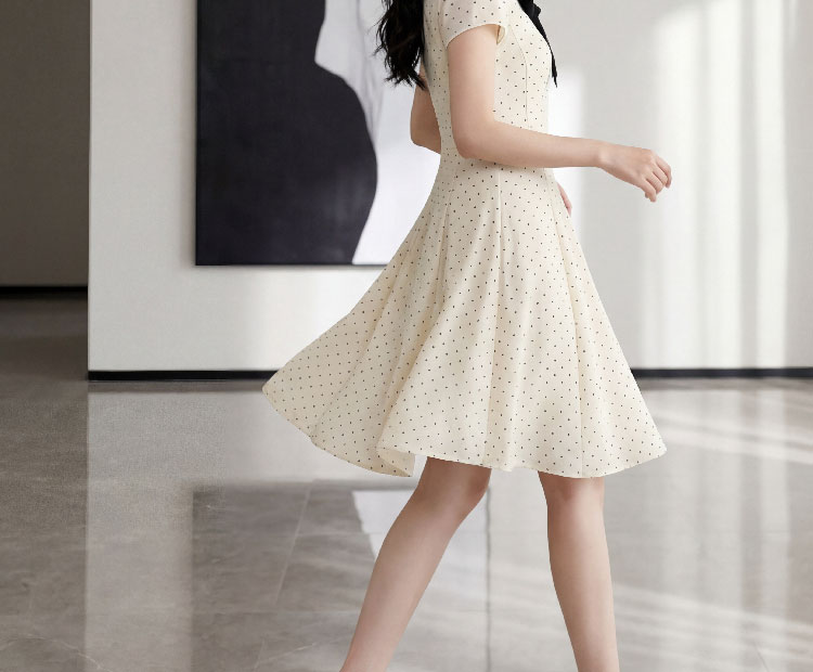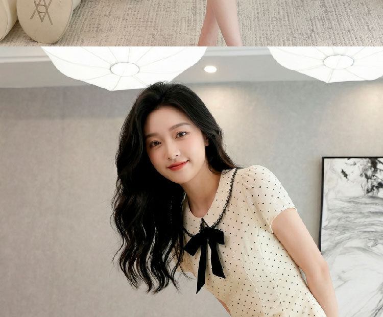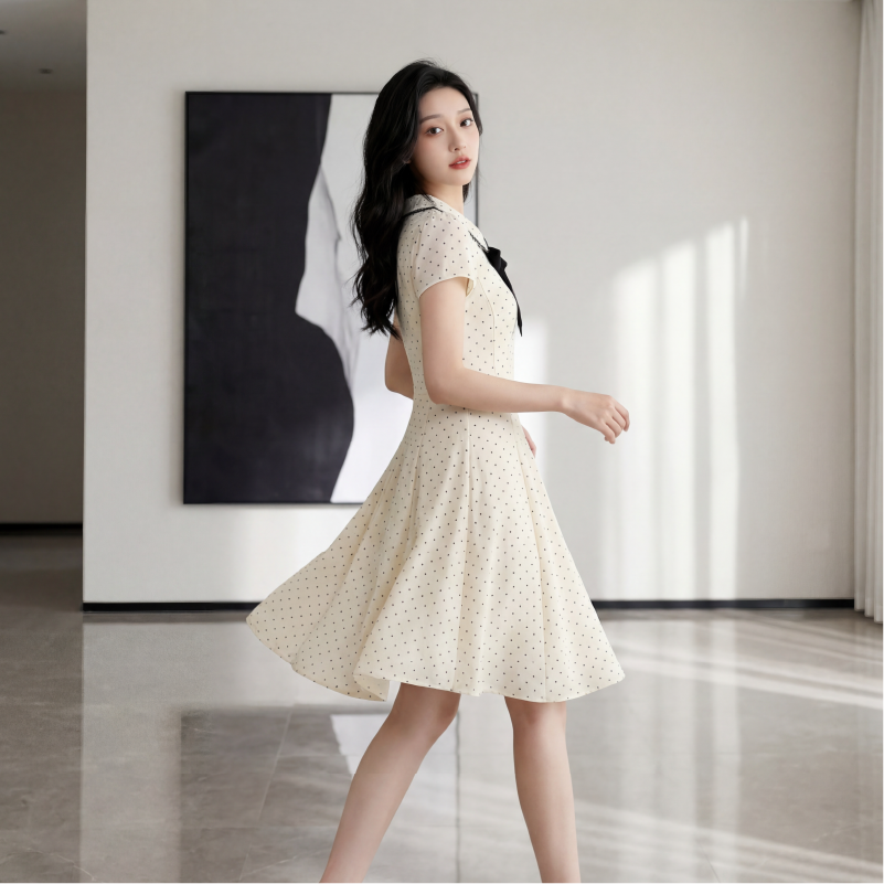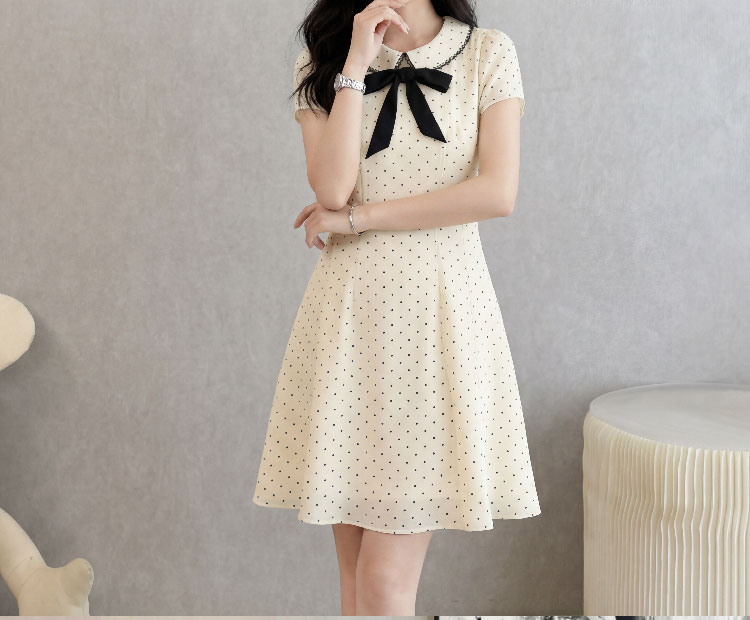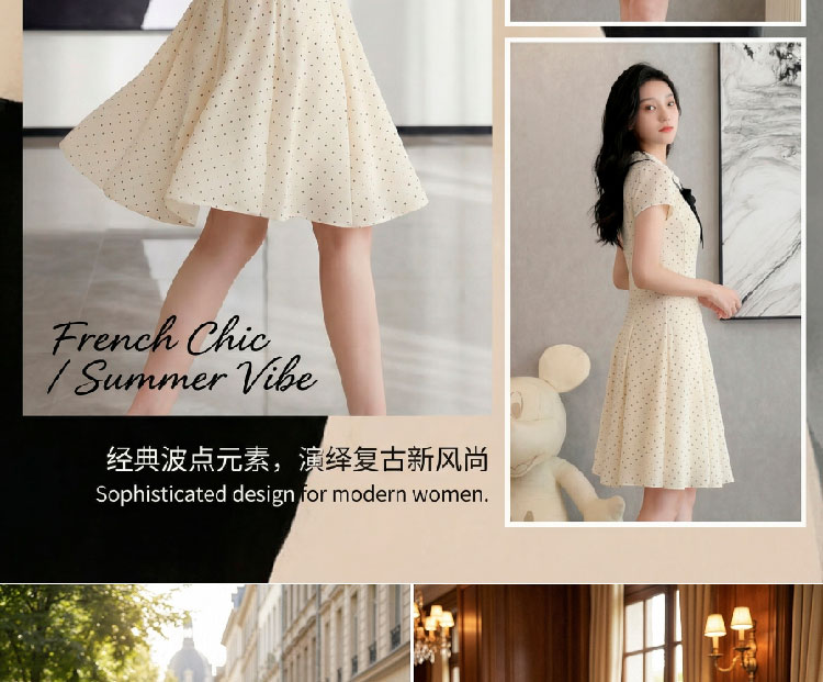 RY3046# 娃娃领甜美杏色波点连衣裙女夏季小香风法式掐腰miu系小洋裙a字裙