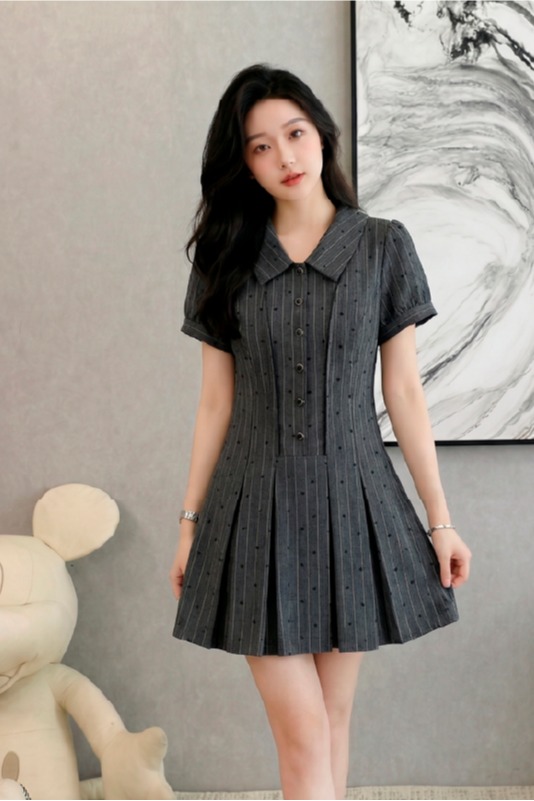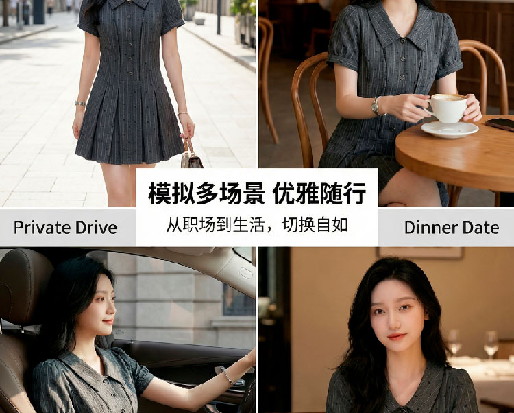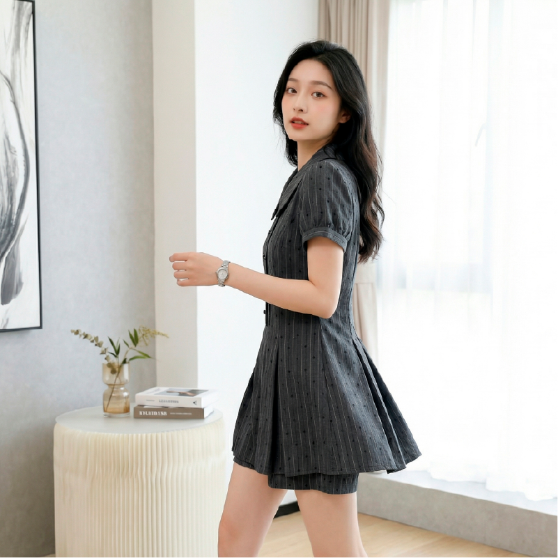 RY3047# 纯欲辣妹复古风通勤学院风女夏减龄配短裤小个子连衣裙