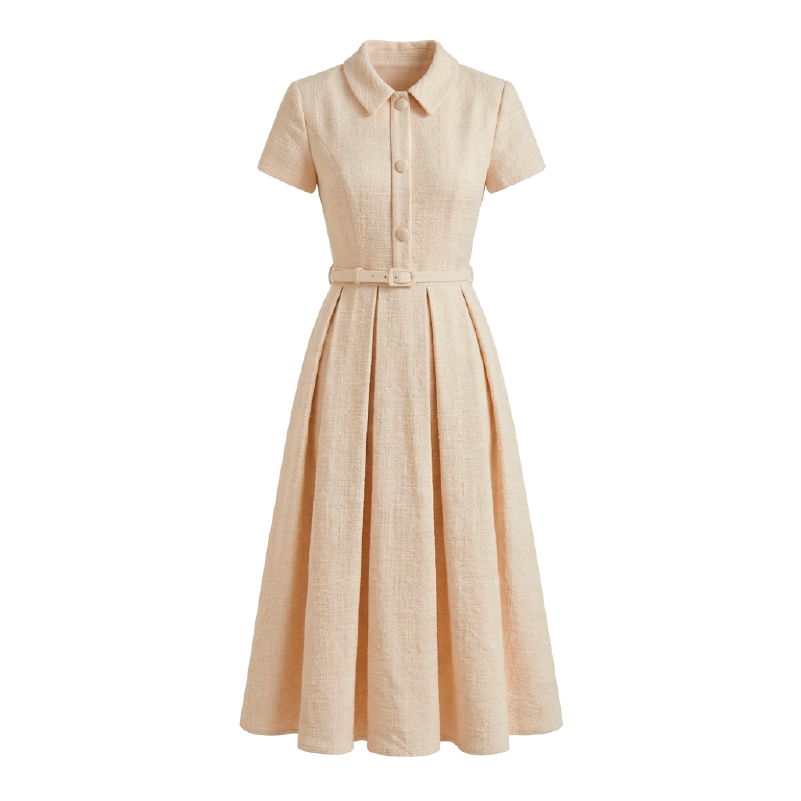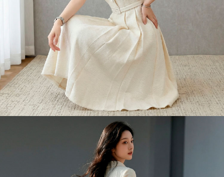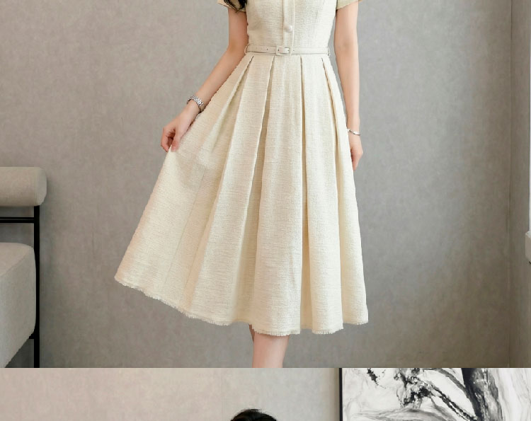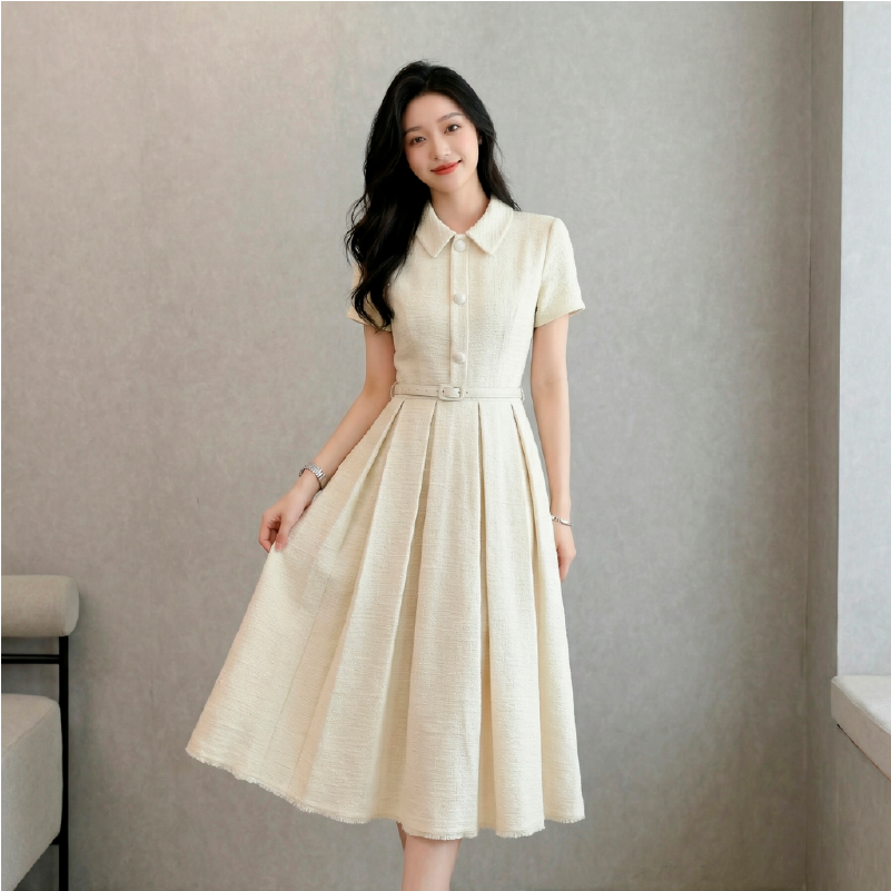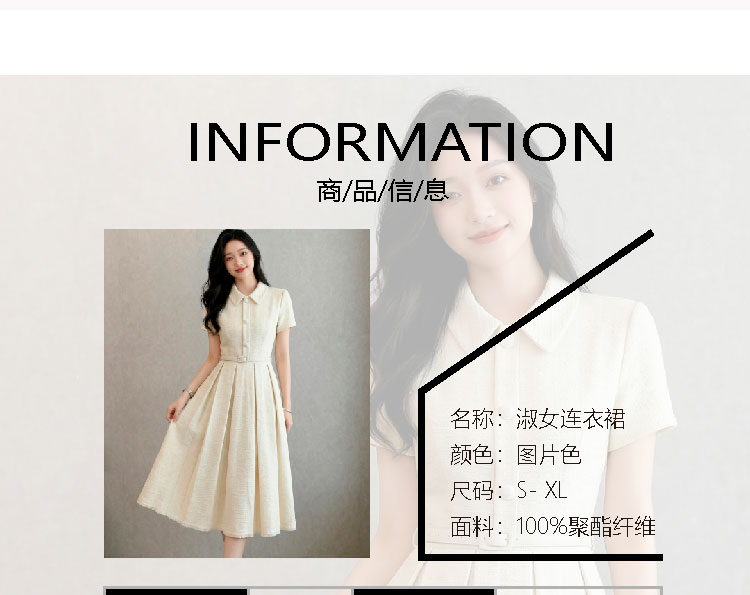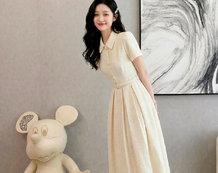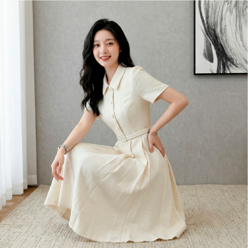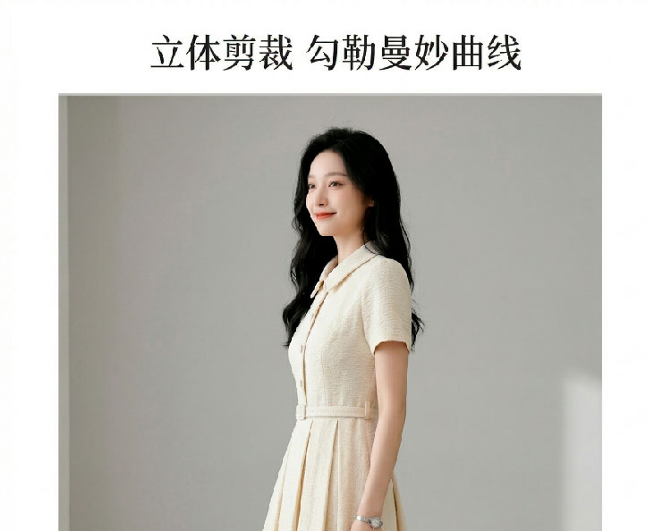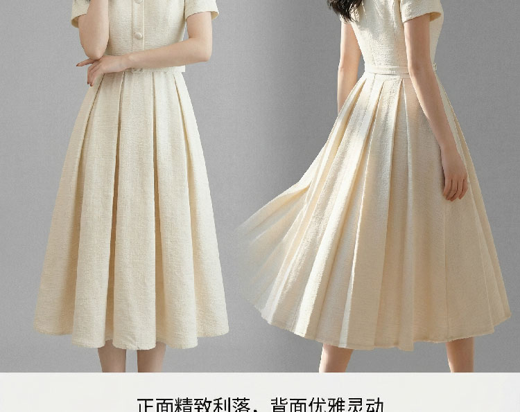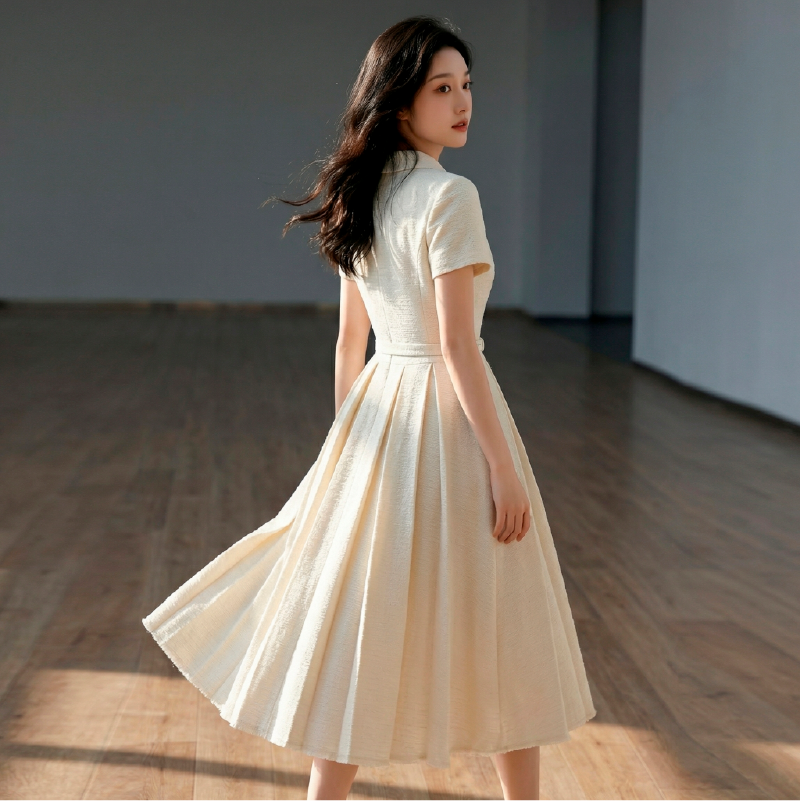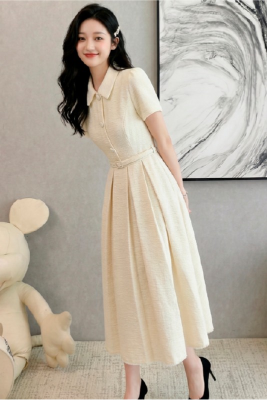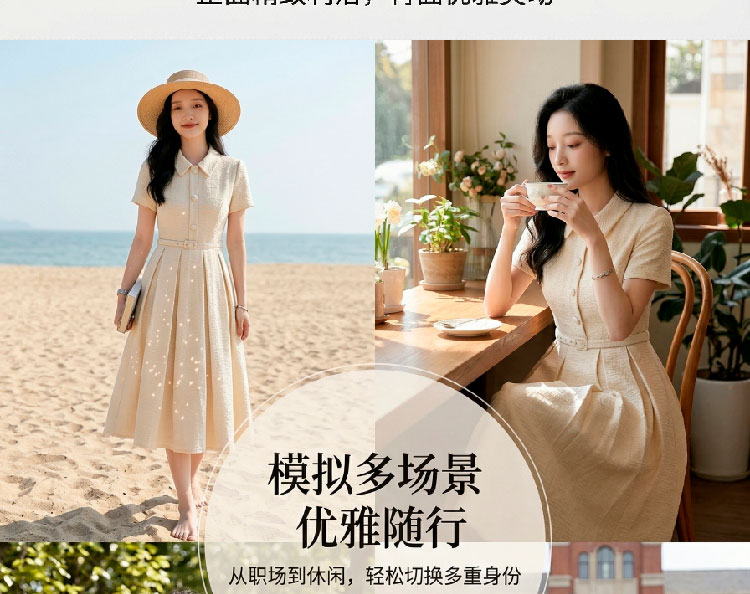 RY3048# 海边假日法式复古翻领收腰连衣裙女夏温柔风气质长裙