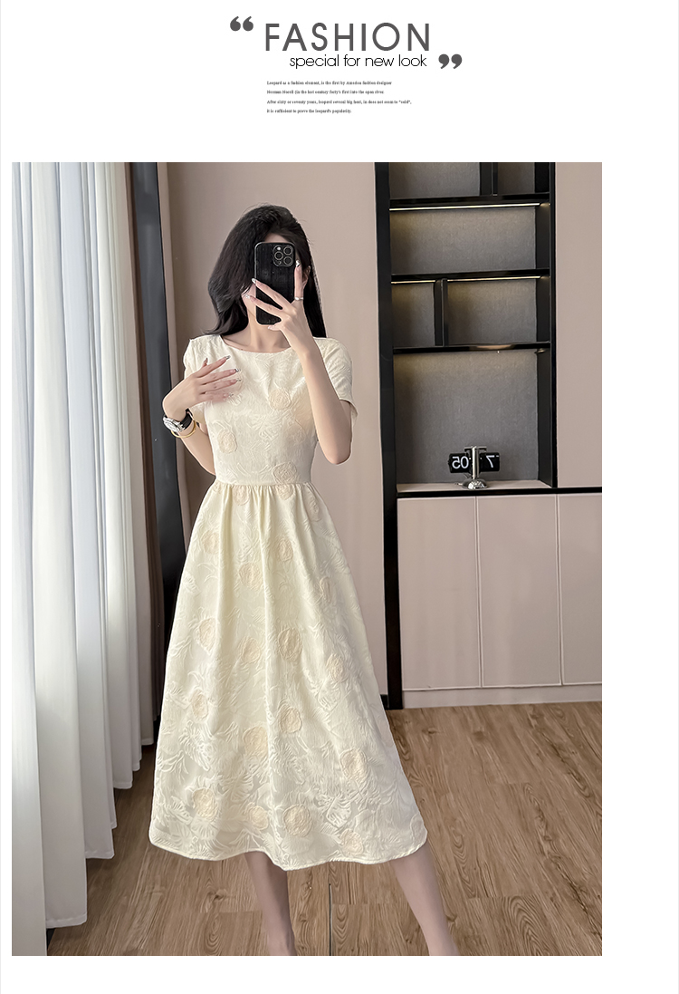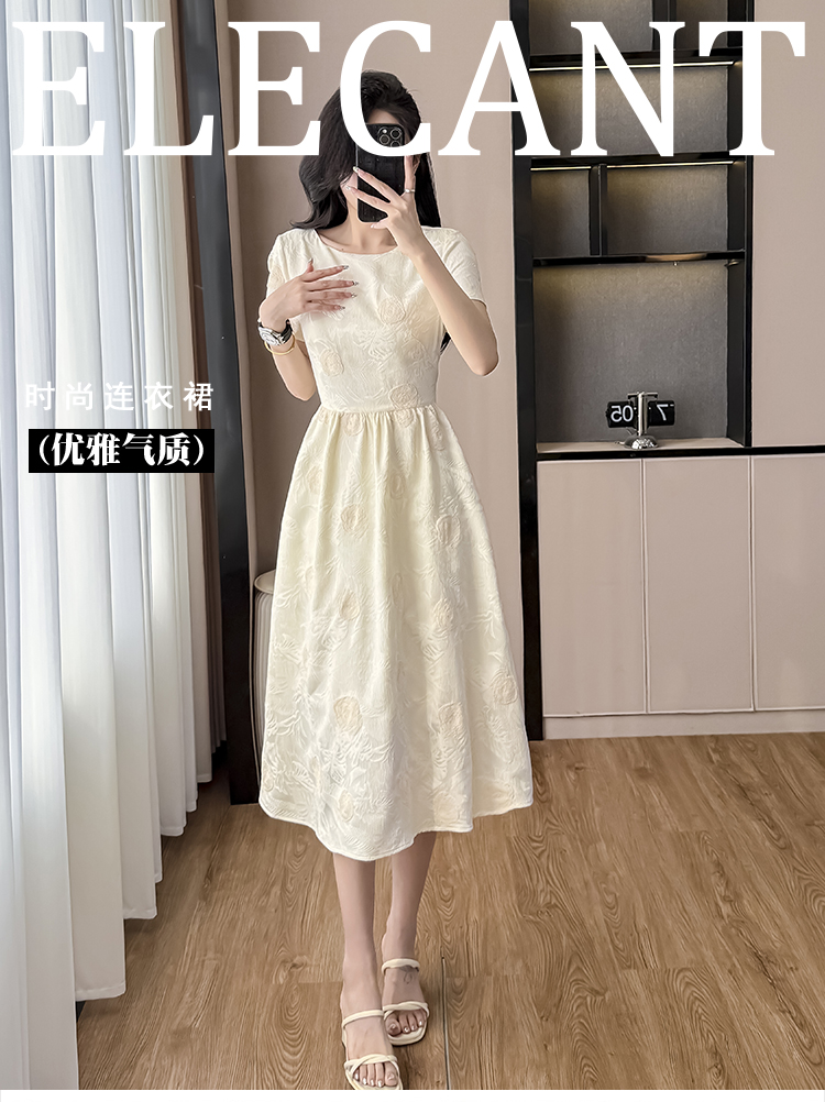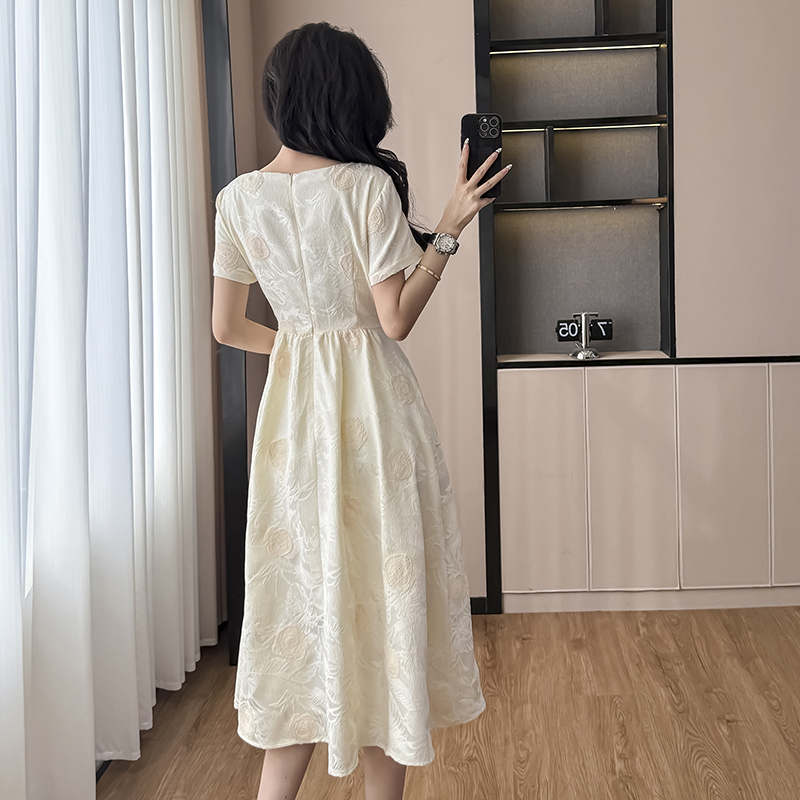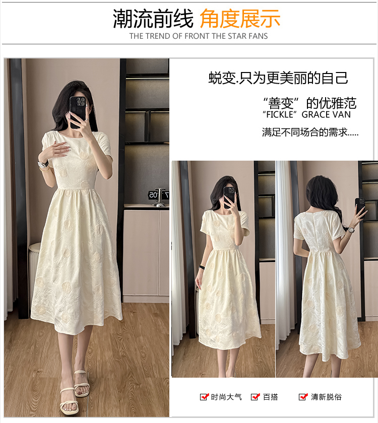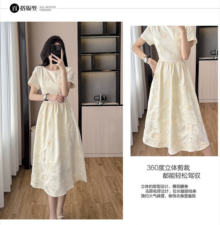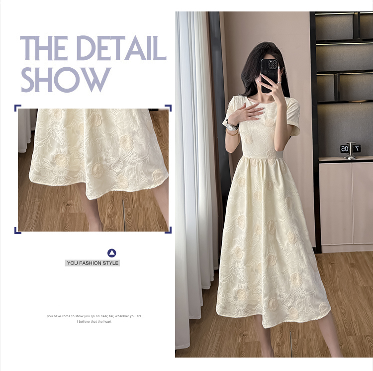 RY3052# 实拍新中式中国风连衣裙2025夏季新款重工提花温柔杏色裙子