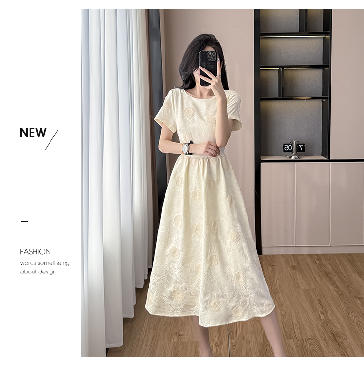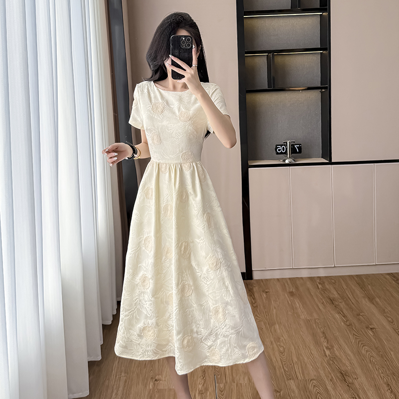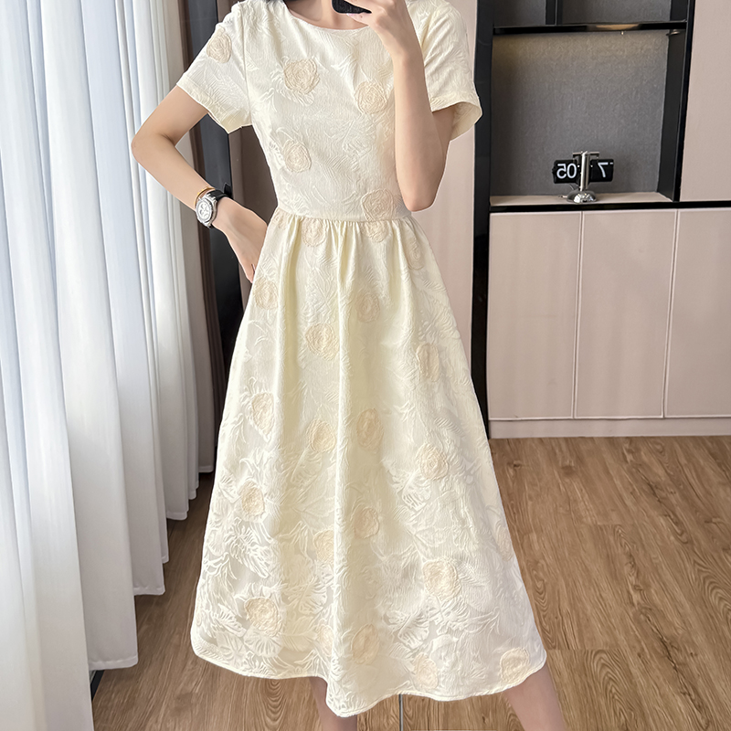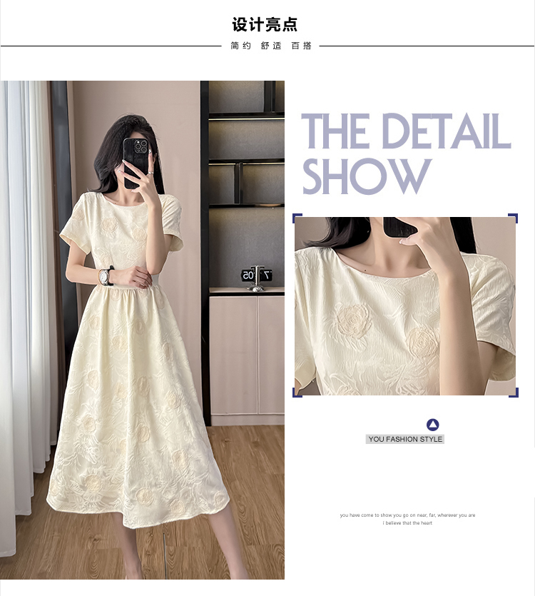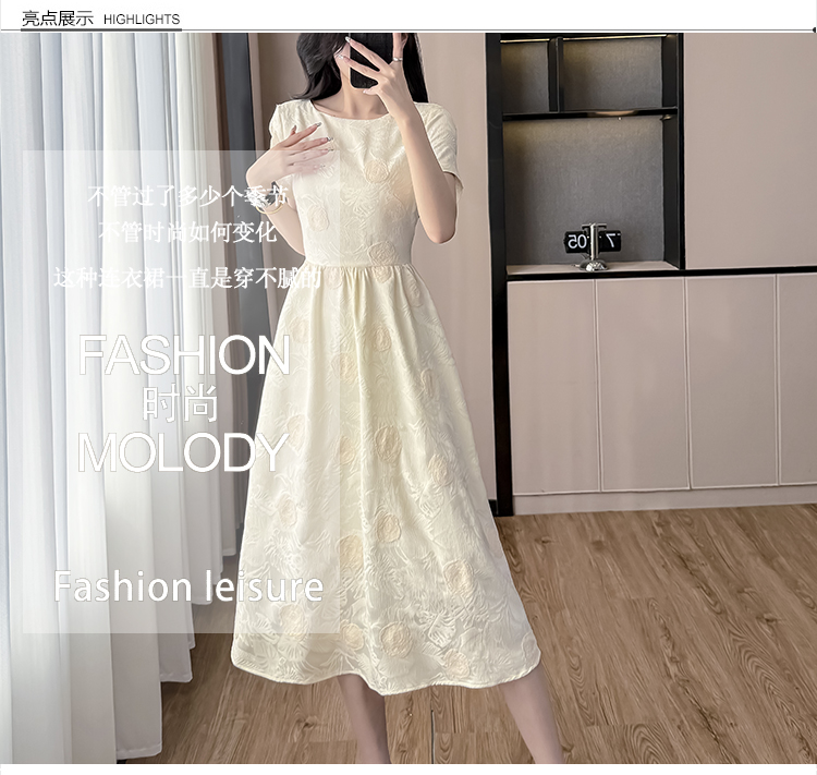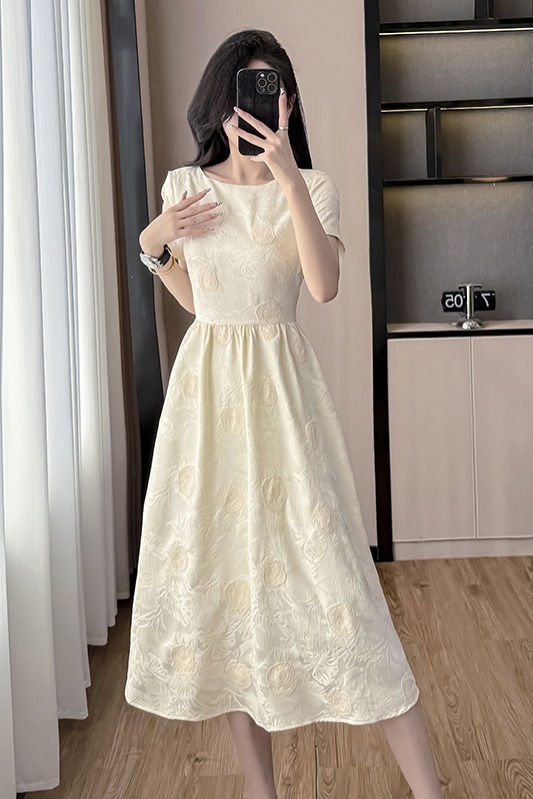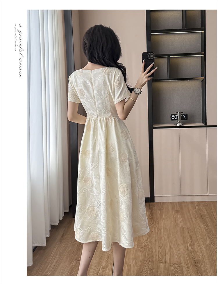 RY3052# 实拍新中式中国风连衣裙2025夏季新款重工提花温柔杏色裙子